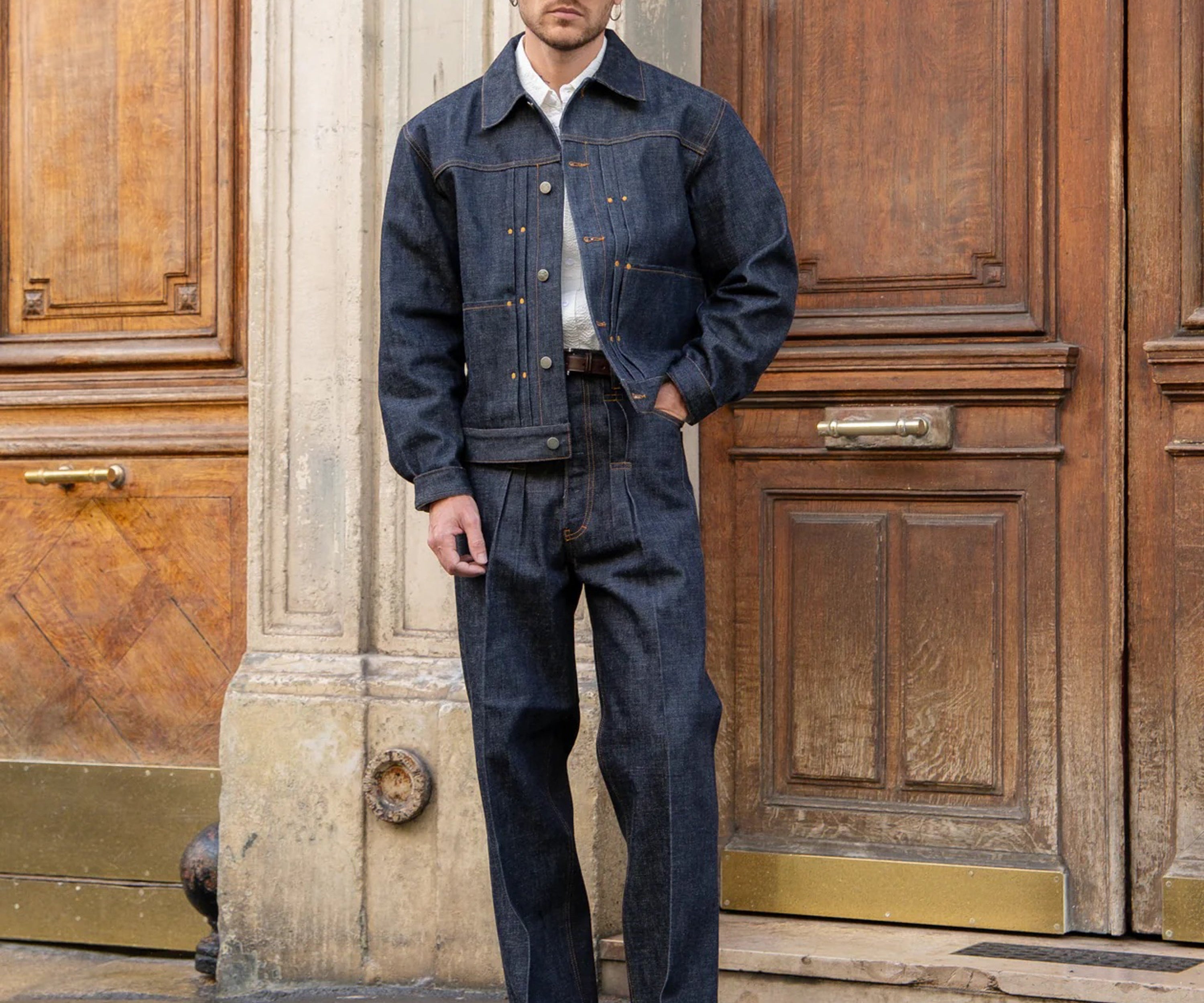 THE PLEATED SELVEDGE DENIM JACKET