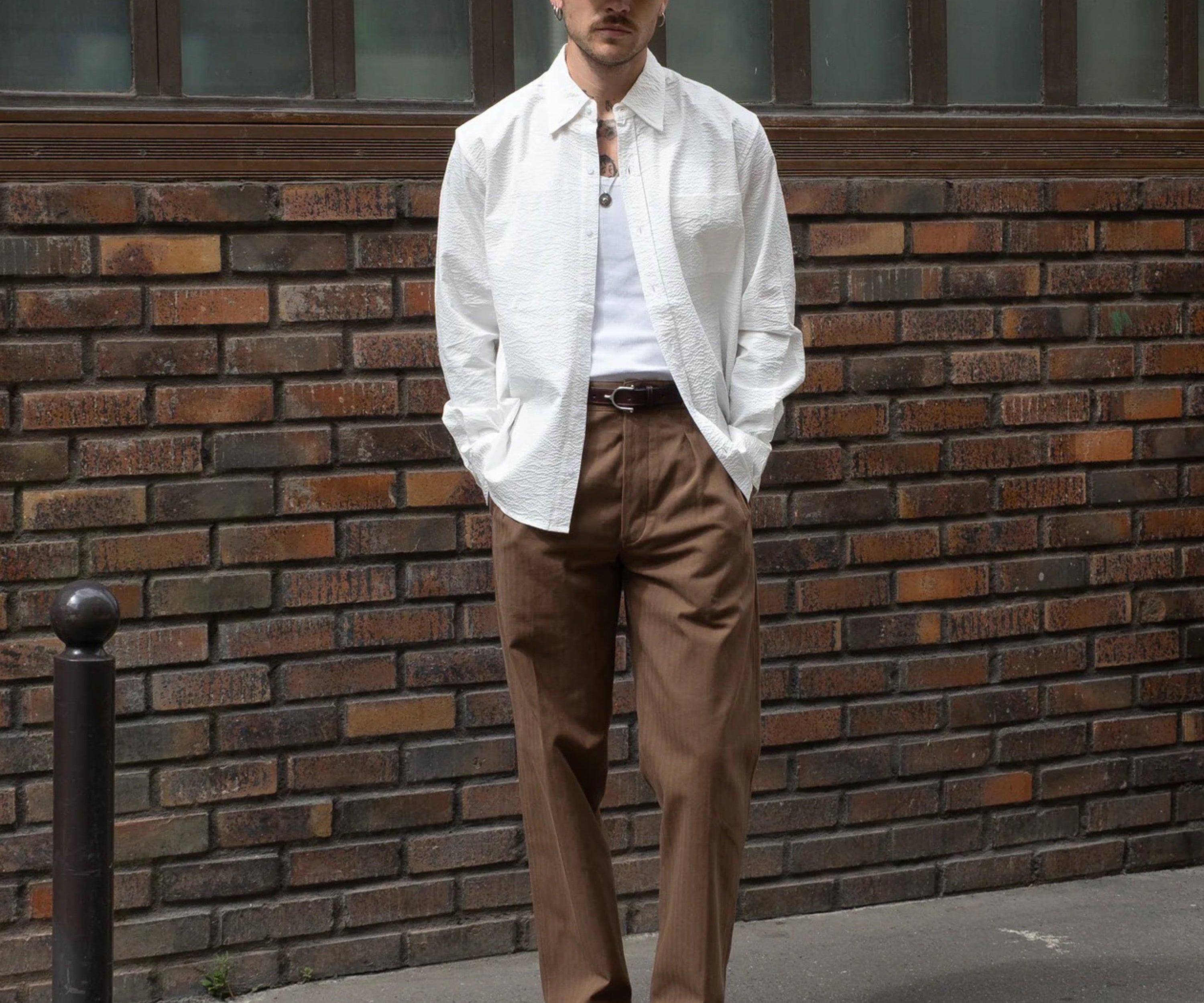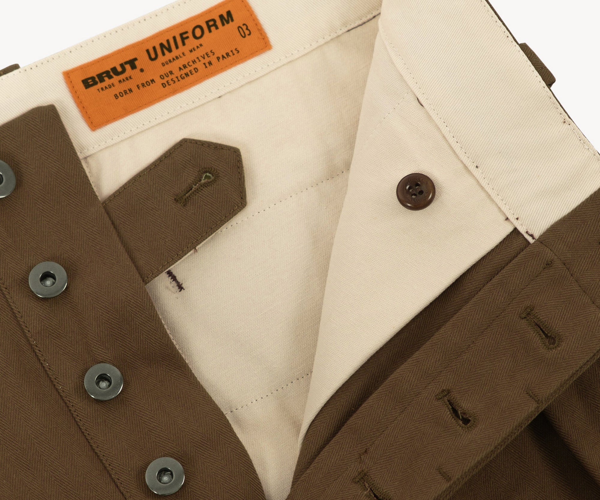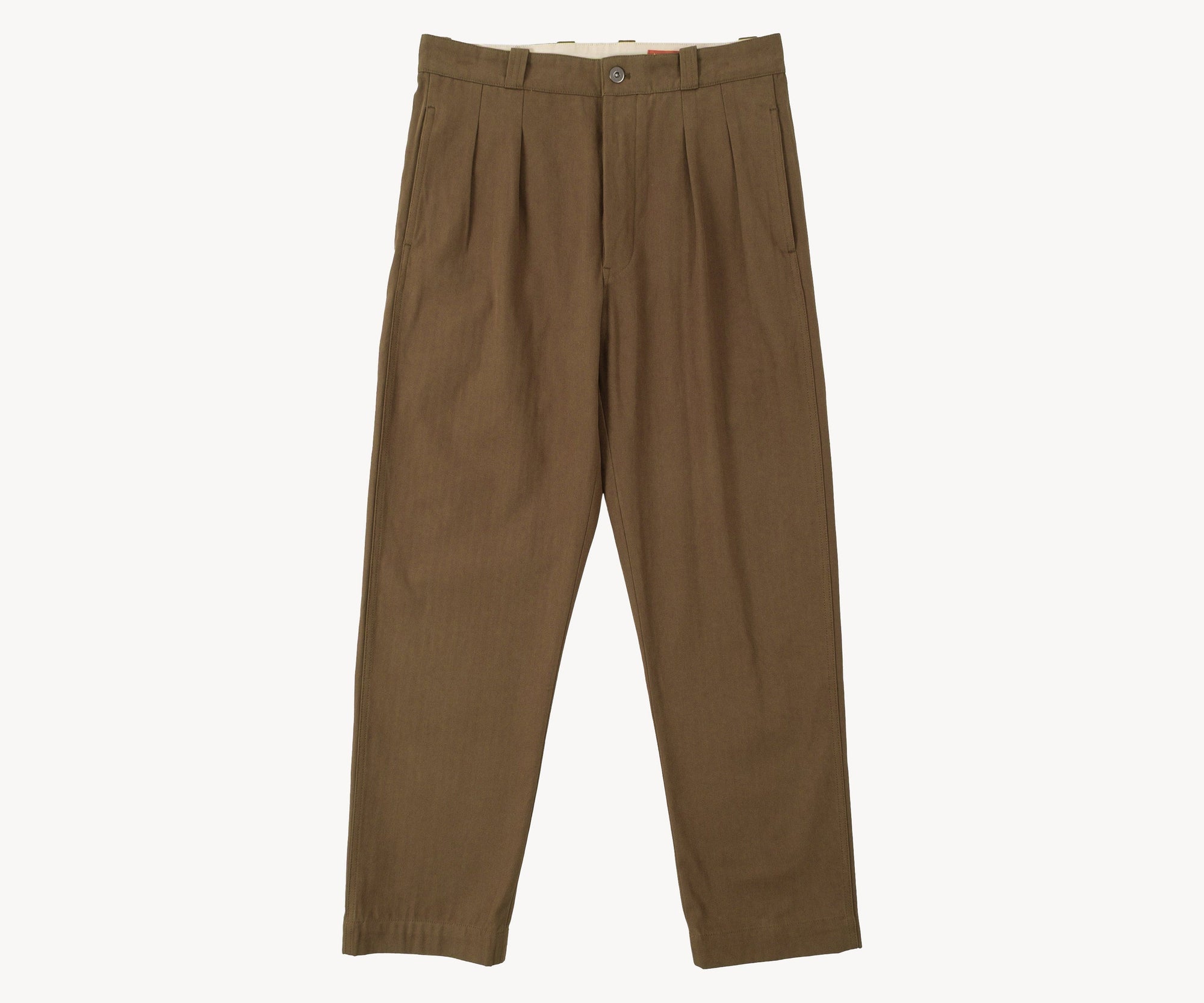 Inspired by vintage french army chino pants from our archives, the DOUBLE PLEAT PANTS is designed to be a staple in your wardrobe thanks to their heavyweight and durable fabric.
