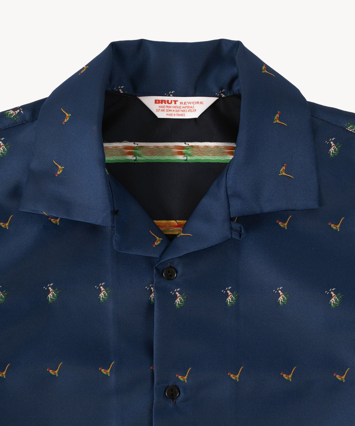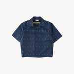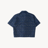 The TIE SHIRT is a mix of two rare shirts we have in our archive from the 1940's and 50's. The design consists of a short sleeves cropped shirt with a loop collar details. It is crafted from different deadstock fabrics which were intended for necktie manufacturing.