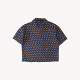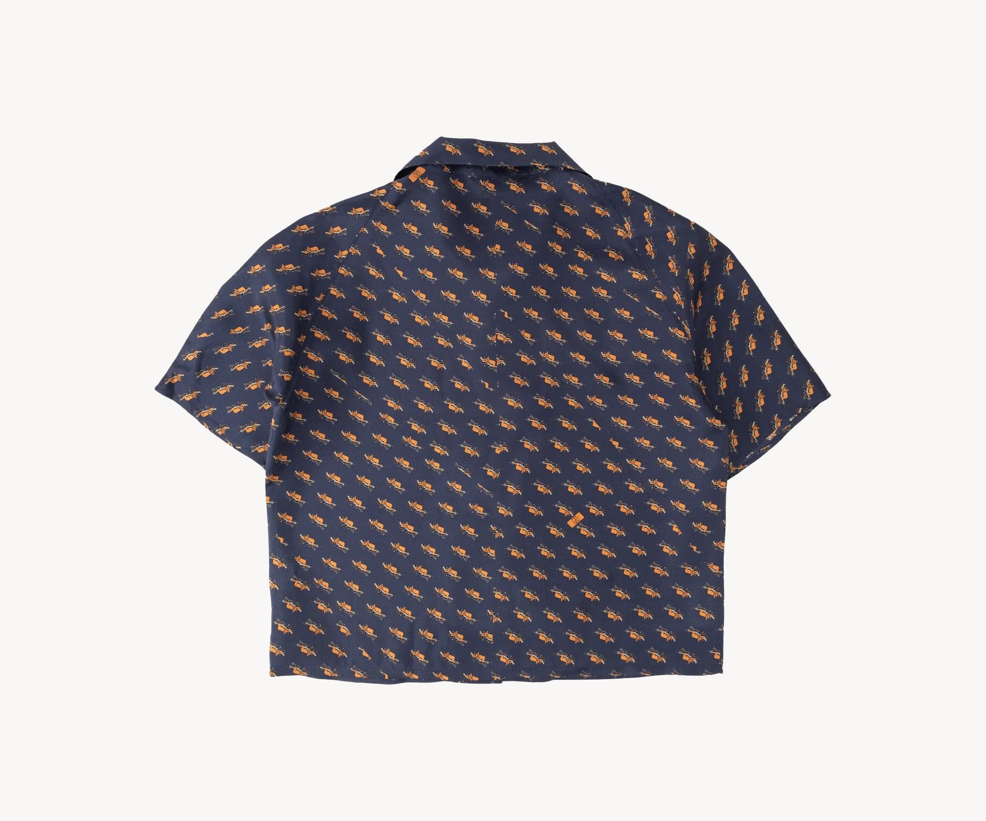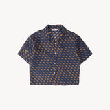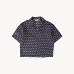 The TIE SHIRT is a mix of two rare shirts we have in our archive from the 1940's and 50's. The design consists of a short sleeves cropped shirt with a loop collar details. It is crafted from different deadstock fabrics which were intended for necktie manufacturing.