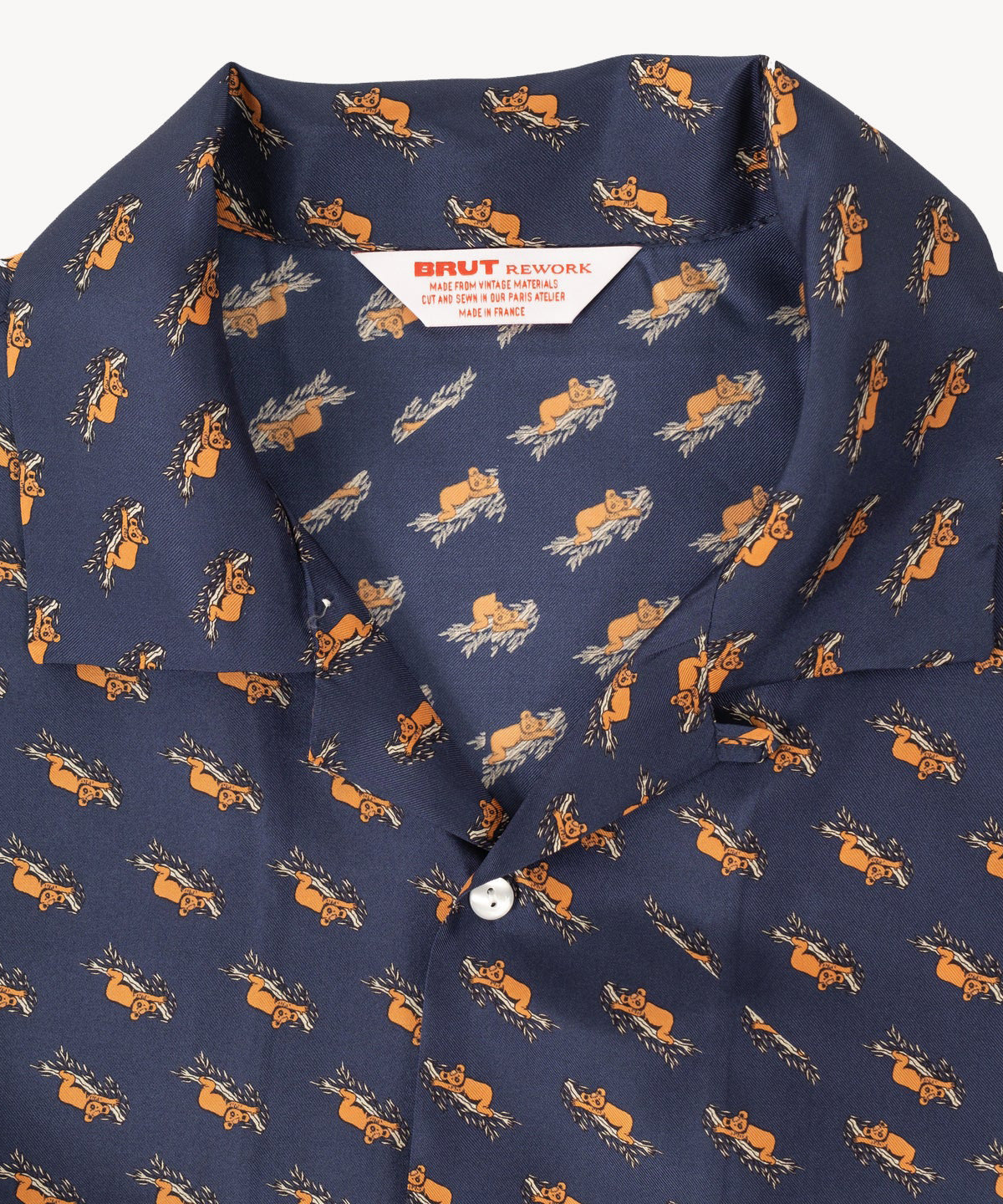 These shirts are made from vintage tie fabrics sourced from a well-known merchant who used to supply Parisian luxury hotels and neo-classical bistros back in the '70s. Each pattern has its own vibe—there are 35 in total.