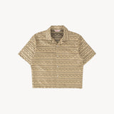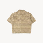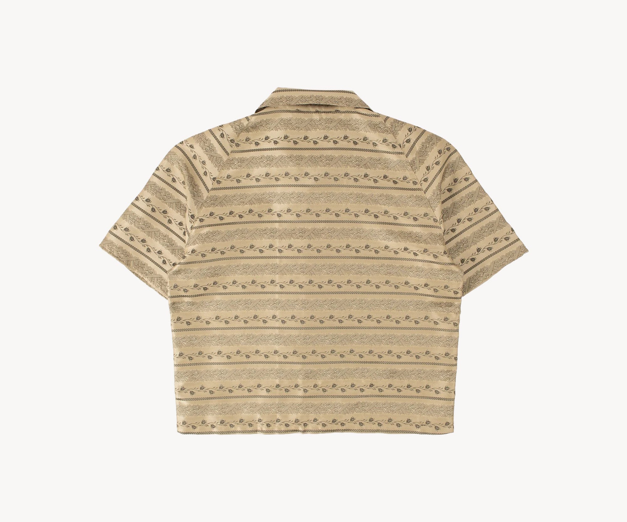 The TIE SHIRT is a mix of two rare shirts we have in our archive from the 1940's and 50's. The design consists of a short sleeves cropped shirt with a loop collar details. It is crafted from different deadstock fabrics which were intended for necktie manufacturing.