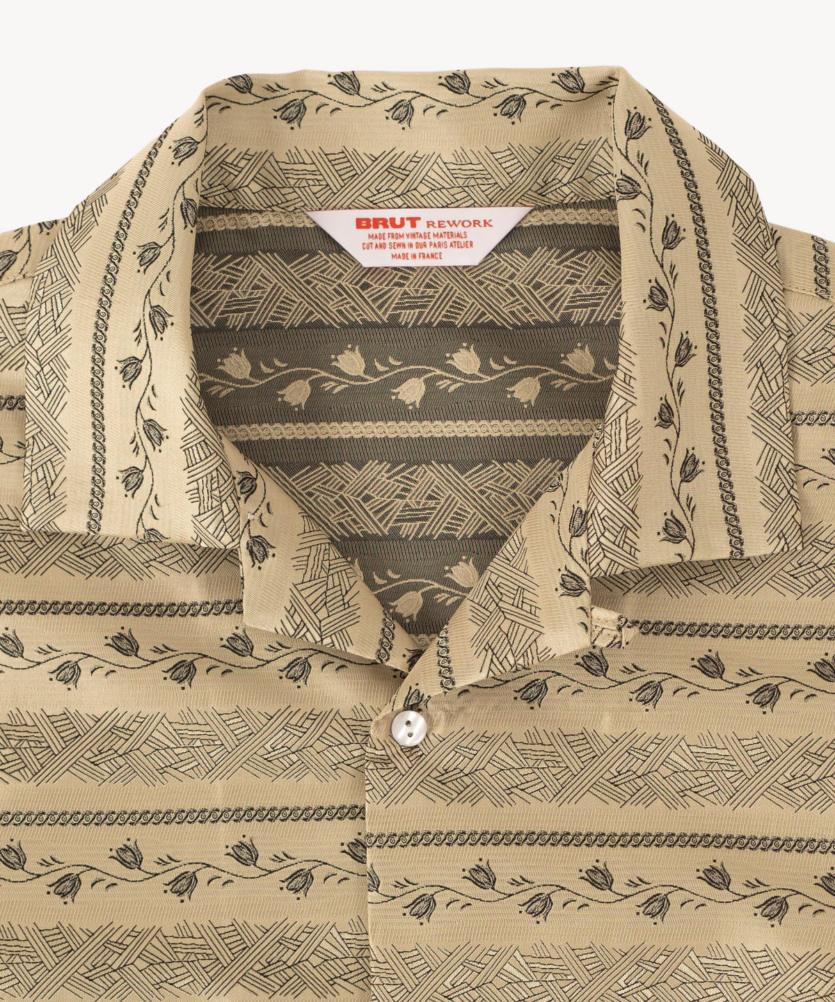 These shirts are made from vintage tie fabrics sourced from a well-known merchant who used to supply Parisian luxury hotels and neo-classical bistros back in the '70s. Each pattern has its own vibe—there are 35 in total.