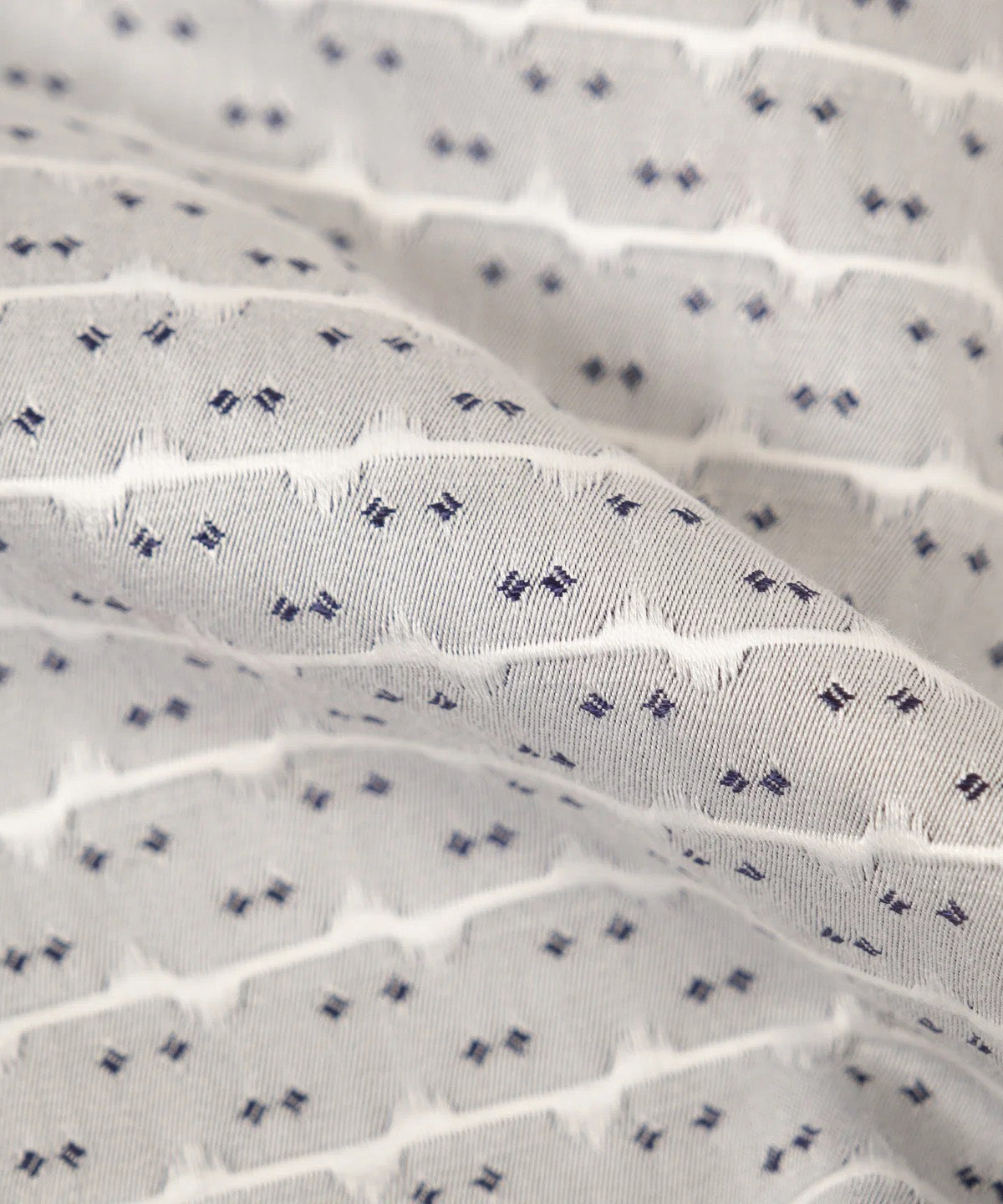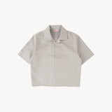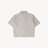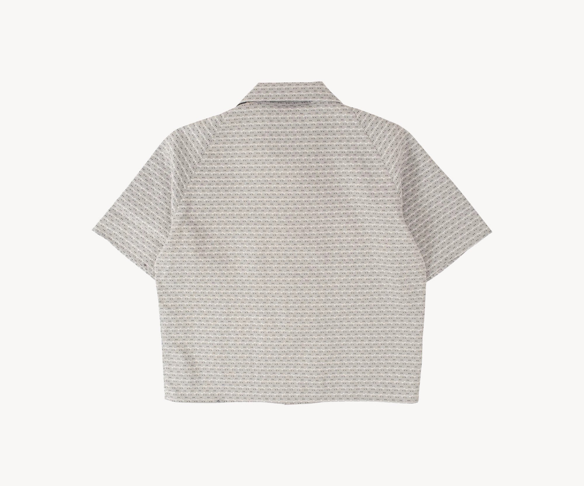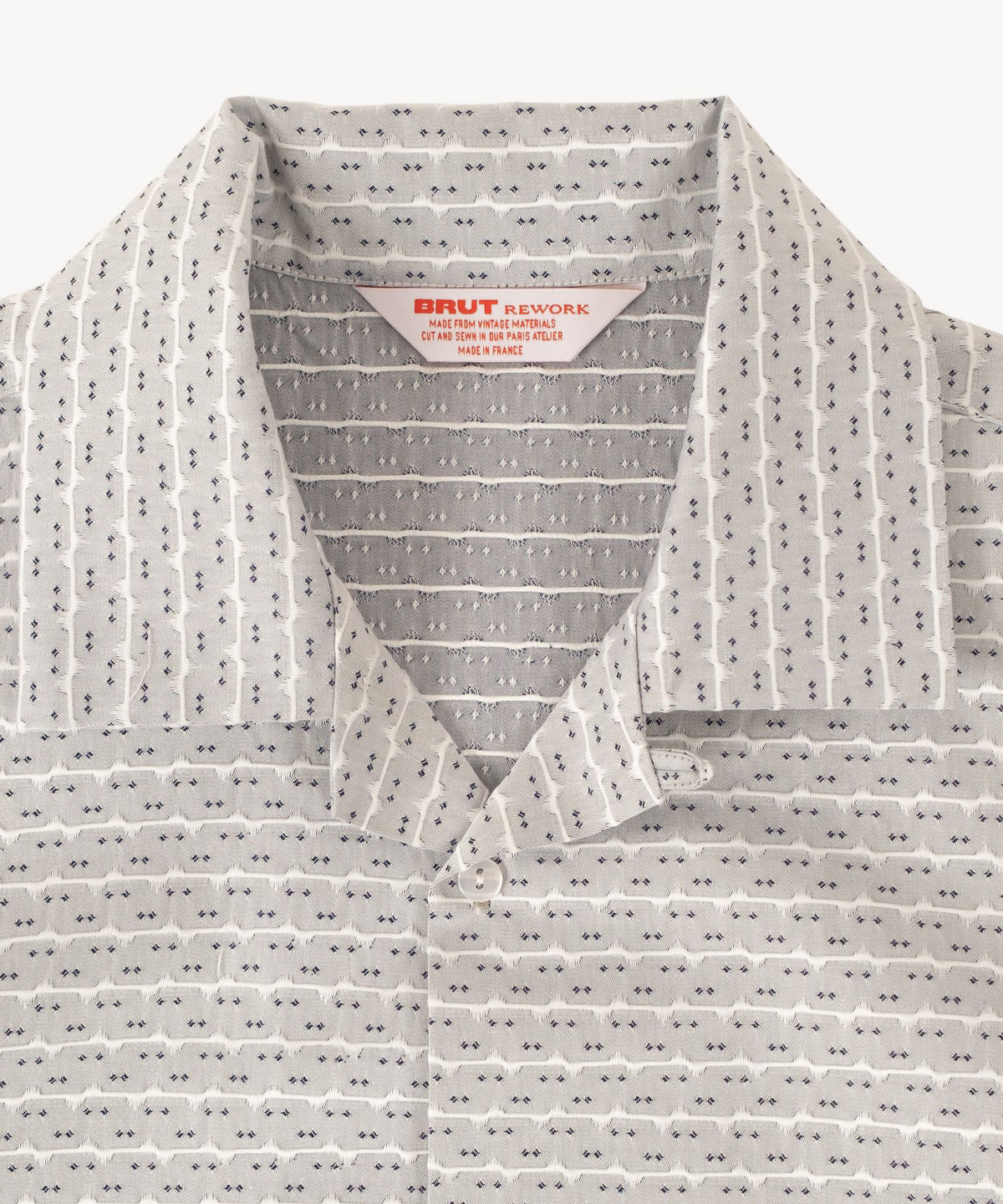 The TIE SHIRT is a mix of two rare shirts we have in our archive from the 1940's and 50's. The design consists of a short sleeves cropped shirt with a loop collar details. It is crafted from different deadstock fabrics which were intended for necktie manufacturing.