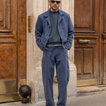 The TOOL JACKET is a modern reinterpretation of the 1950s work jacket, it is made out of an heavy cotton canvas, quality hardware and triple-stitch construction in order to endure time. It features the iconic hammer pocket as a nod to vintage carpenters and double knee pants.