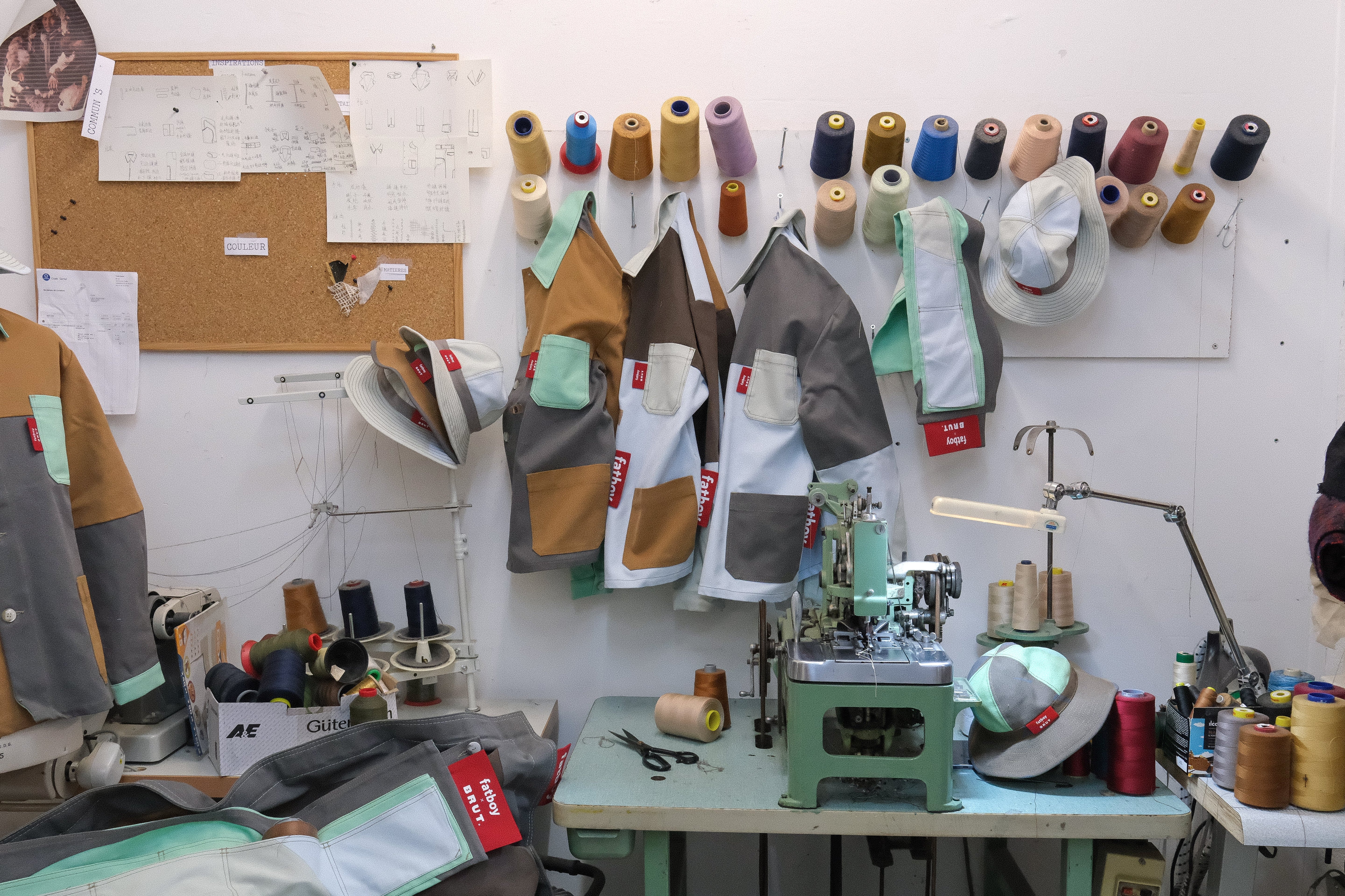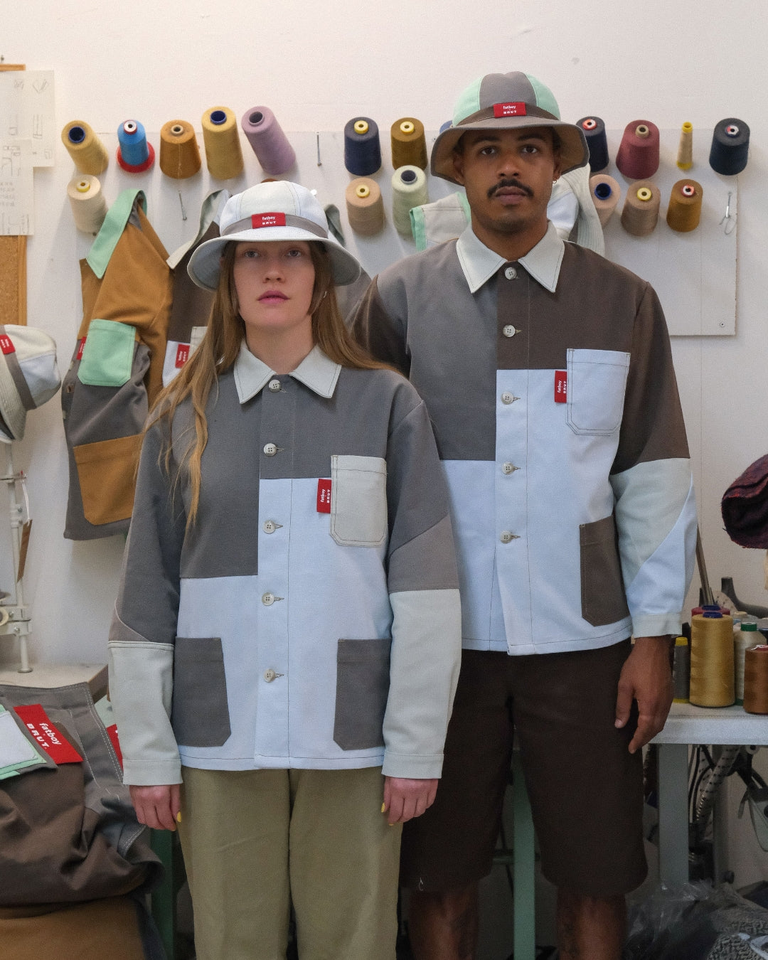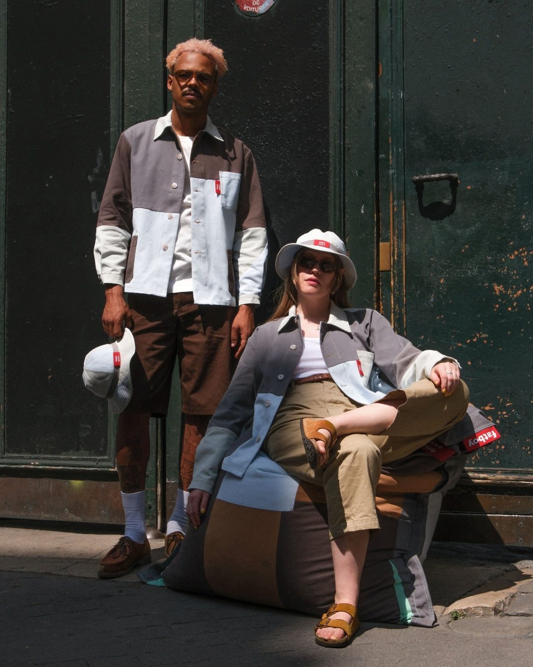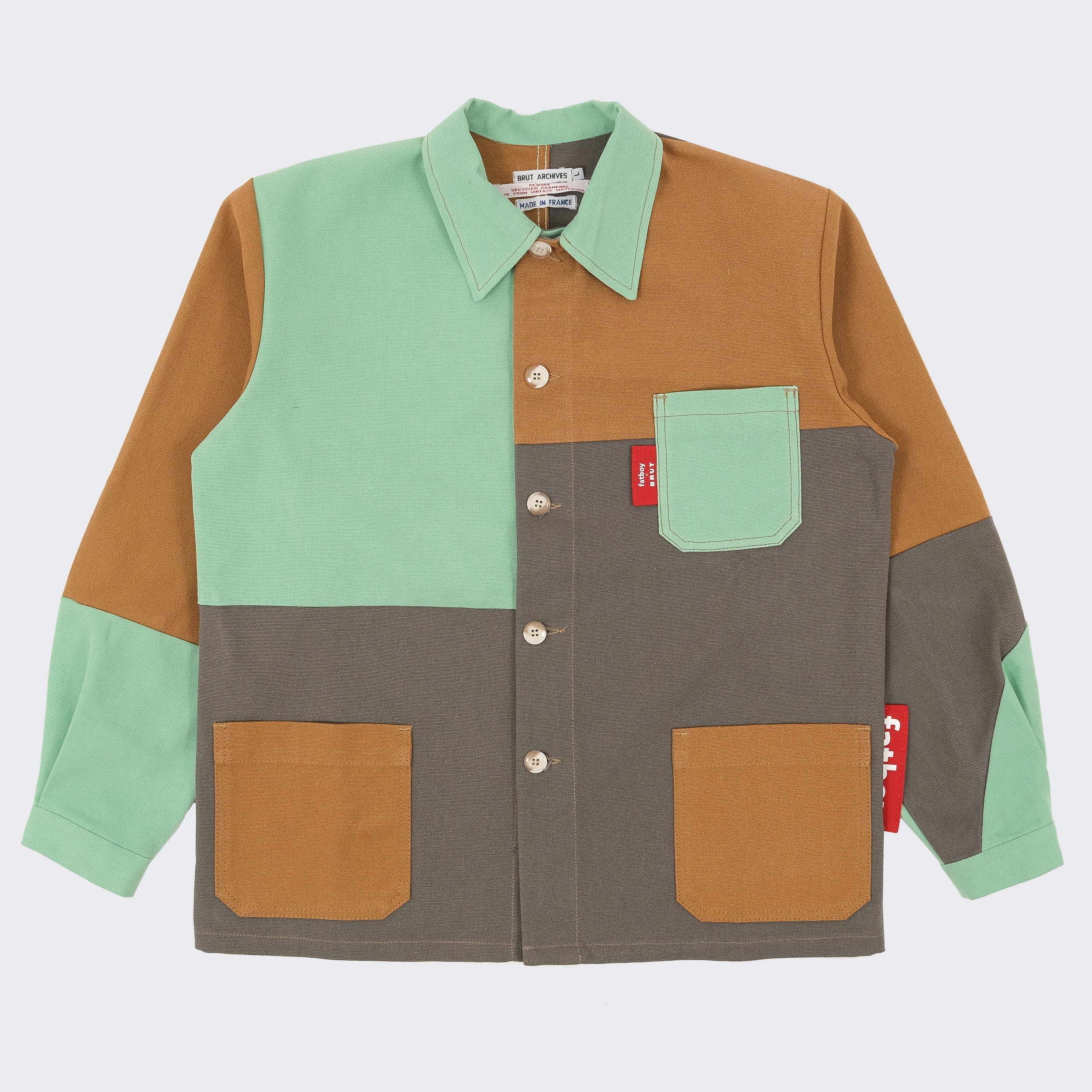 Fatboy opened the doors of its warehouse to BRUT, giving access to a selection of pre-used beanbags. From there, our team reworked the original fabric into new one-of-a-kind pieces. Each panel was cut, reassembled and stitched by hand in our Parisian atelier. The result: a set of chore jackets that carry the traces of their past use, now transformed into functional and timeless designs.