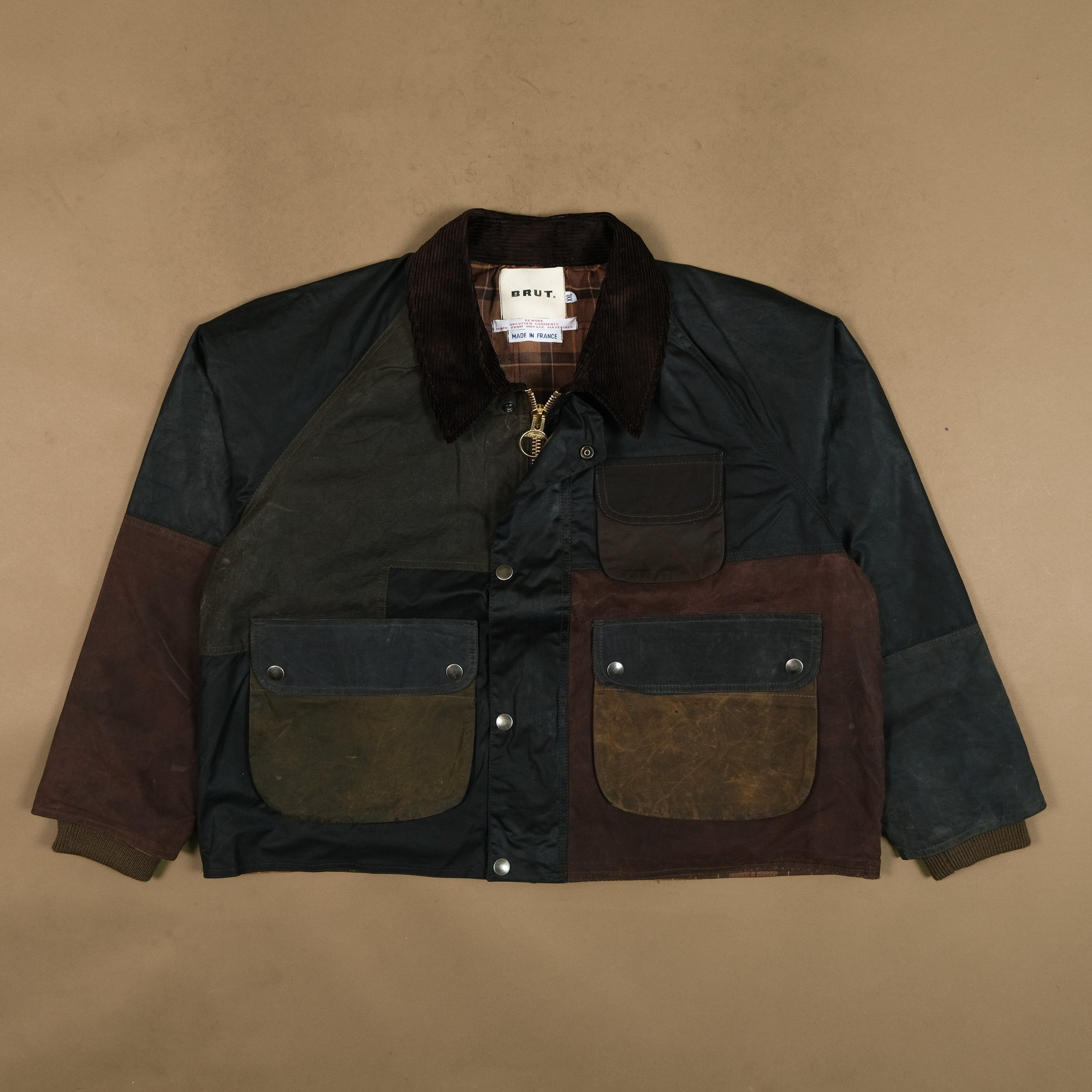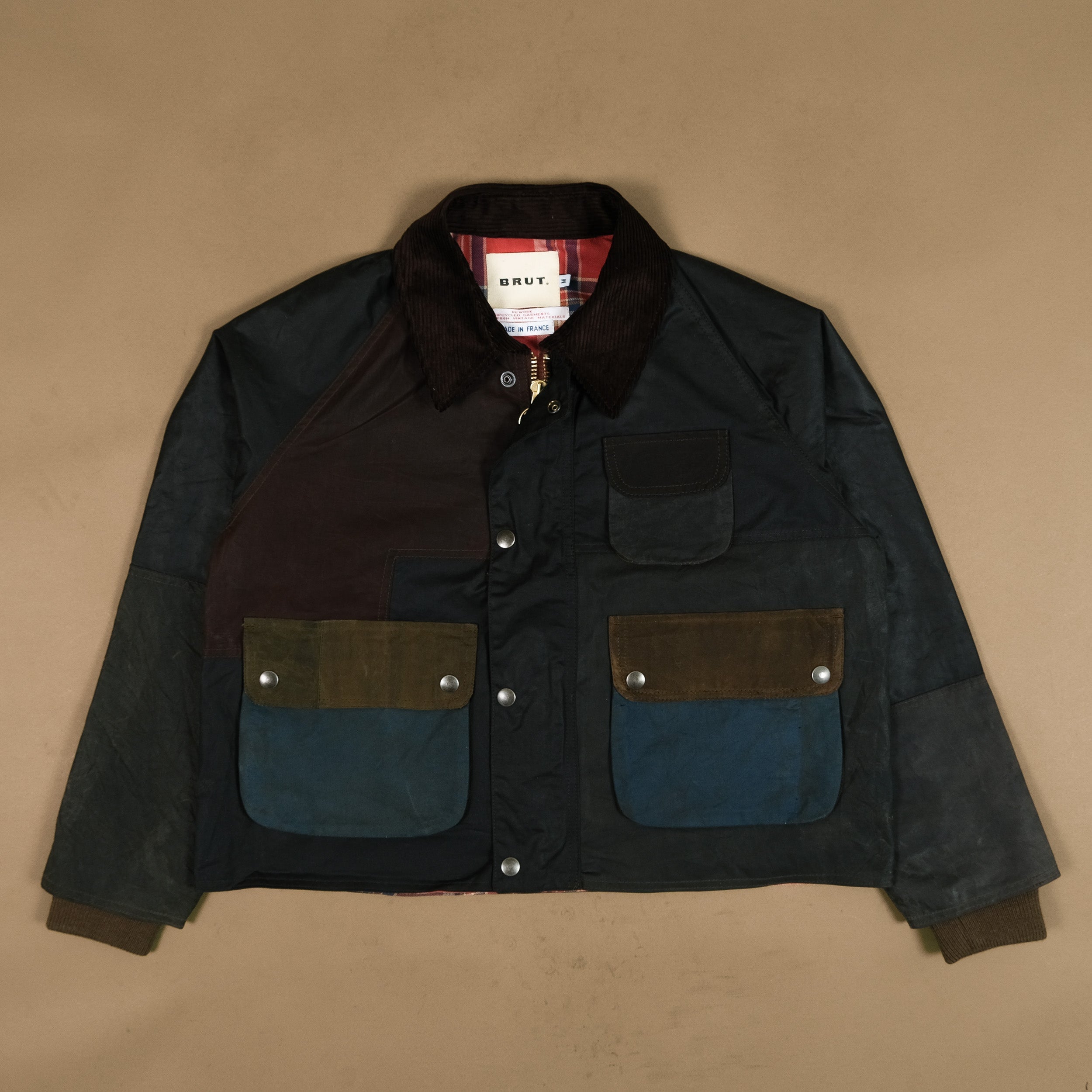 Built entirely from vintage Barbour jackets, the V3 pushed the idea of patchwork further, combining heritage fabrics with a refined, technical construction. Every jacket reimagines the Barbour DNA through BRUT's lens: cropped fit, reassembled panels and the visible character of wear.