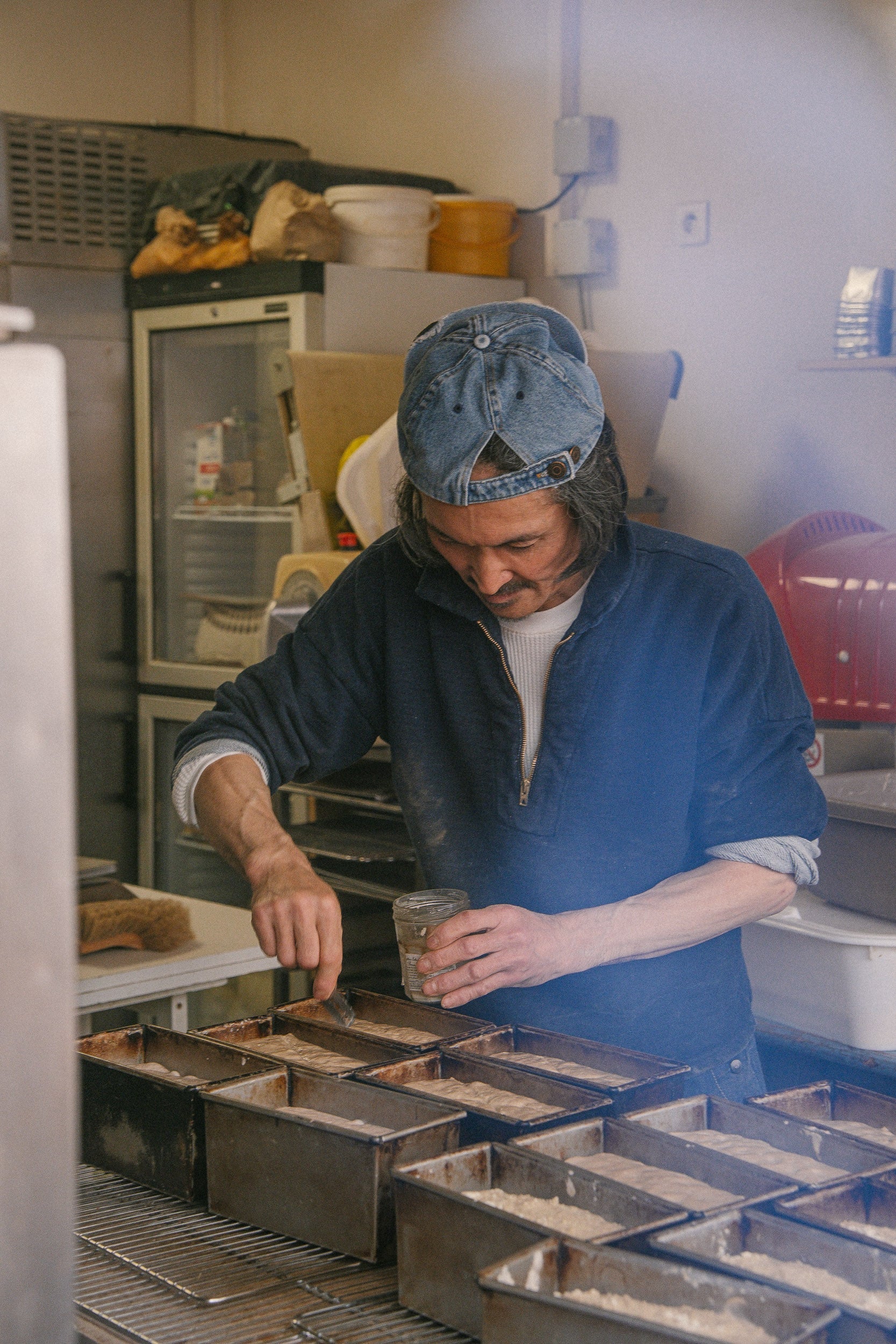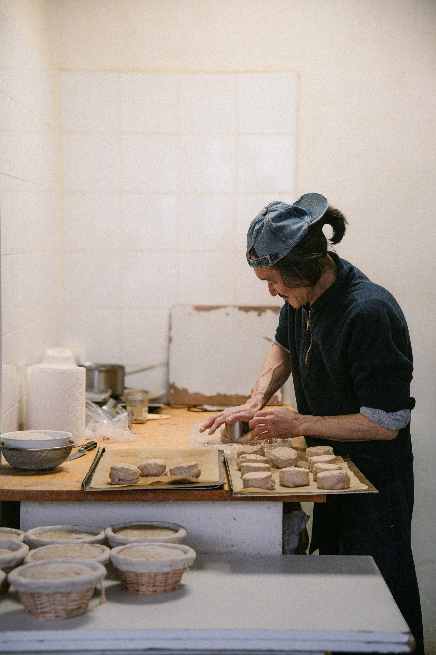 Forget about sleek counters and curated addresses: you enter a chaotic shop/lab/bakery, with inconvenient opening hours and bread scattered everywhere. As a soloist baker, Shinya kneads, bakes, welcomes, sells, and even handles communication on social media (an Instagram account with post-it notes listing the daily breads).