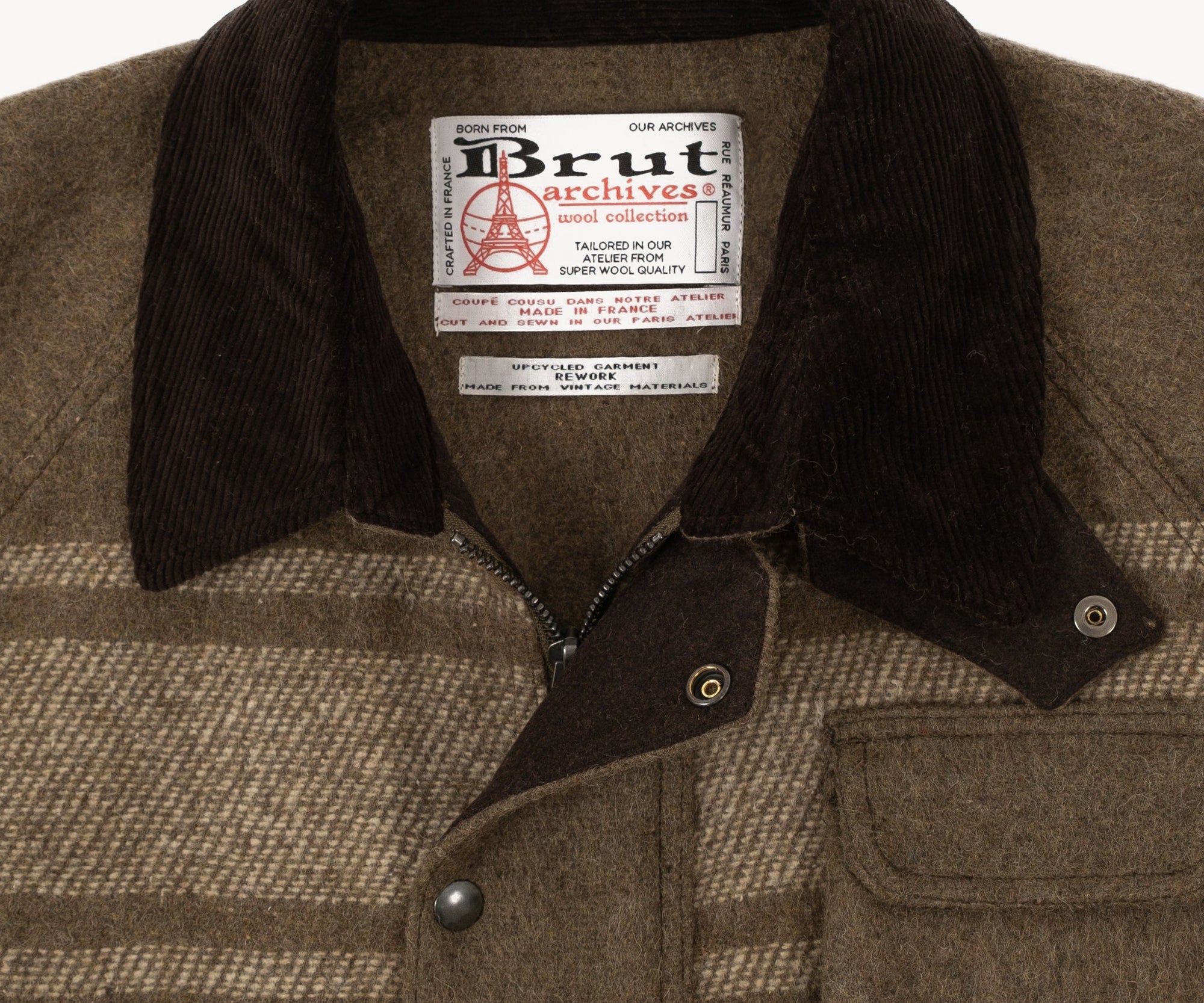 The REWORK® ARMY PLAID JACKET is crafted from old stock of vintage military blanket fabric and quality hardware. To honor this legacy, all of our REWORK® ARMY PLAID JACKET are cut and sewn with vintage equipment in our atelier in Paris.