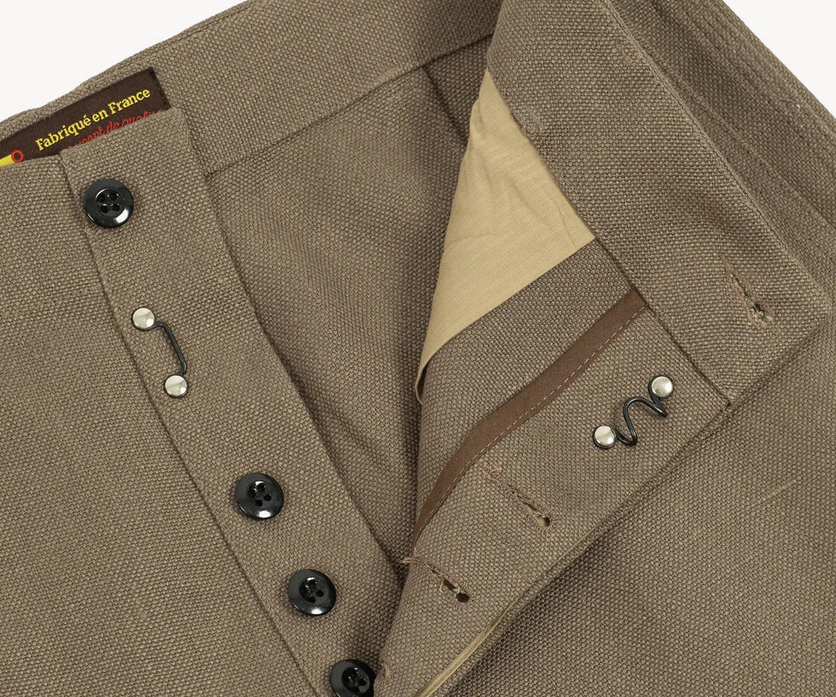 Heavyweight canvas 100% Linen. This piece is carefully handmade on vintage equipment in our Parisian atelier.