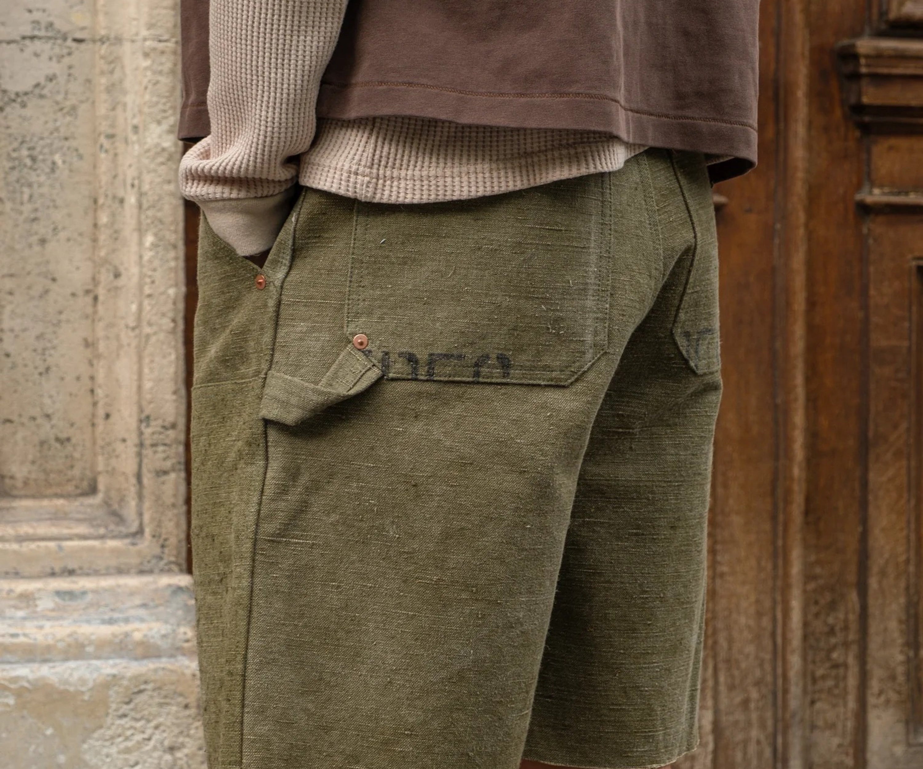 The REWORK® DOUBLE KNEE SHORTS is a modern reinterpretation of the 1950s work pants, it is made out of an heavy cotton canvas, quality hardware and triple-stitch construction in order to endure time. The REWORK® DOUBLE KNEE SHORTS is designed to be a staple in your wardrobe thanks to their heavyweight and durable fabric.