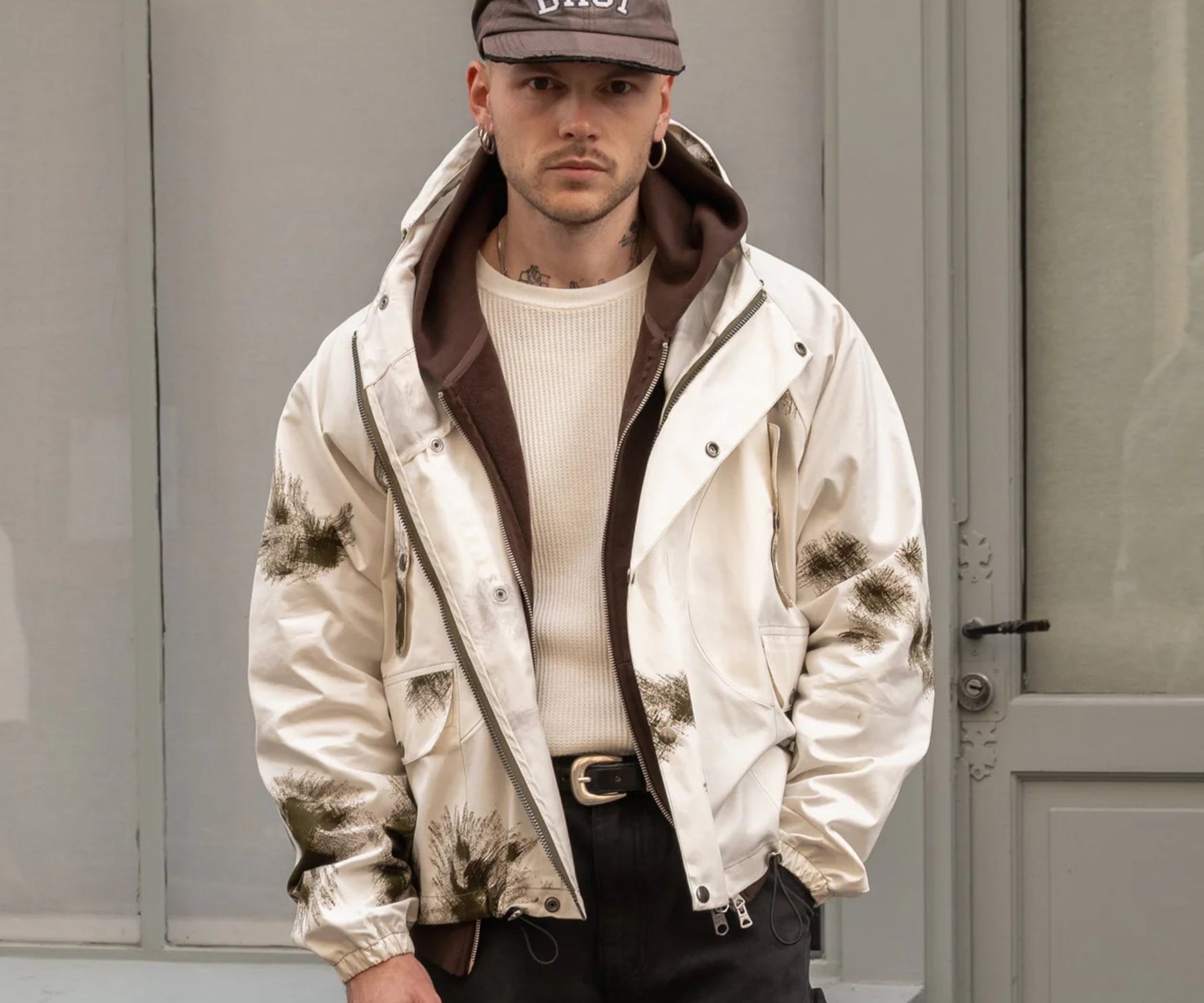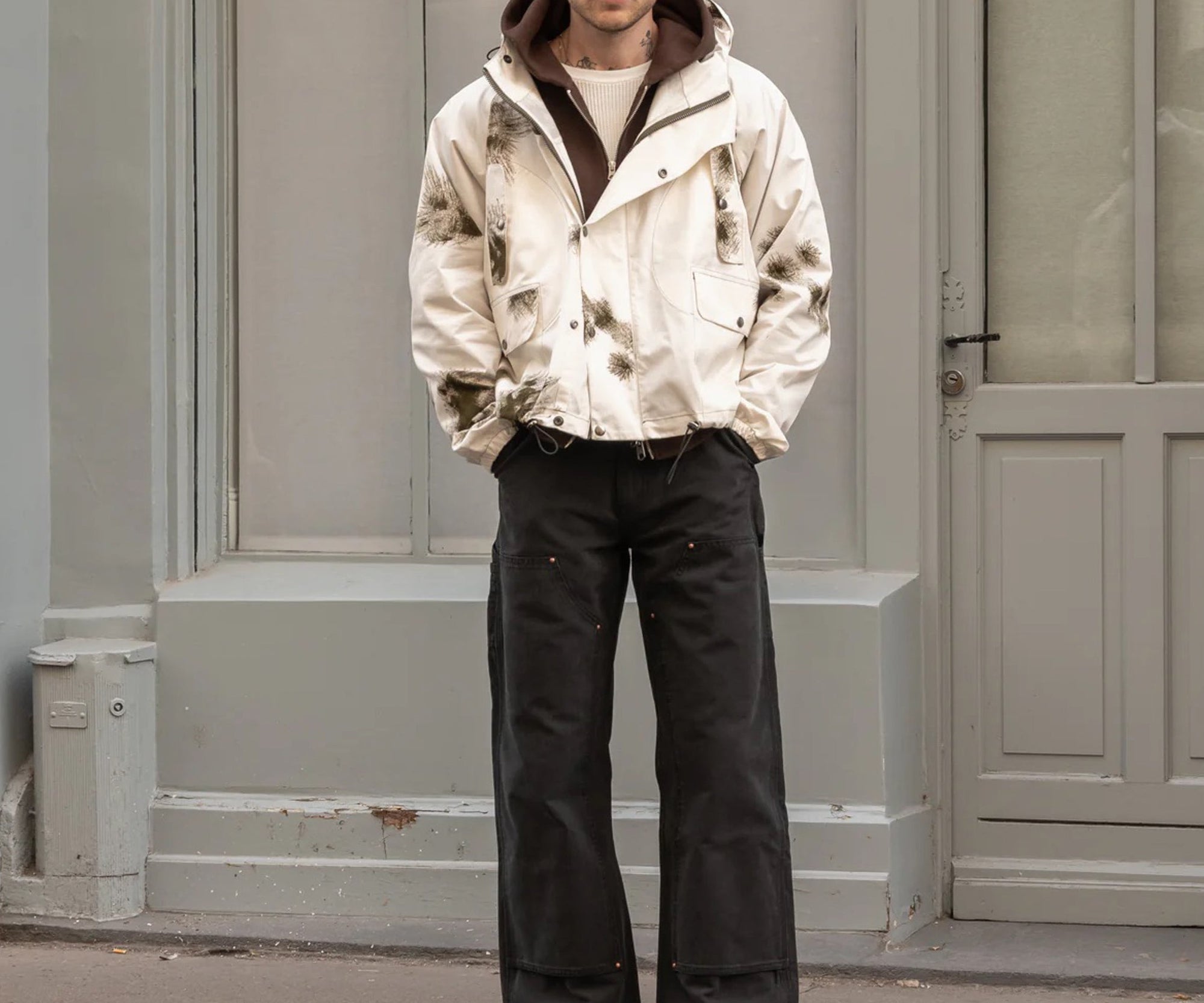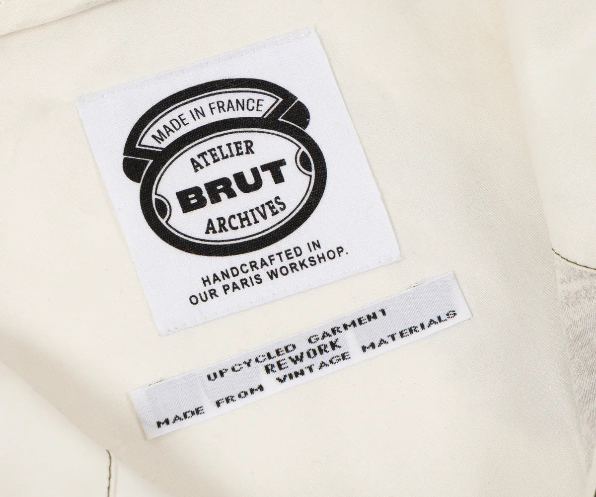 100% cotton. Original fabric of a mid-1960s camo designed for operation in snow-covered. This piece is handmade on vintage equipment in our Parisian atelier. Made in France.