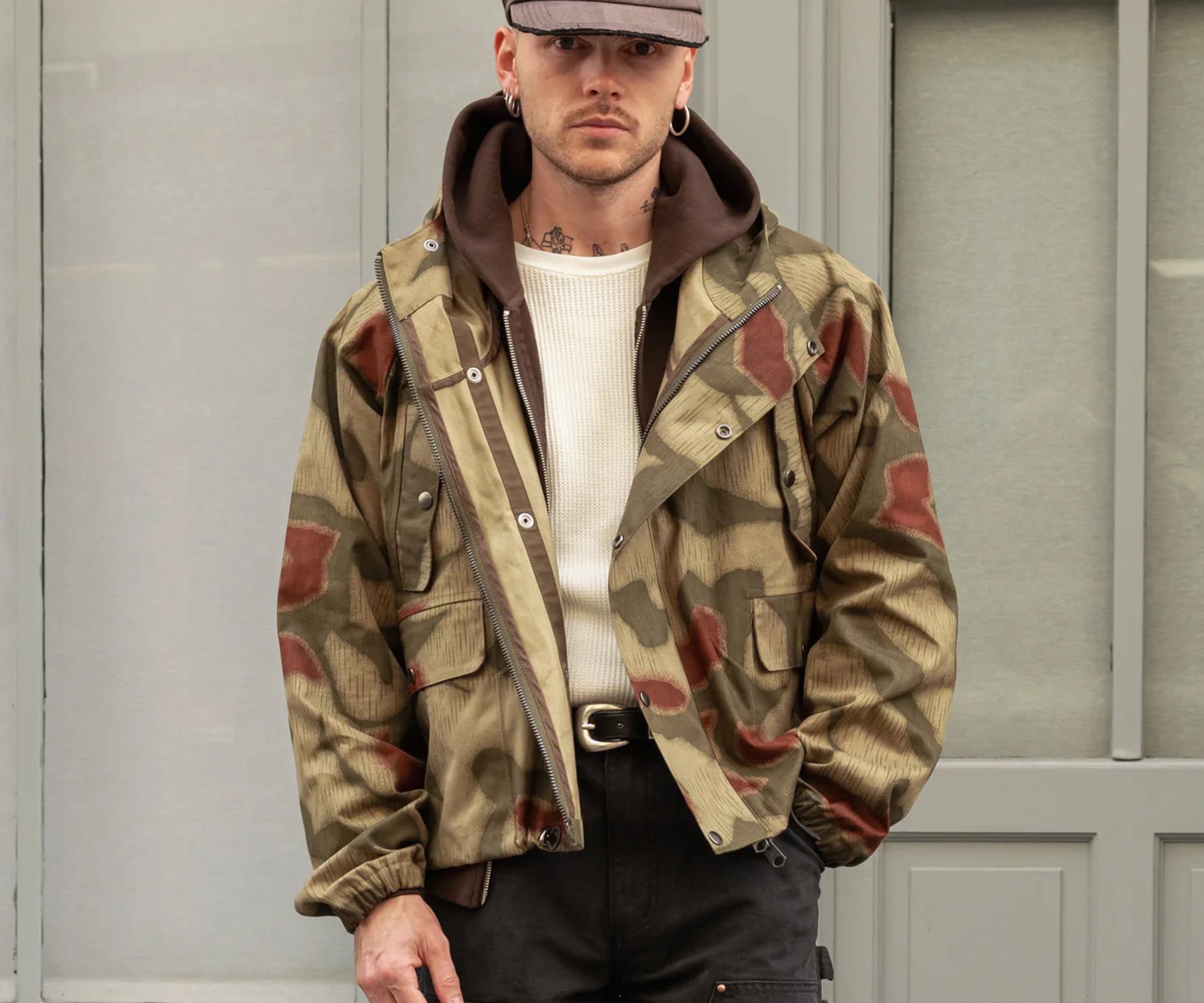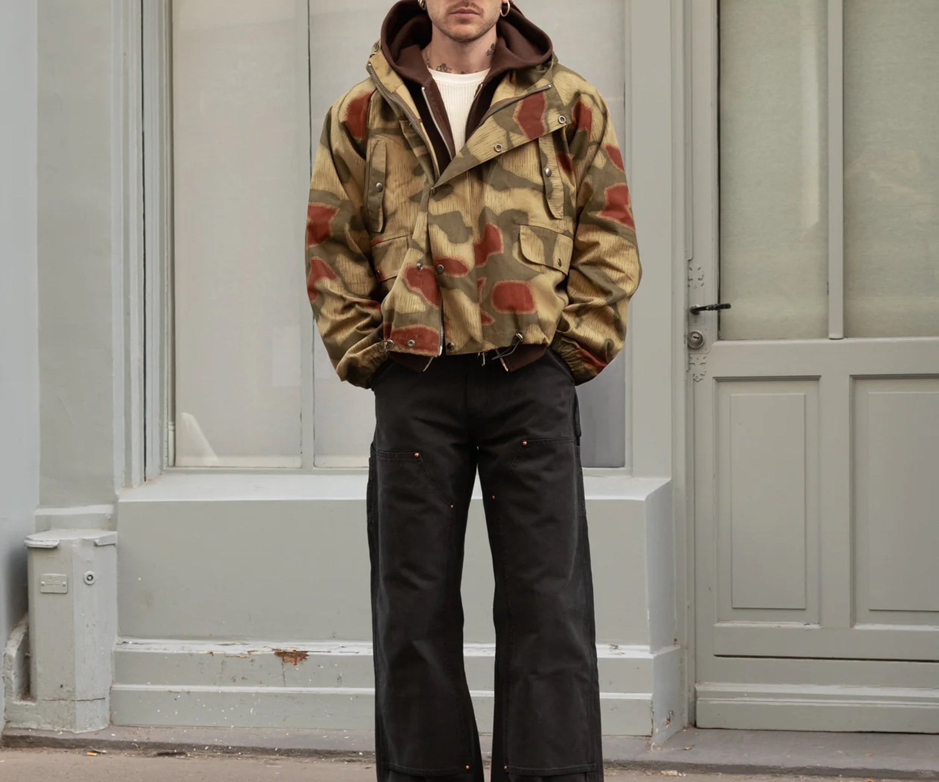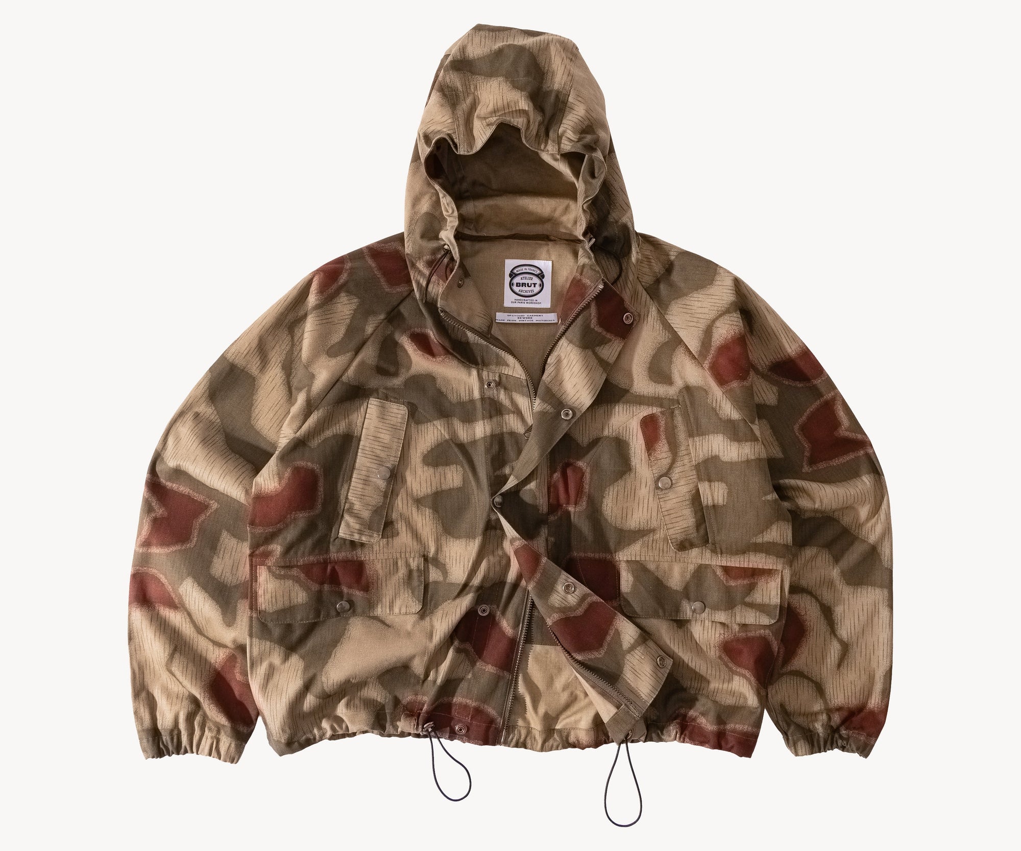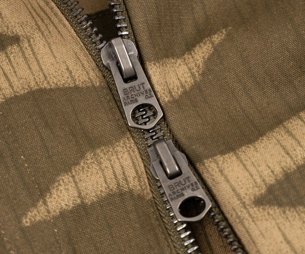 100% cotton. Rare original BGS camo fabric from the 70s. This piece is handmade on vintage equipment in our Parisian atelier. Made in France.