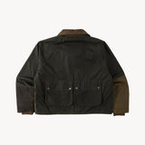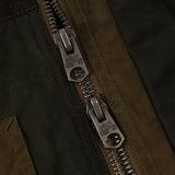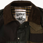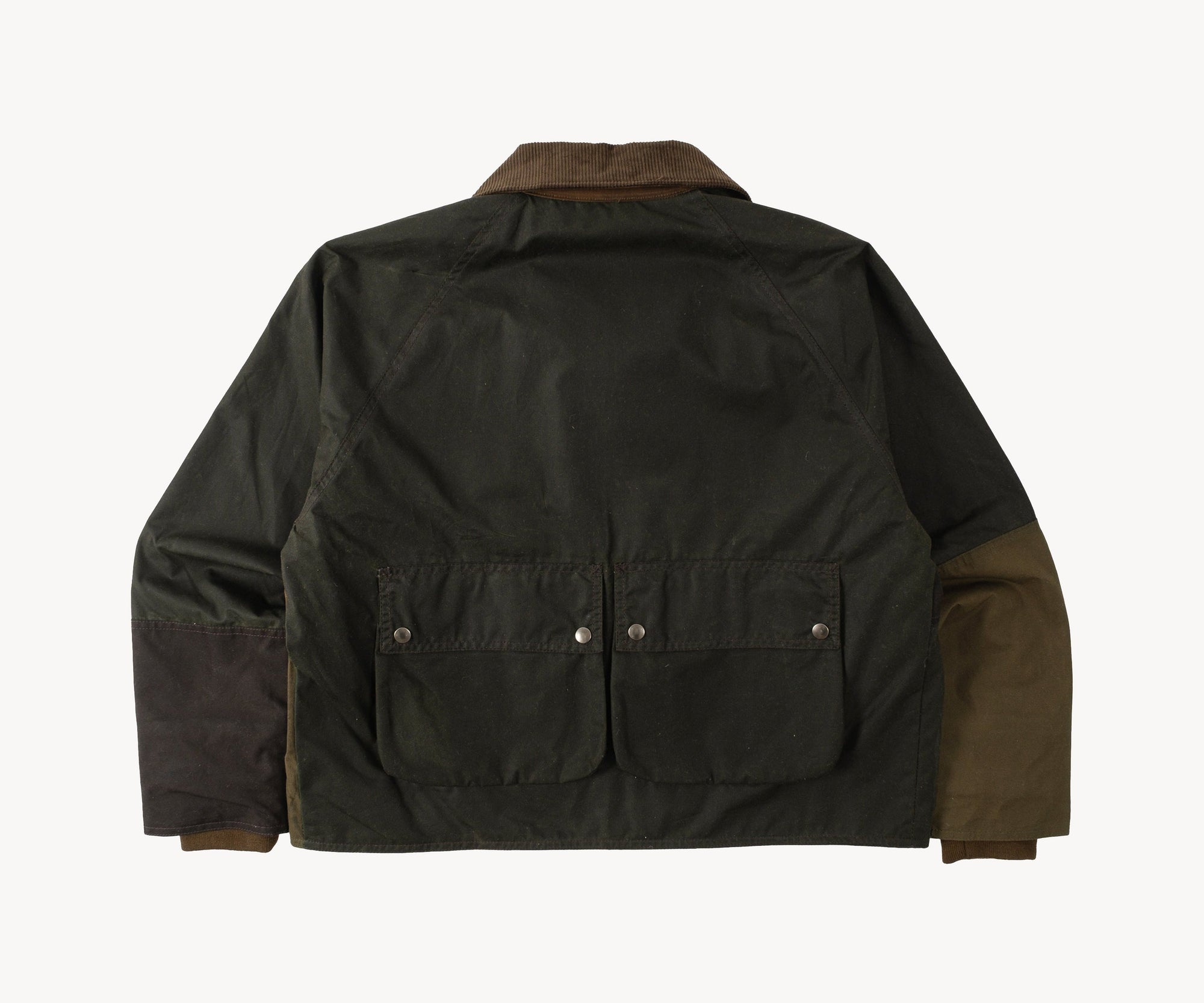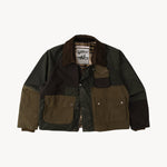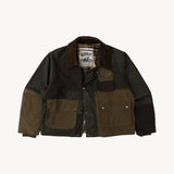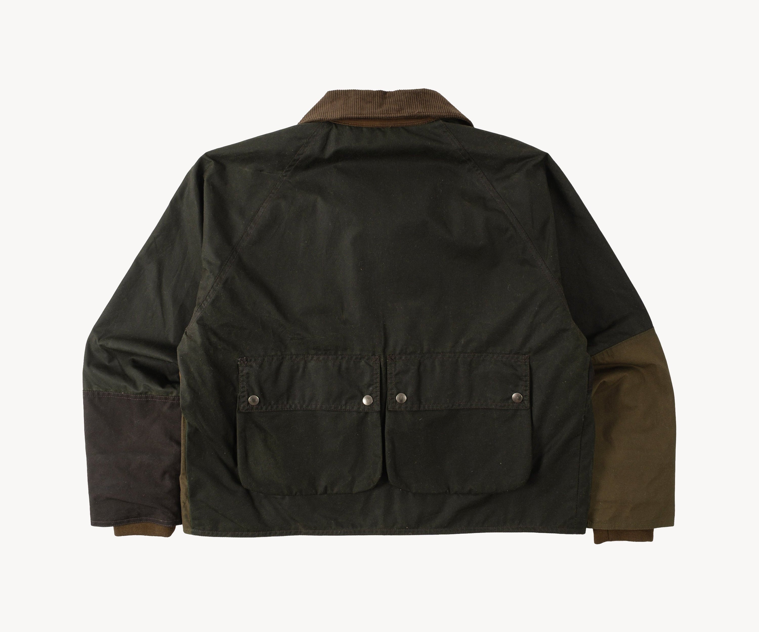 The REWORK® WAX JACKET - V5 is crafted from old stock British Millerain dry waxed fabric in a patchwork style.