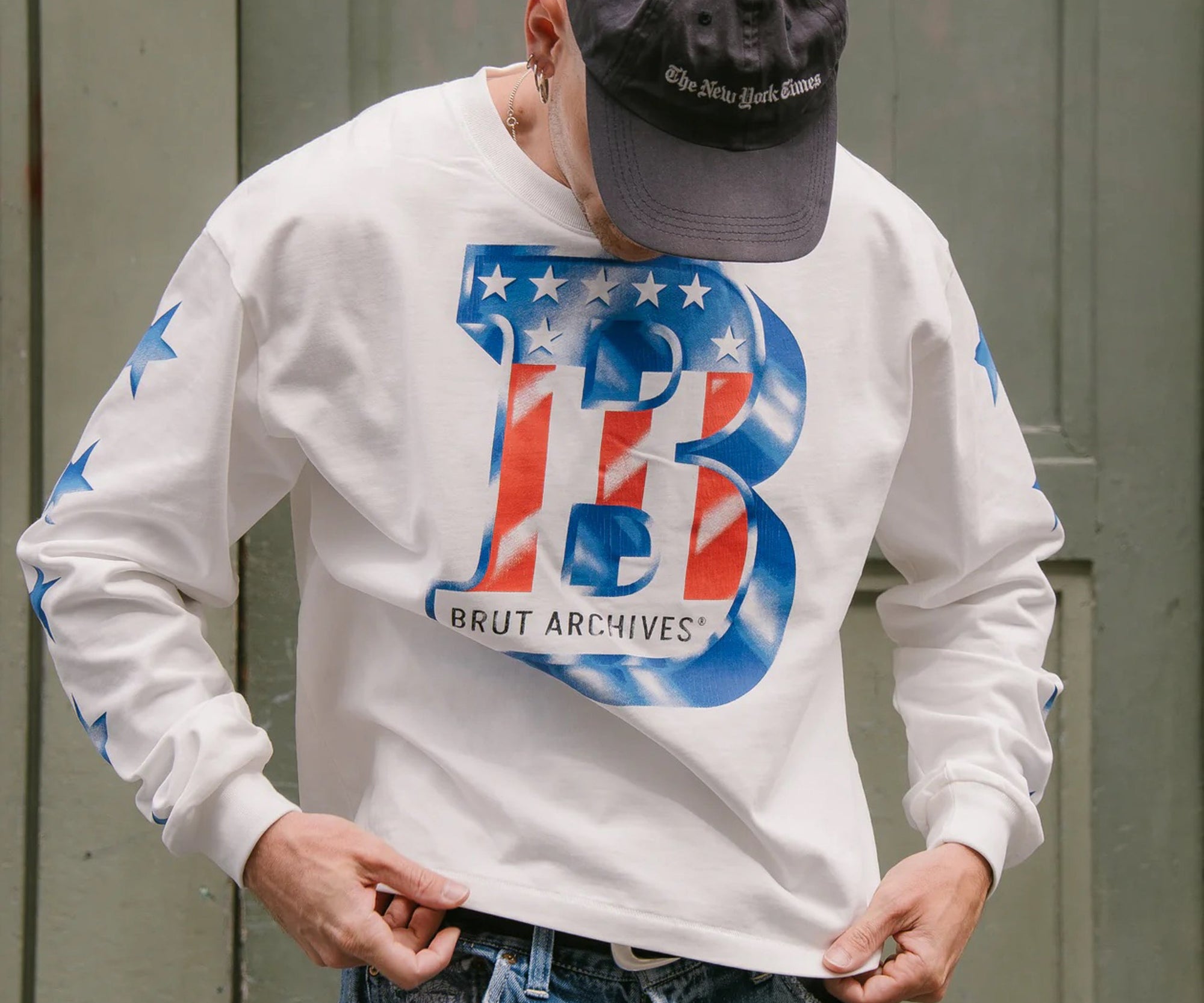 Brut Archives B-DREAM graphics screen printed on front and sleeves.