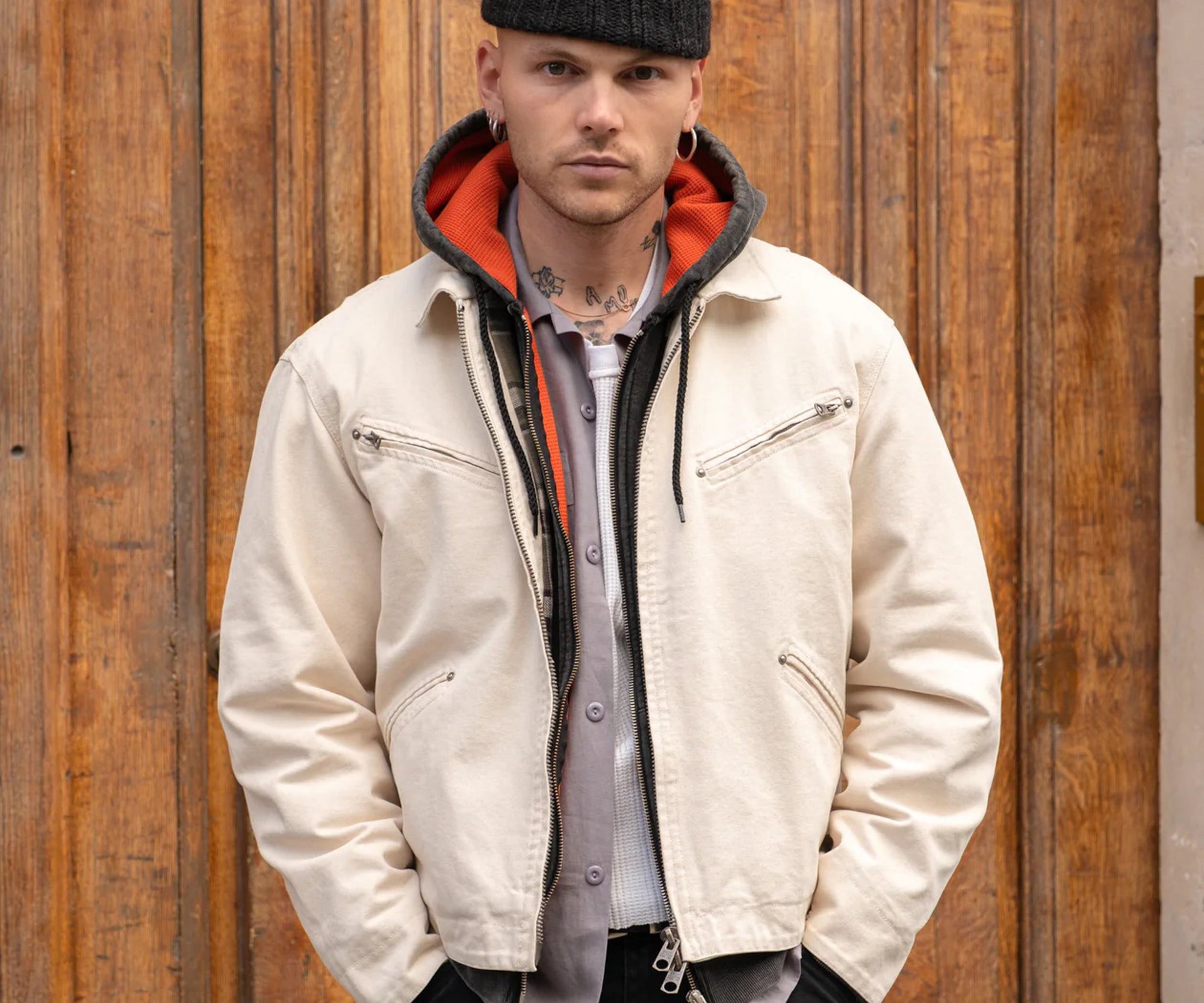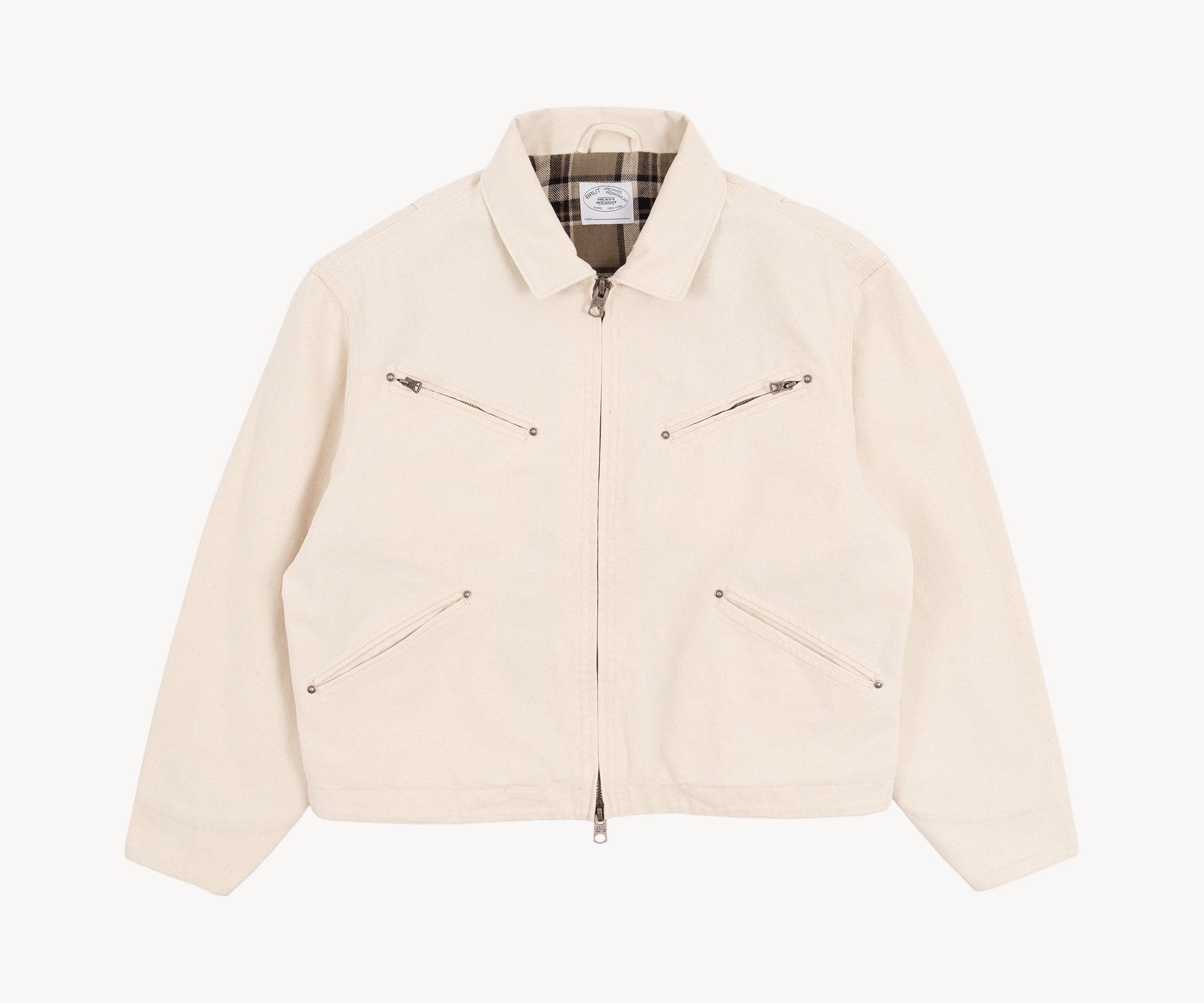 This jacket gives the timeless zip-up workwear style a modern edge. It’s designed with a boxy, relaxed fit to keep things casual but still functional.