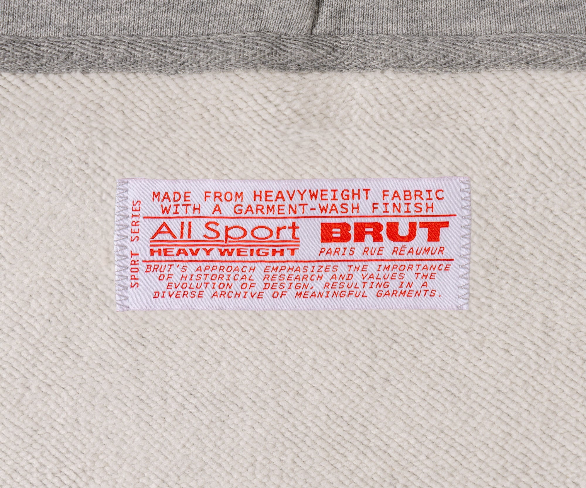 This sweatshirt represents BRUT's vision of the perfect hoodie, designed by our team in Paris after carefully studying the structure, design, weight, shape, and colors of our favorite vintage hoodies from our archive. After many samples, we arrived at what we deem to be the Best Sweat.