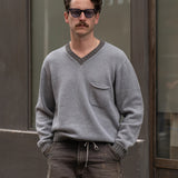 The BEST SWEATER is a spring and summer wardrobe essential. This timeless design is inspired by an 80's preppy sweater from our archives. It features a contrasting V-neck collar with matching cuffs.