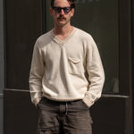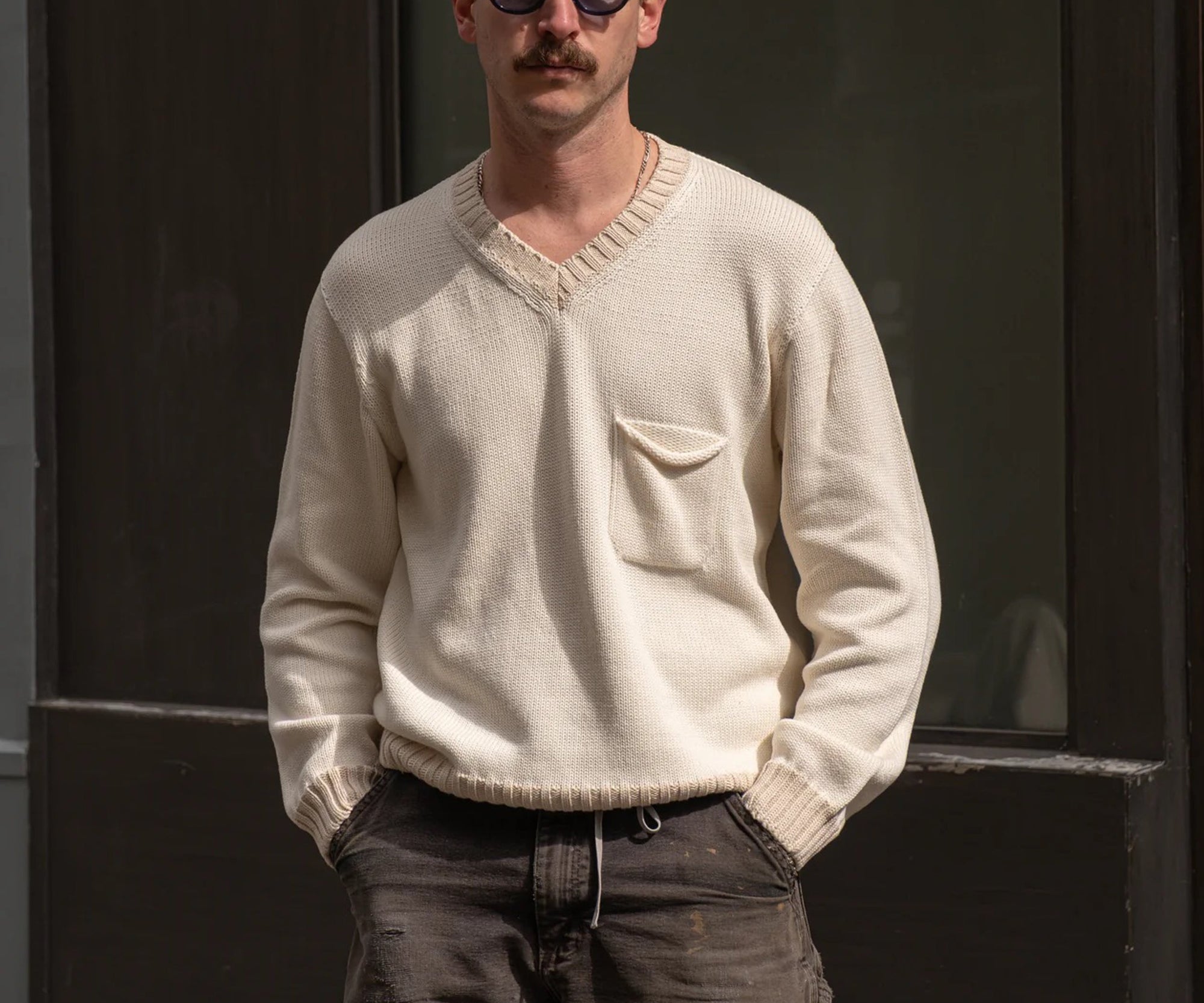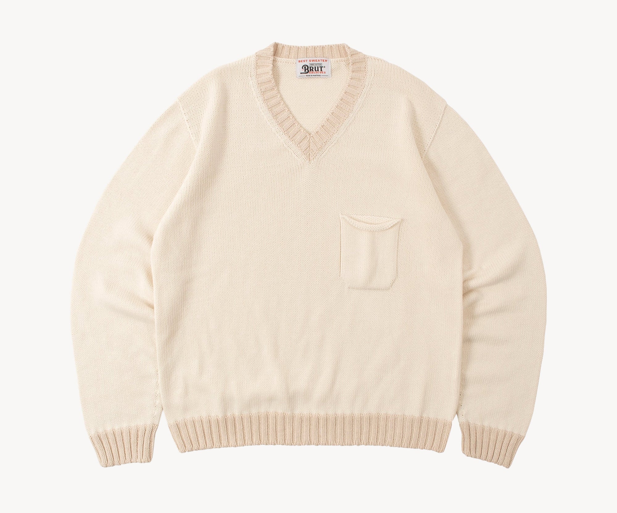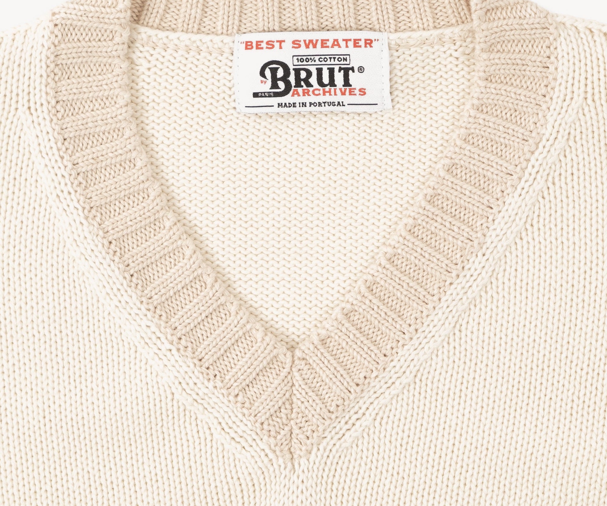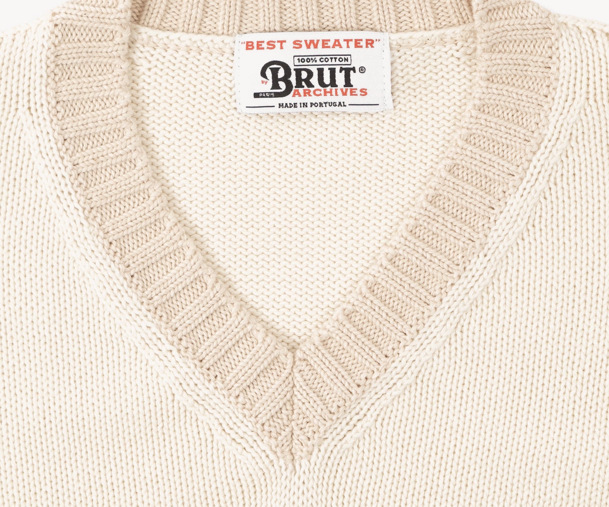 The BEST SWEATER is a spring and summer wardrobe essential. This timeless design is inspired by an 80's preppy sweater from our archives. It features a contrasting V-neck collar with matching cuffs.