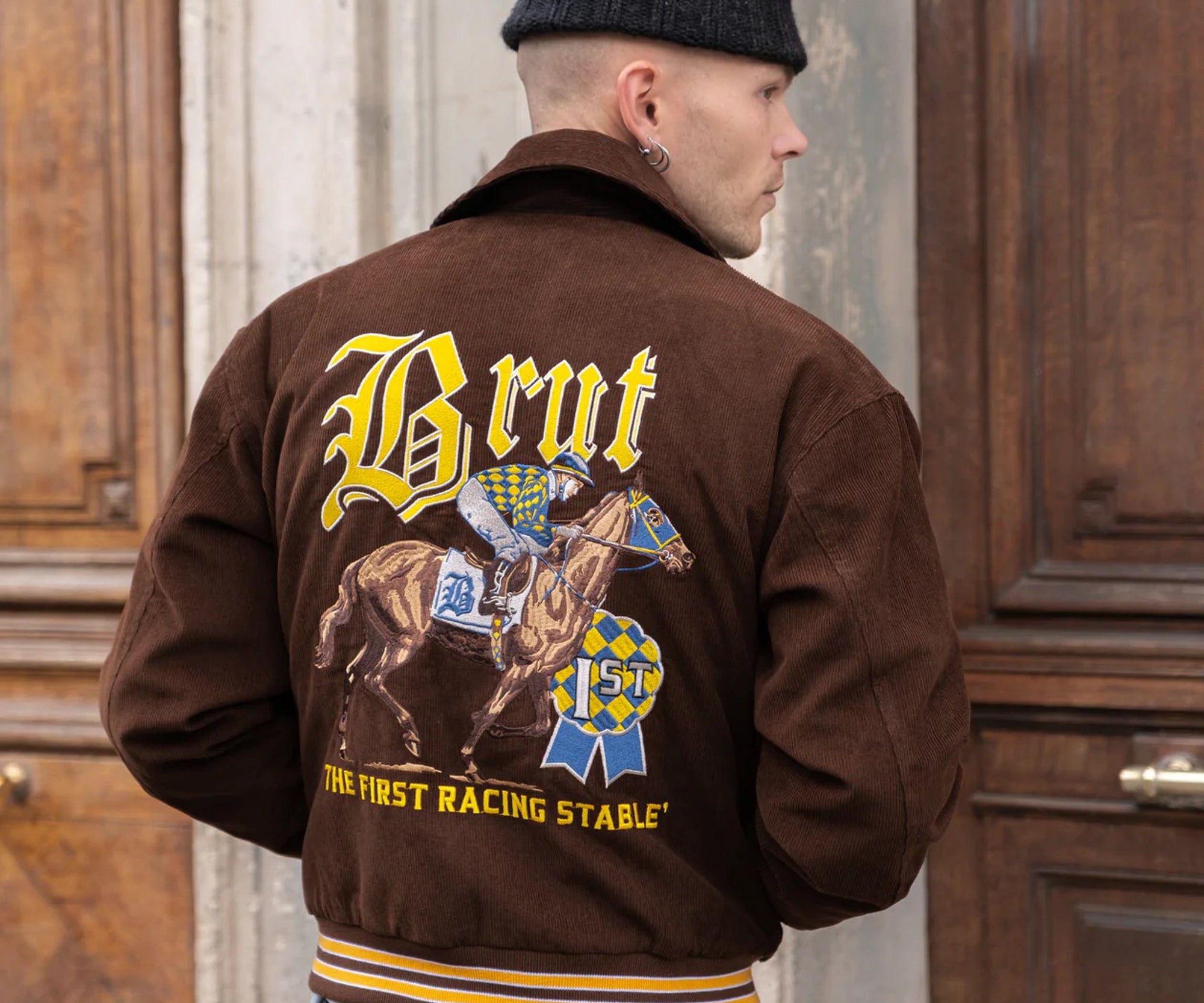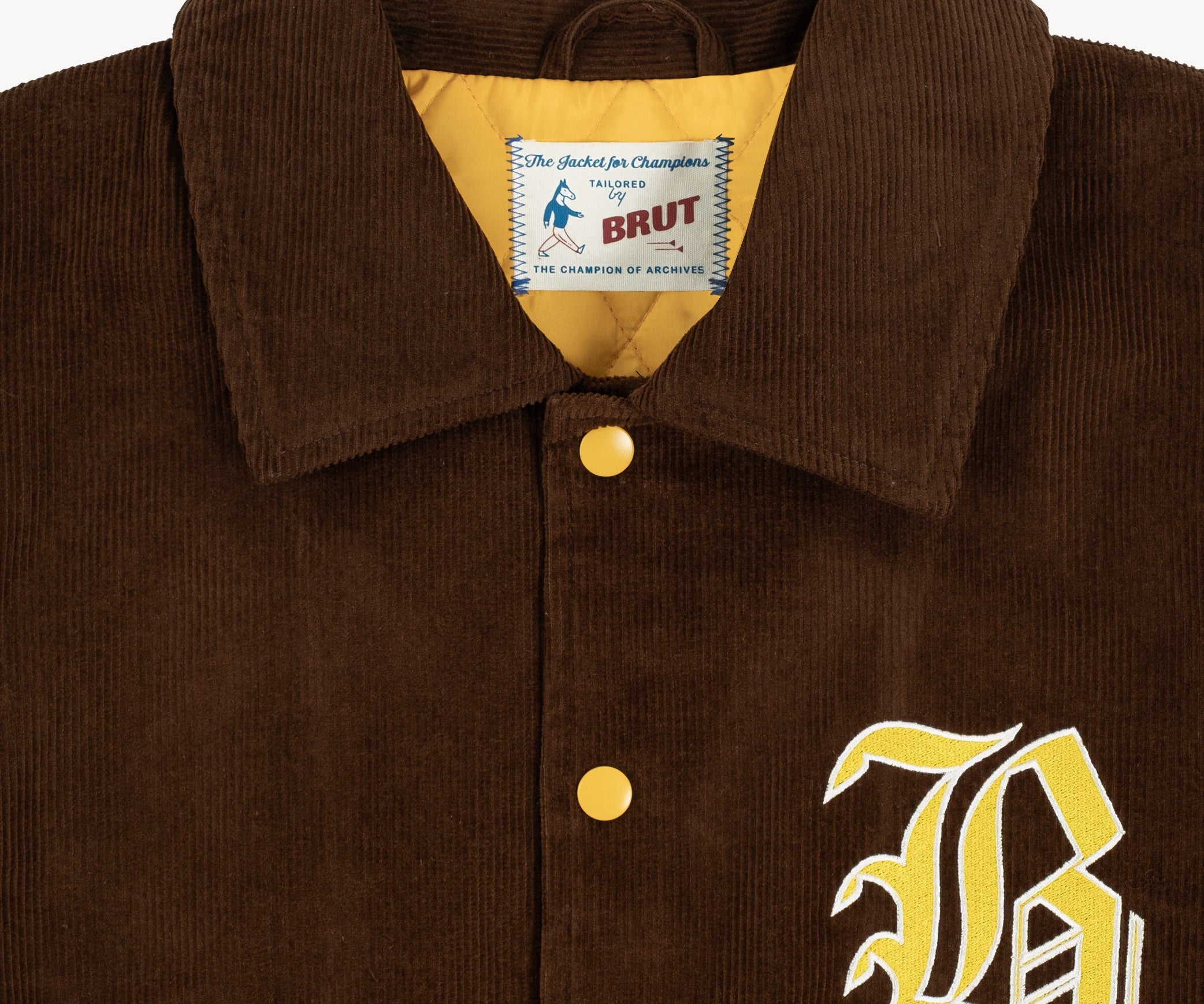 Embroidered Brut Archives champion graphics on front and back.