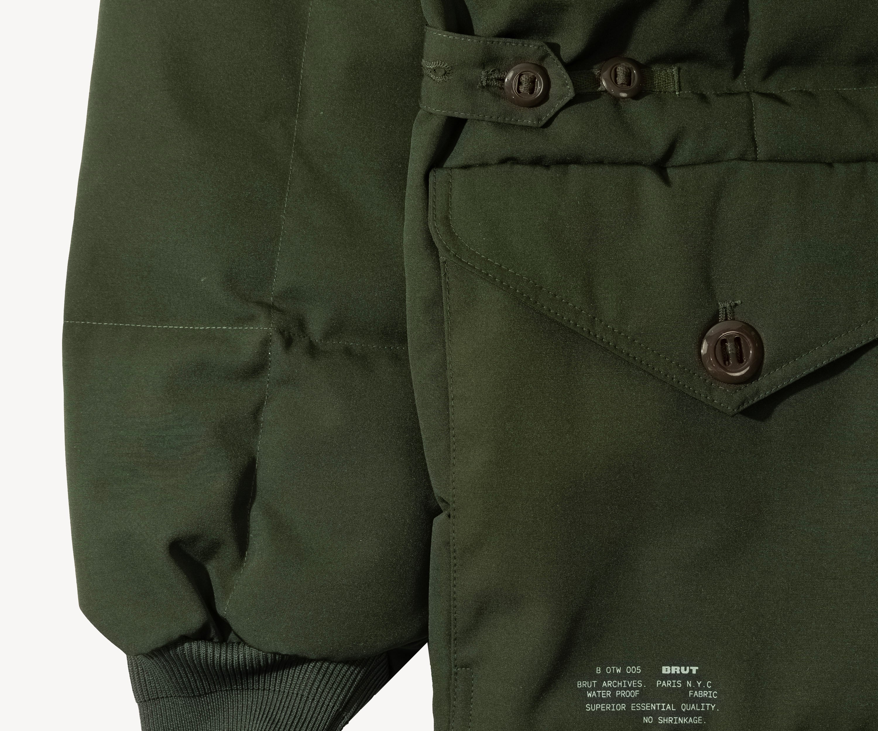 100% Recycled polyester water repellent. Down filling. Made in China.