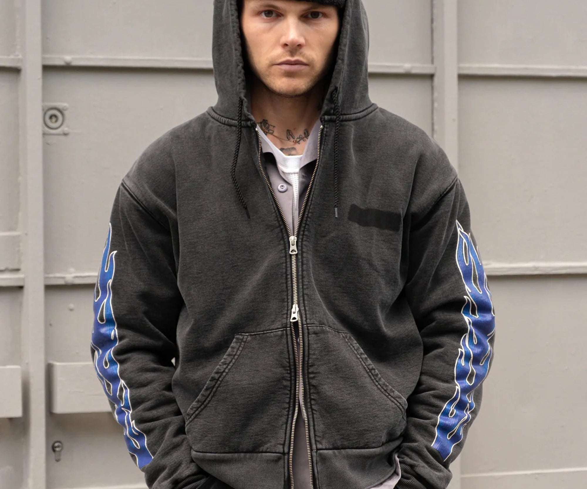 The ZIP SWEAT is representing BRUT's vision of the perfect lined zipped hoodie. This sweatshirt is designed by our team in Paris after carefully studying the structure, design, weight, shape, and colours of our favorite vintage hoodies from our archive and adding our own details.