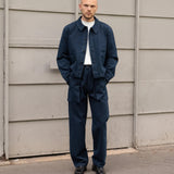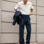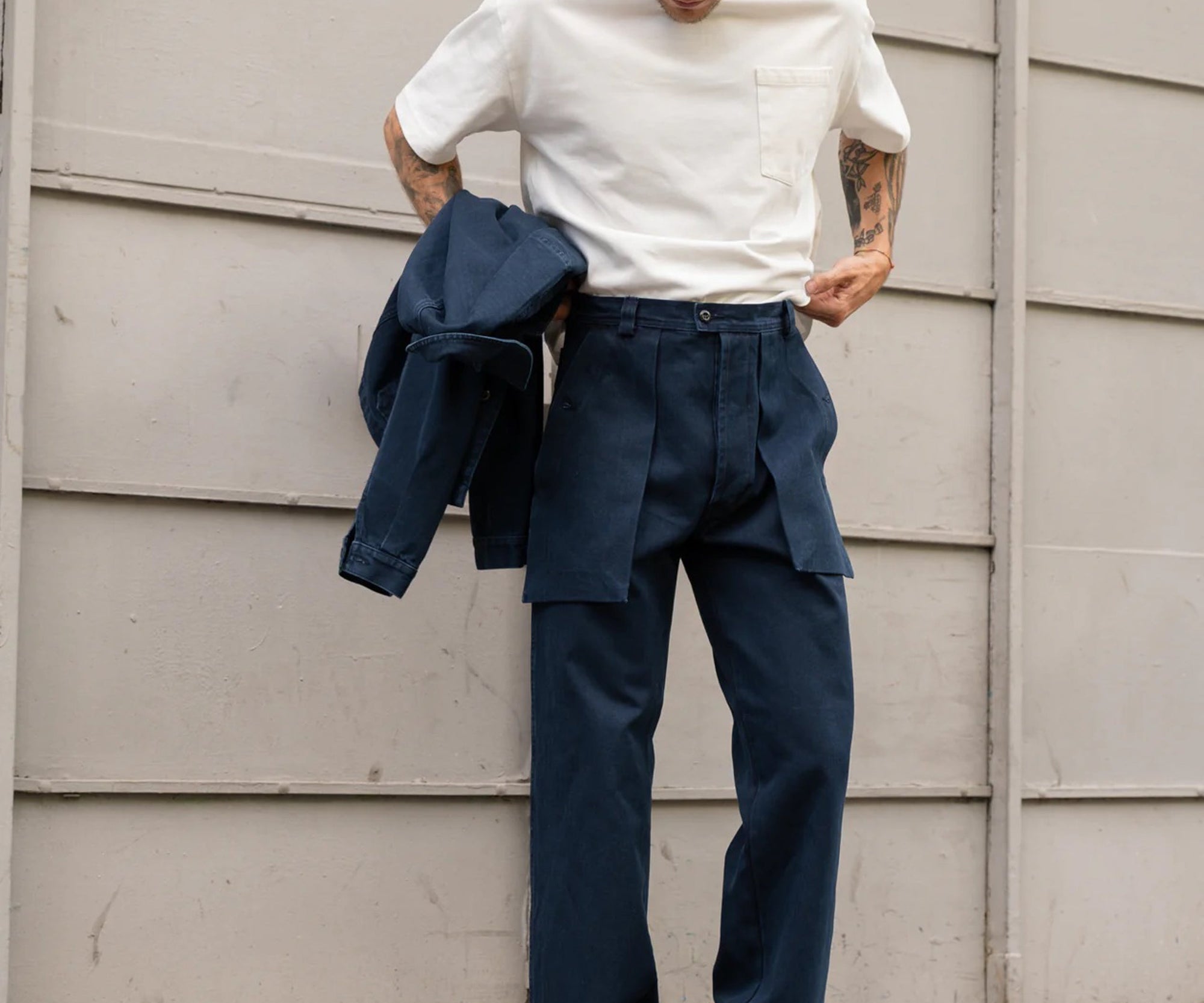 The INDIGO ATELIER PANTS pays tribute to classic French Workwear. Inspired by the iconic attire of French painters, these pants fuse classic design with contemporary flair. Crafted with meticulous attention to detail, they feature two generously sized front pockets, reminiscent of a painter's utility pouches, providing ample space.