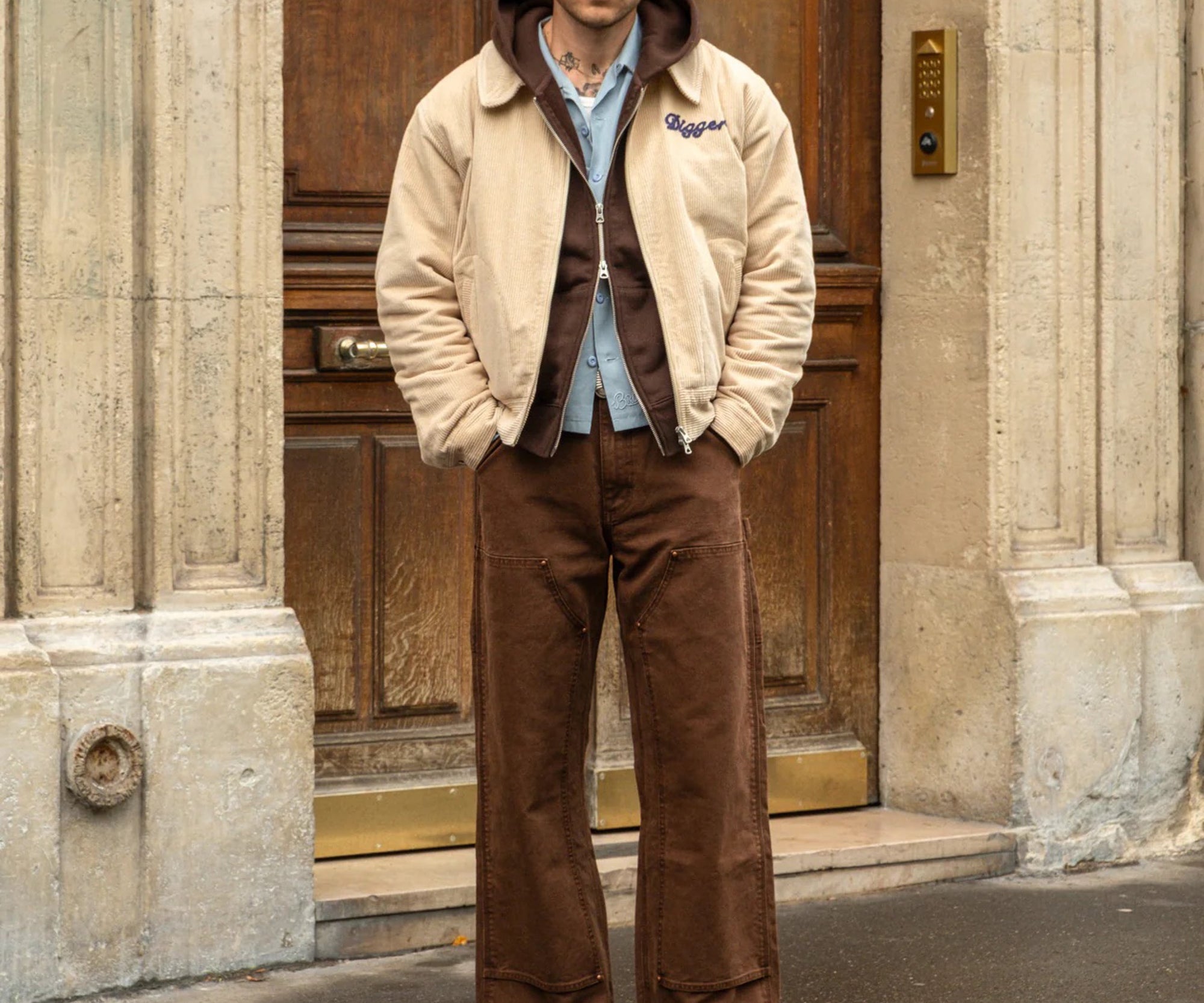 Embroidered Brut Archives Diggers graphic on front.