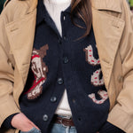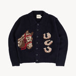 Meet our "Lucky Sweater," adorned with Americana luck symbols - the horseshoe - designed to bring you luck into every circumstance. Our crop wool cardigan features a generous collar and the exclusive fit is curated to complement high-waisted pants effortlessly.