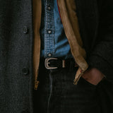 The Macadam Belt is a staple in your wardrobe, combining the classic cowboy look with a more refined and understated style. This modern iteration draws inspiration from the iconic film Midnight Cowboy. It's simple, sturdy, and timeless, making it perfect for everyday wear.