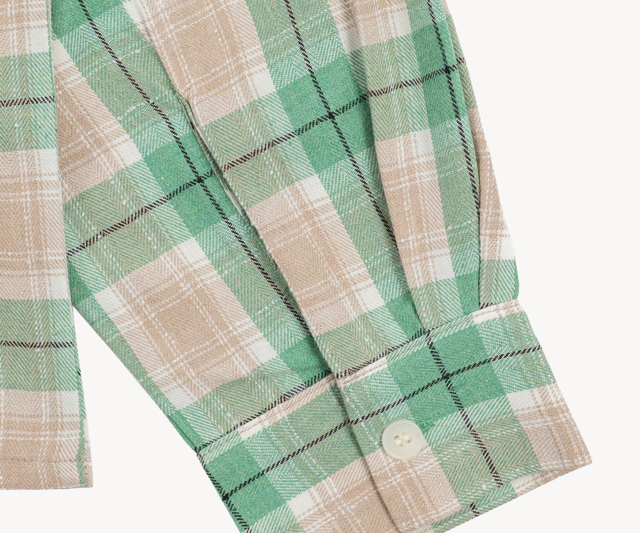 Pleats at sleeves with button closure.