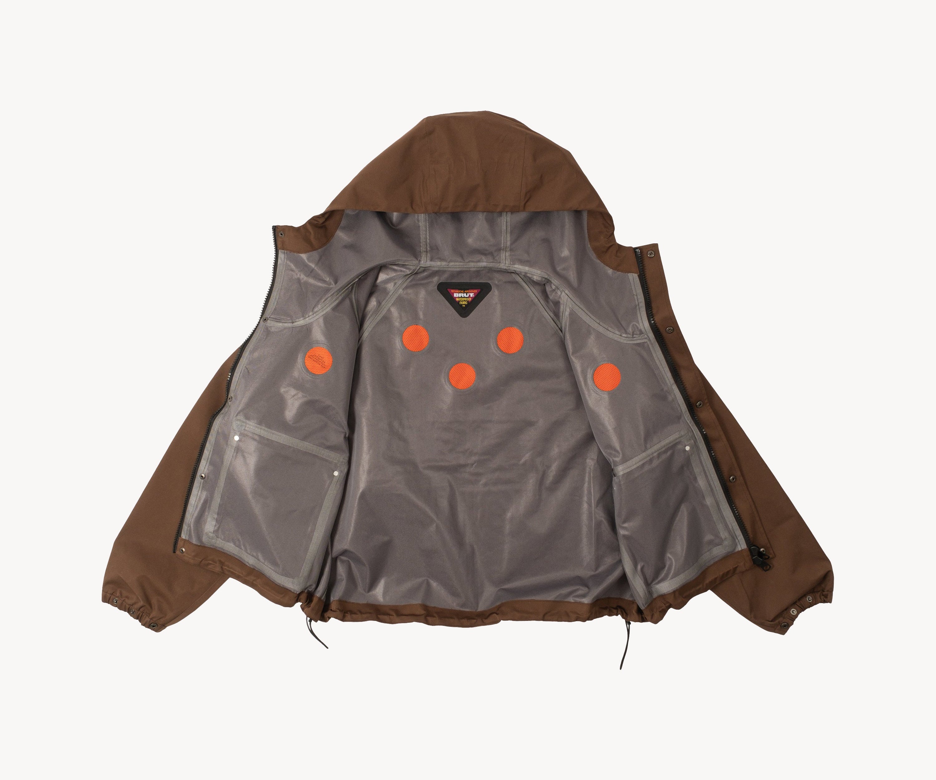 Technical reinterpretation from our vintage archives. The RAIN CROPPED JACKET is crafted from waterproof 3 layers fabric. Hidden air vents make this jacket not only waterproof and windproof, but also highly breathable.