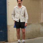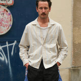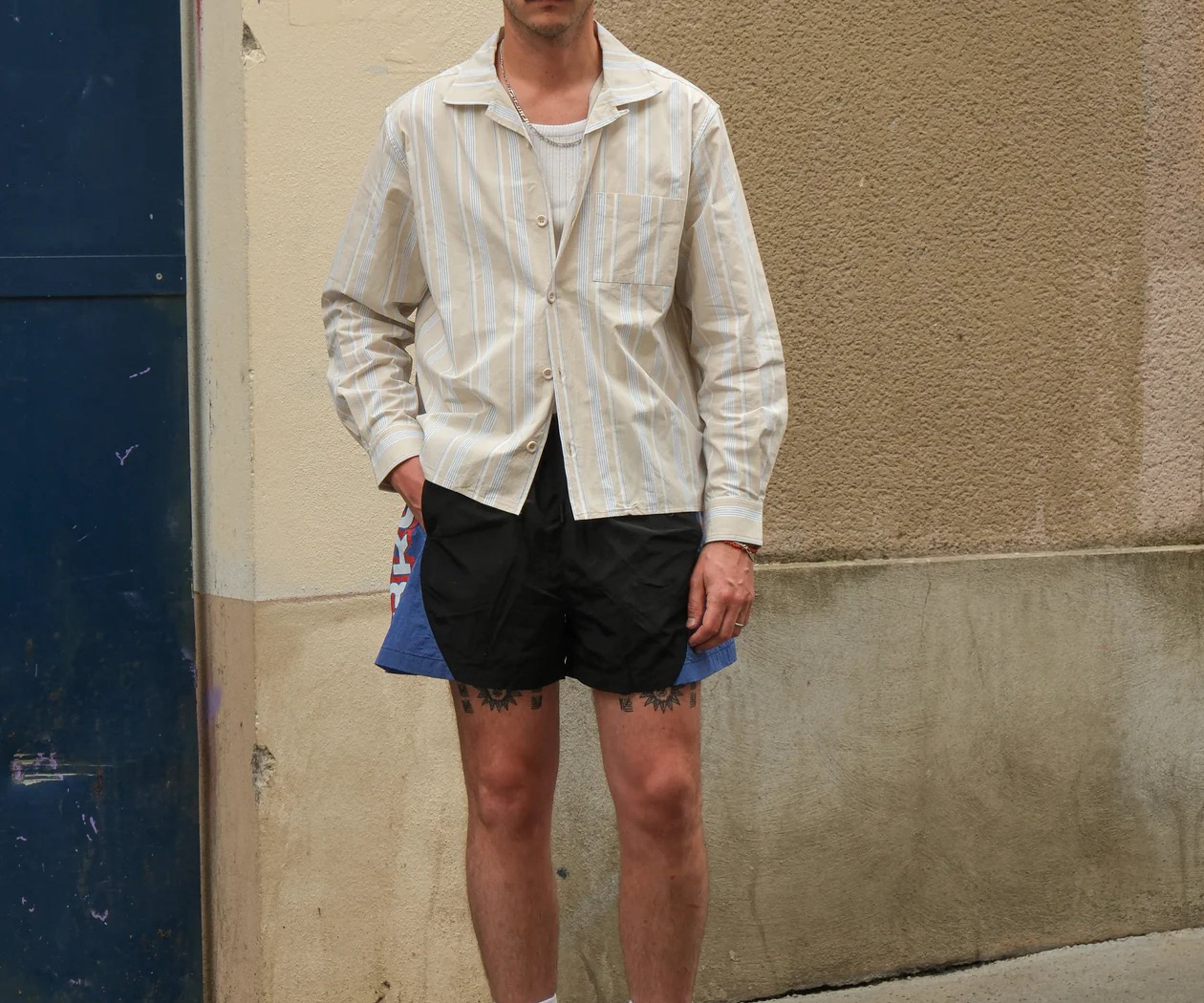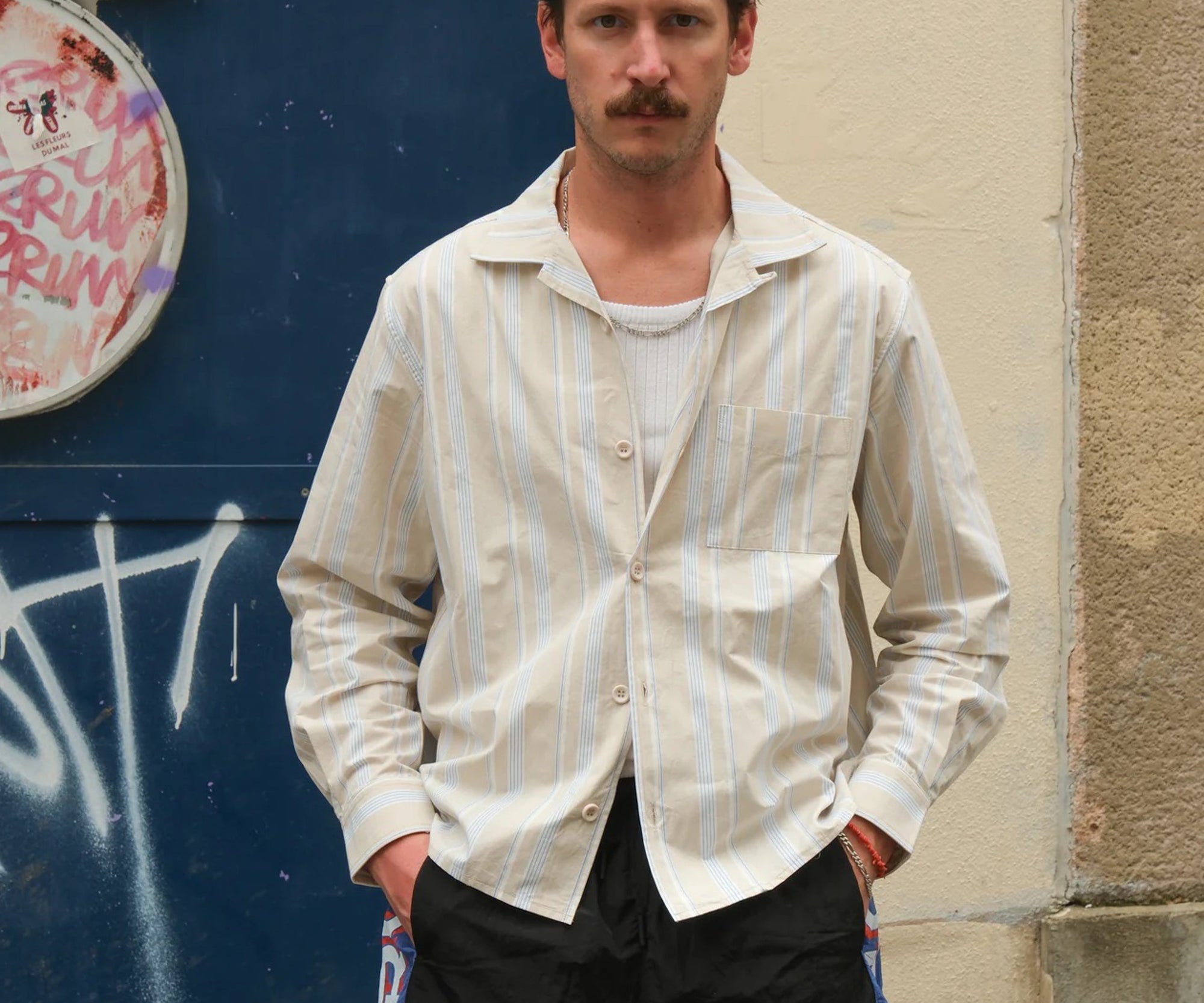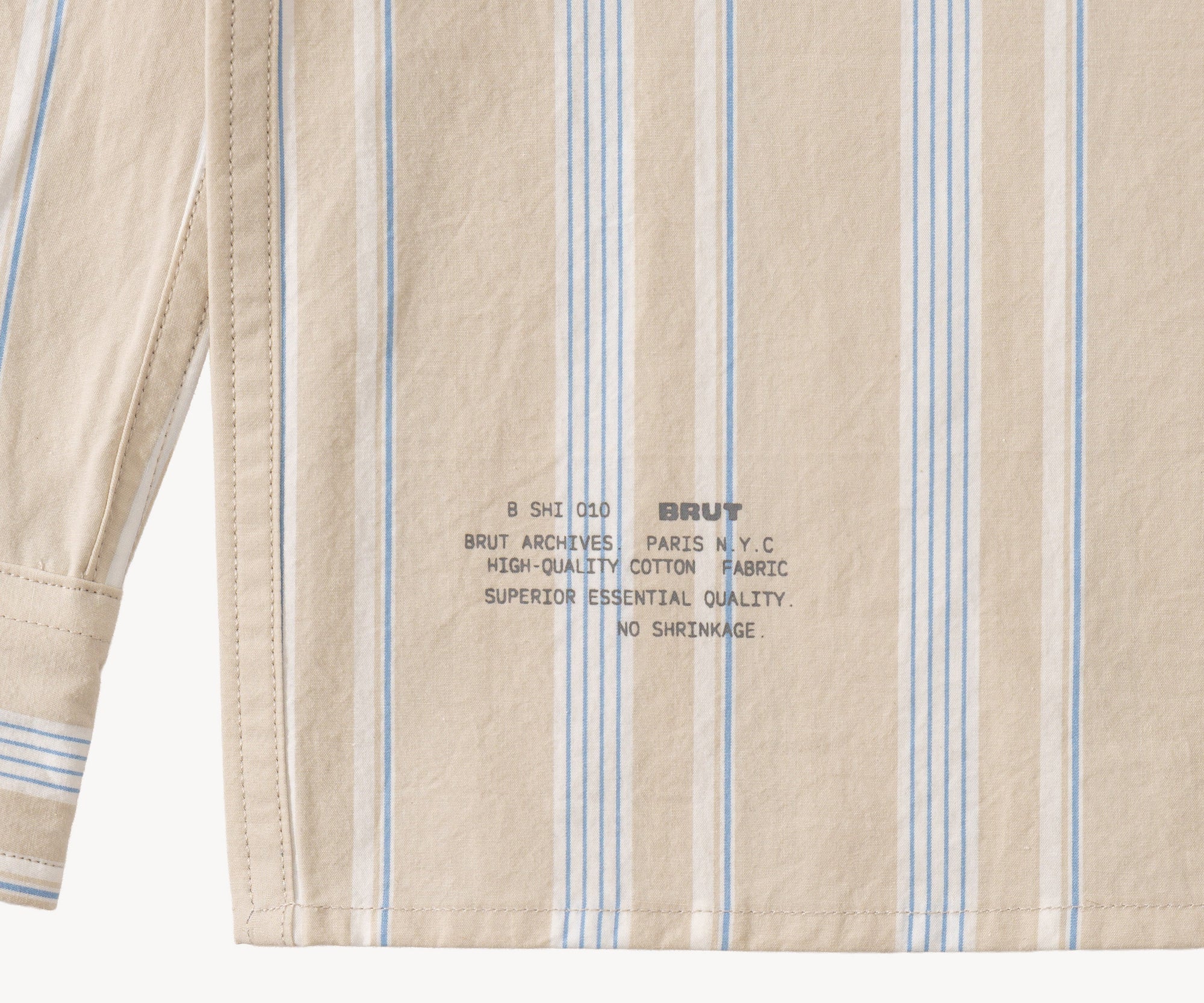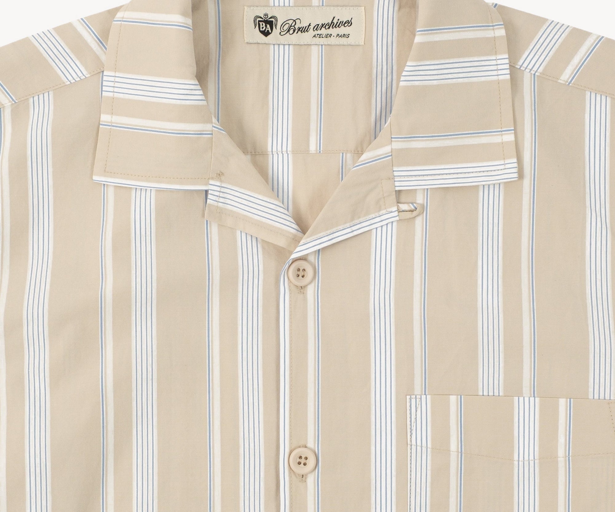 The RETIREE SHIRT draws inspiration from the classic open collar leisure shirts of the '70s. Crafted from high-quality cotton fabric.