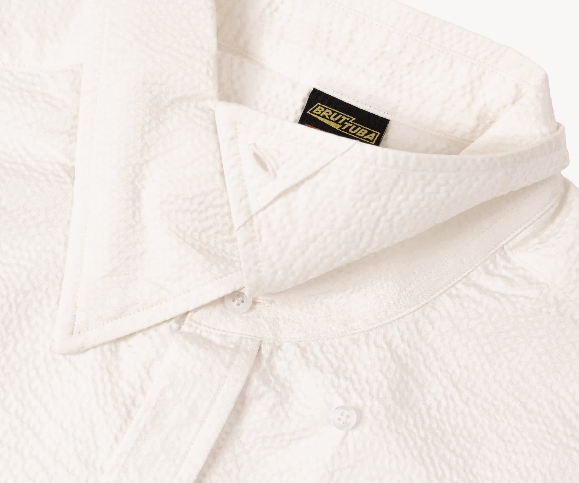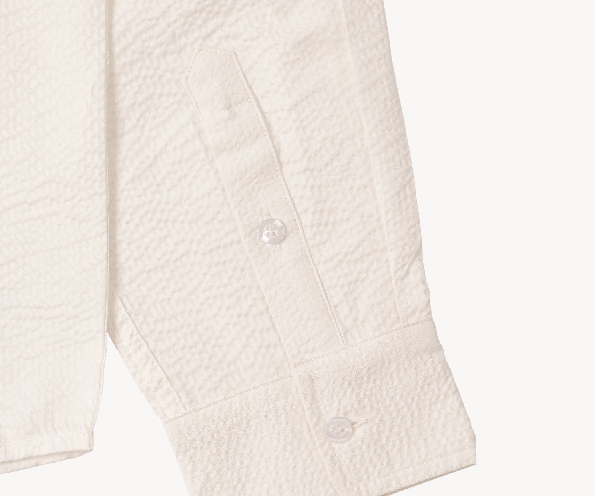 The SEERSUCKER SHIRT draws inspiration from the iconic summer seersucker shirt of the '70s. Crafted from high-quality cotton seersucker.