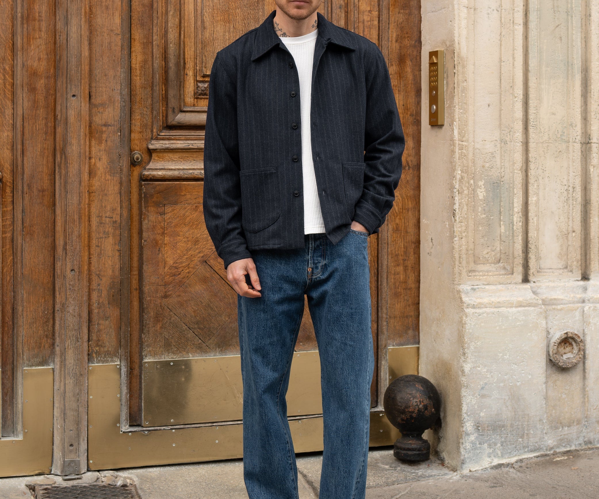 Button closure front.