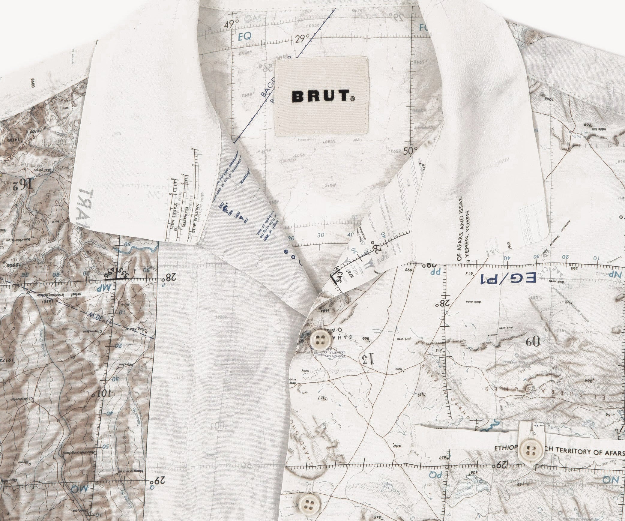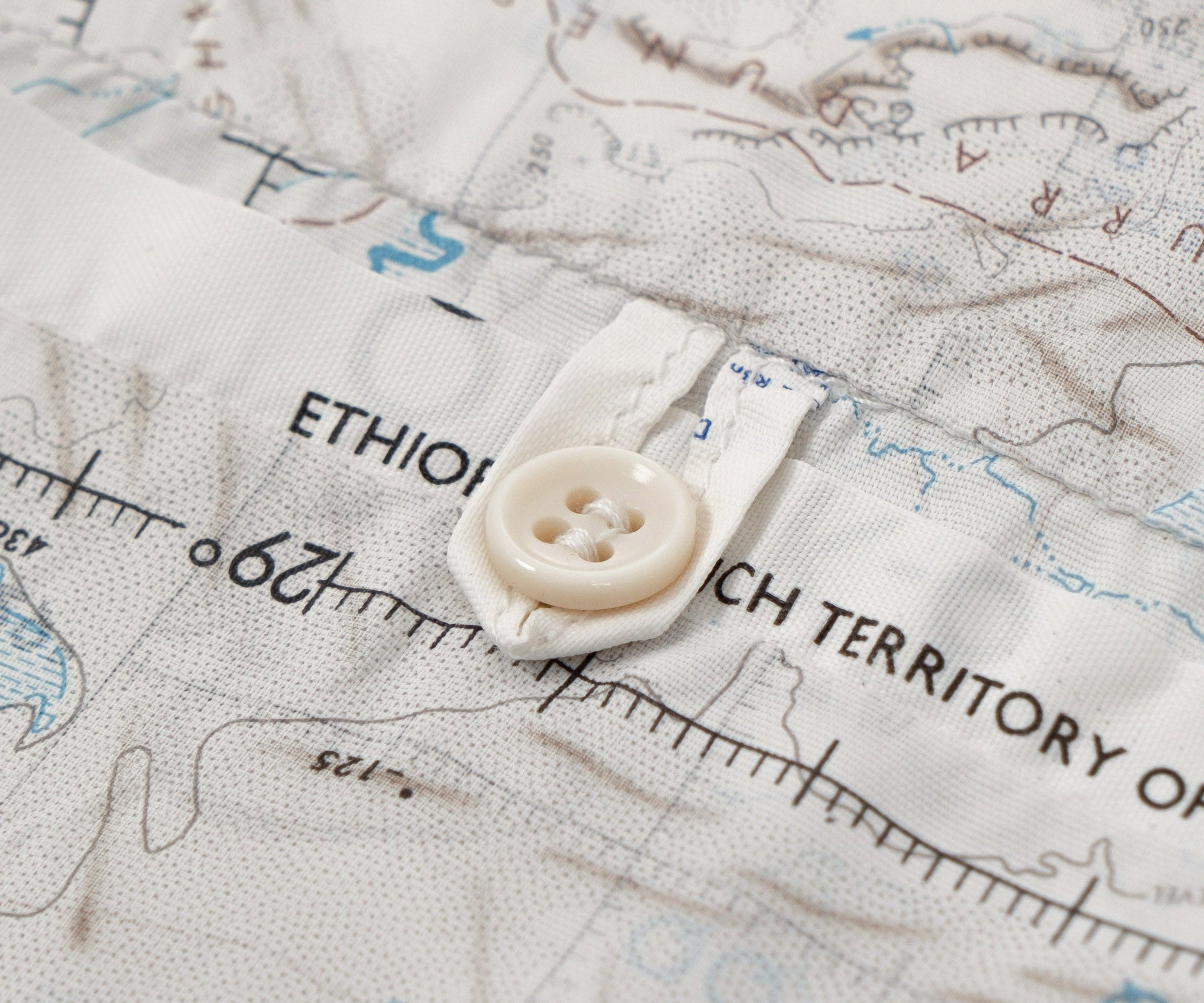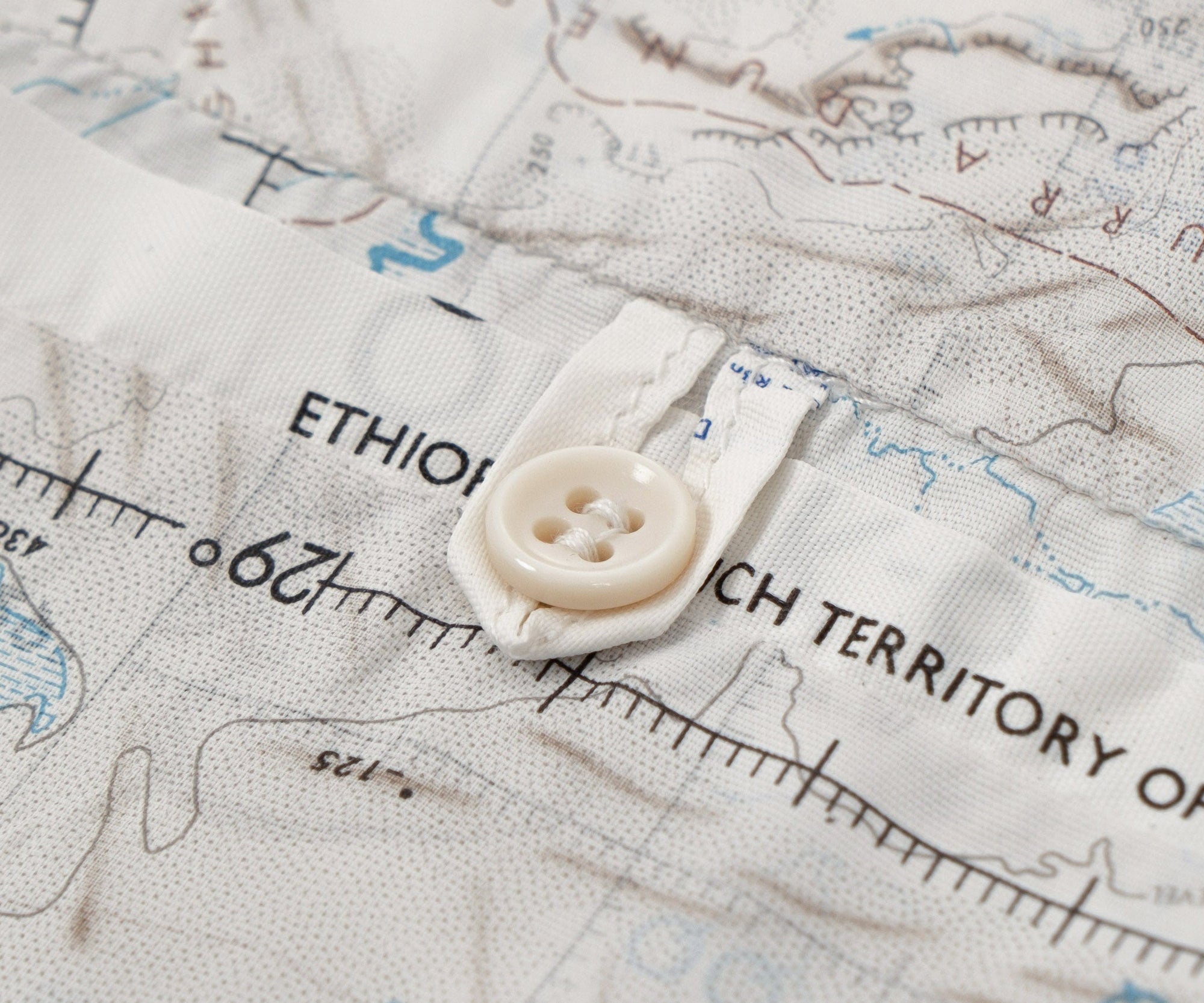 Made from original escape maps from United States Air Force. Each shirt is unique and handmade in Paris. To respect this legacy all of our rework product are made on vintage equipment.