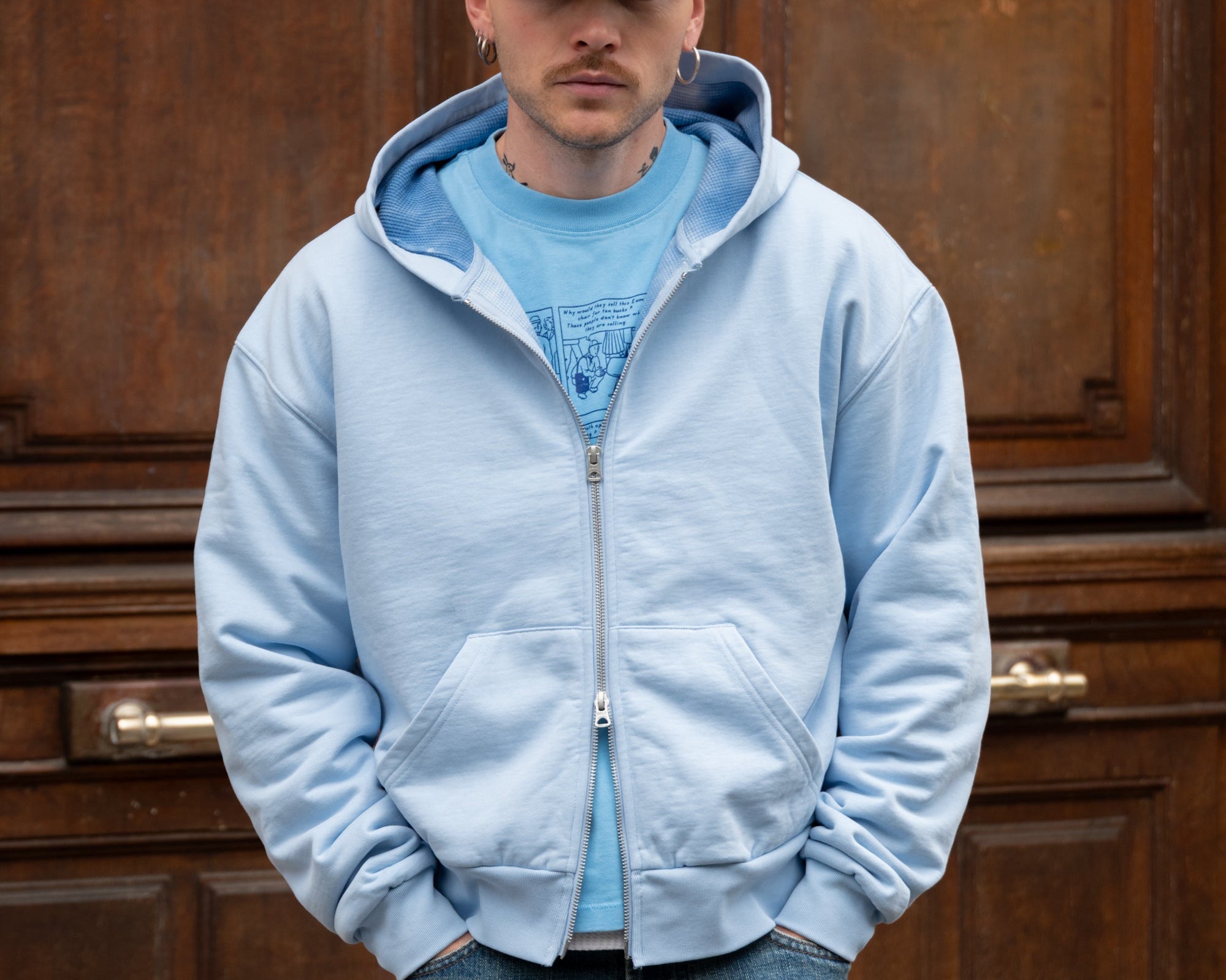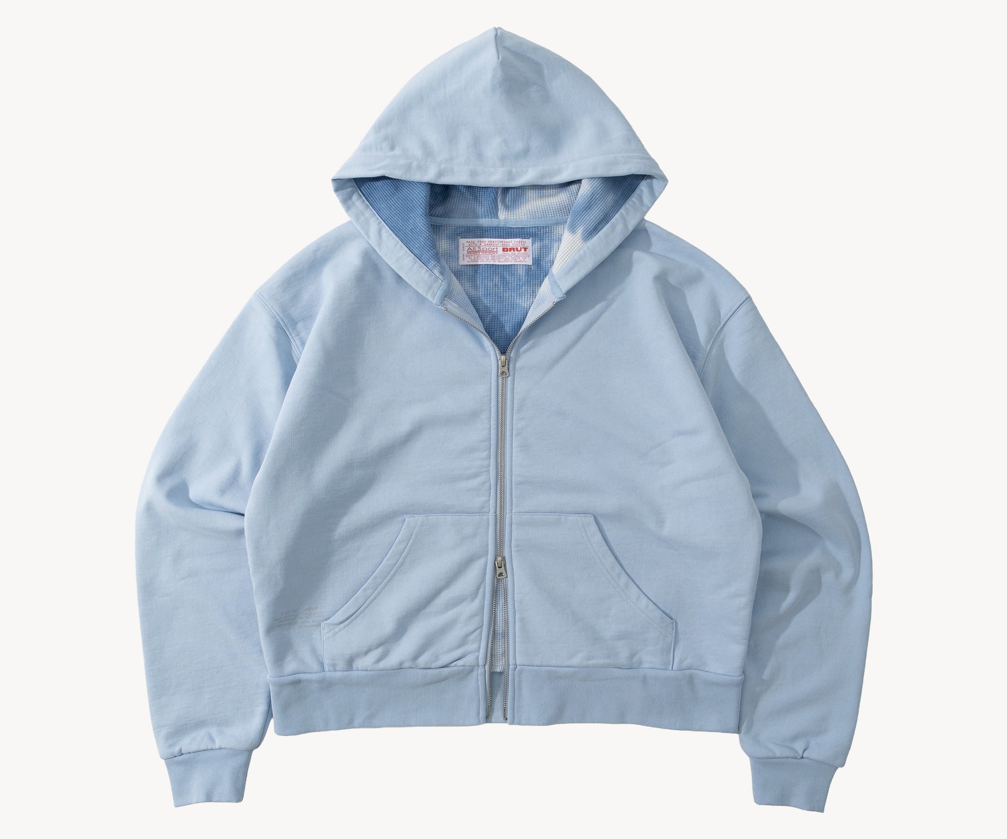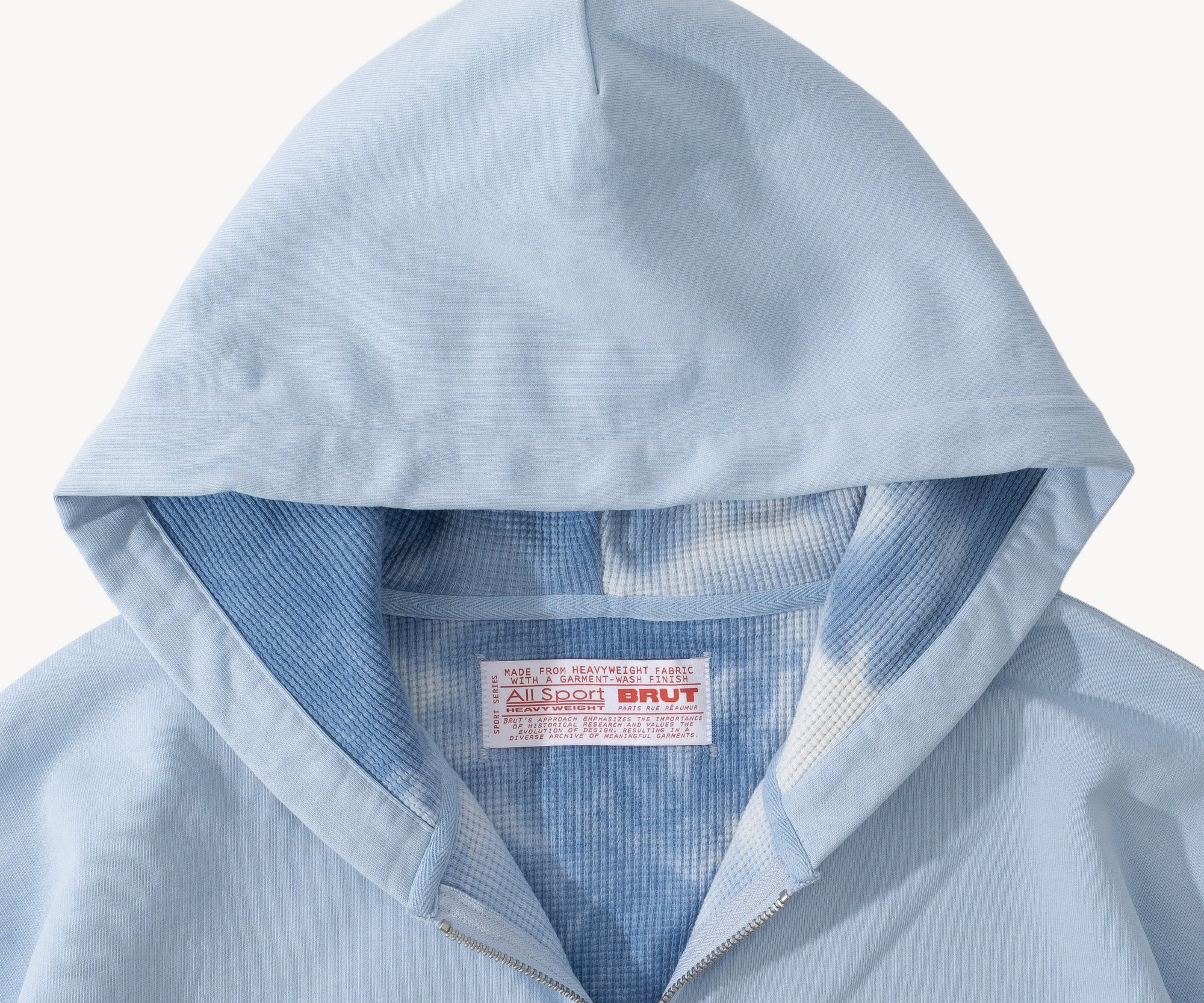The ZIP SWEAT is representing BRUT's vision of the perfect lined zipped hoodie. This sweatshirt is designed by our team in Paris after carefully studying the structure, design, weight, shape, and colours of our favorite vintage hoodies from our archive and adding our own details.