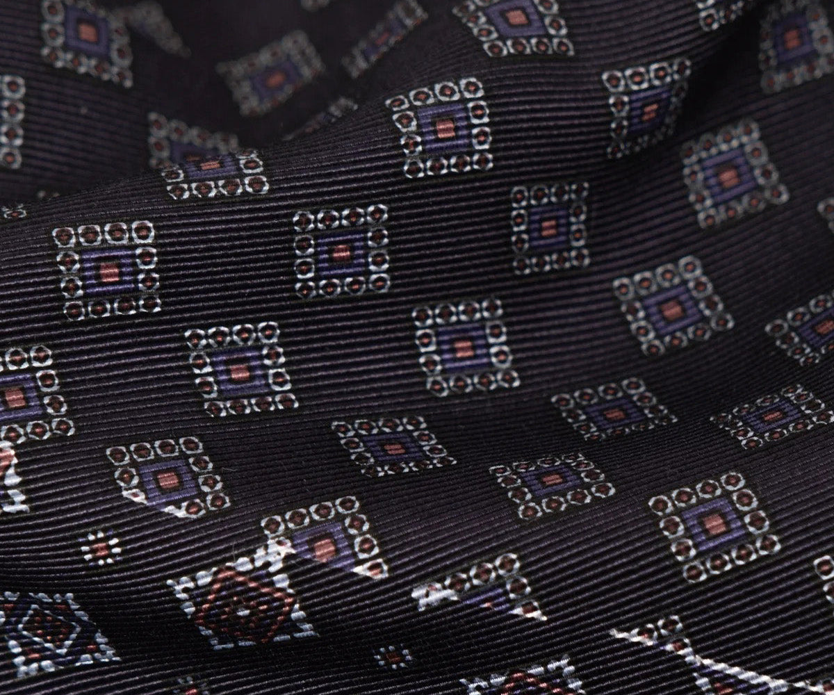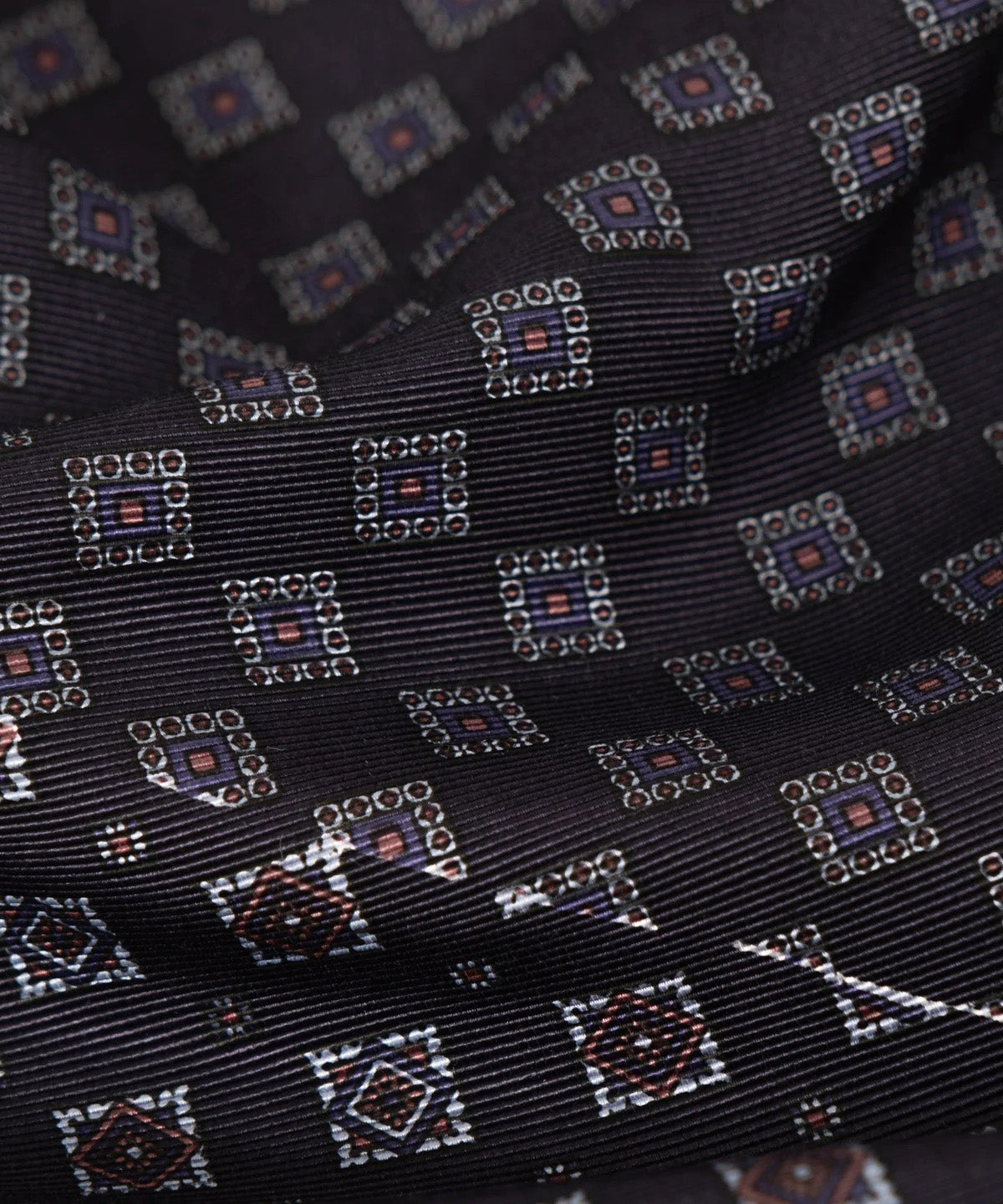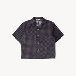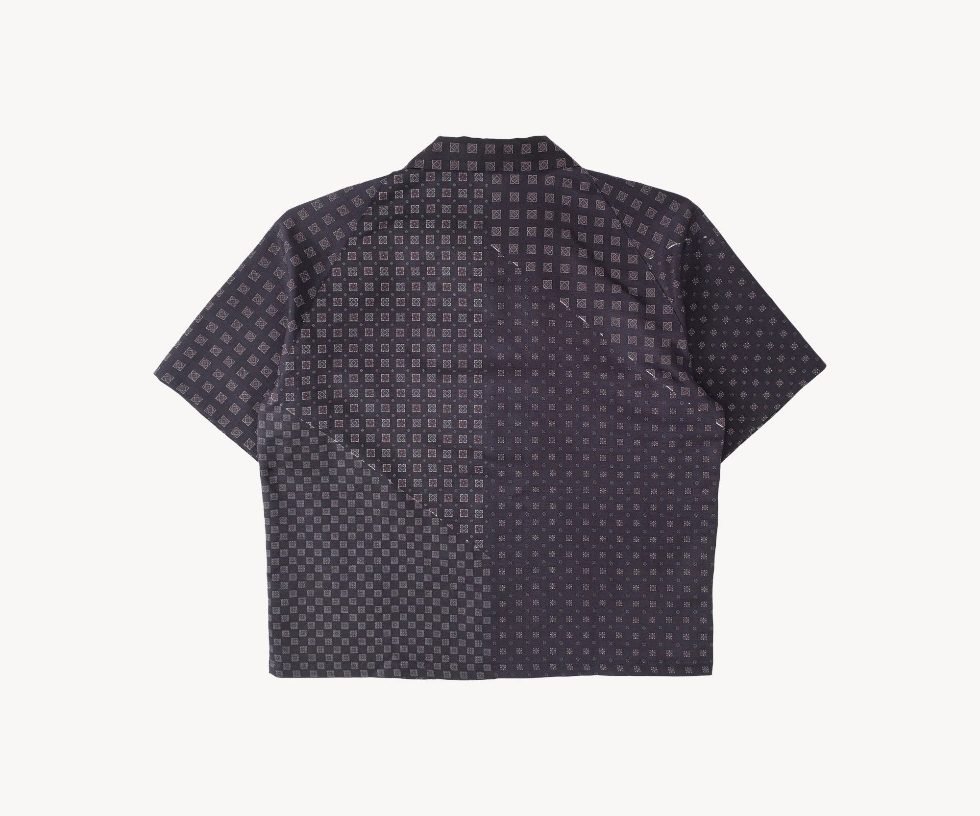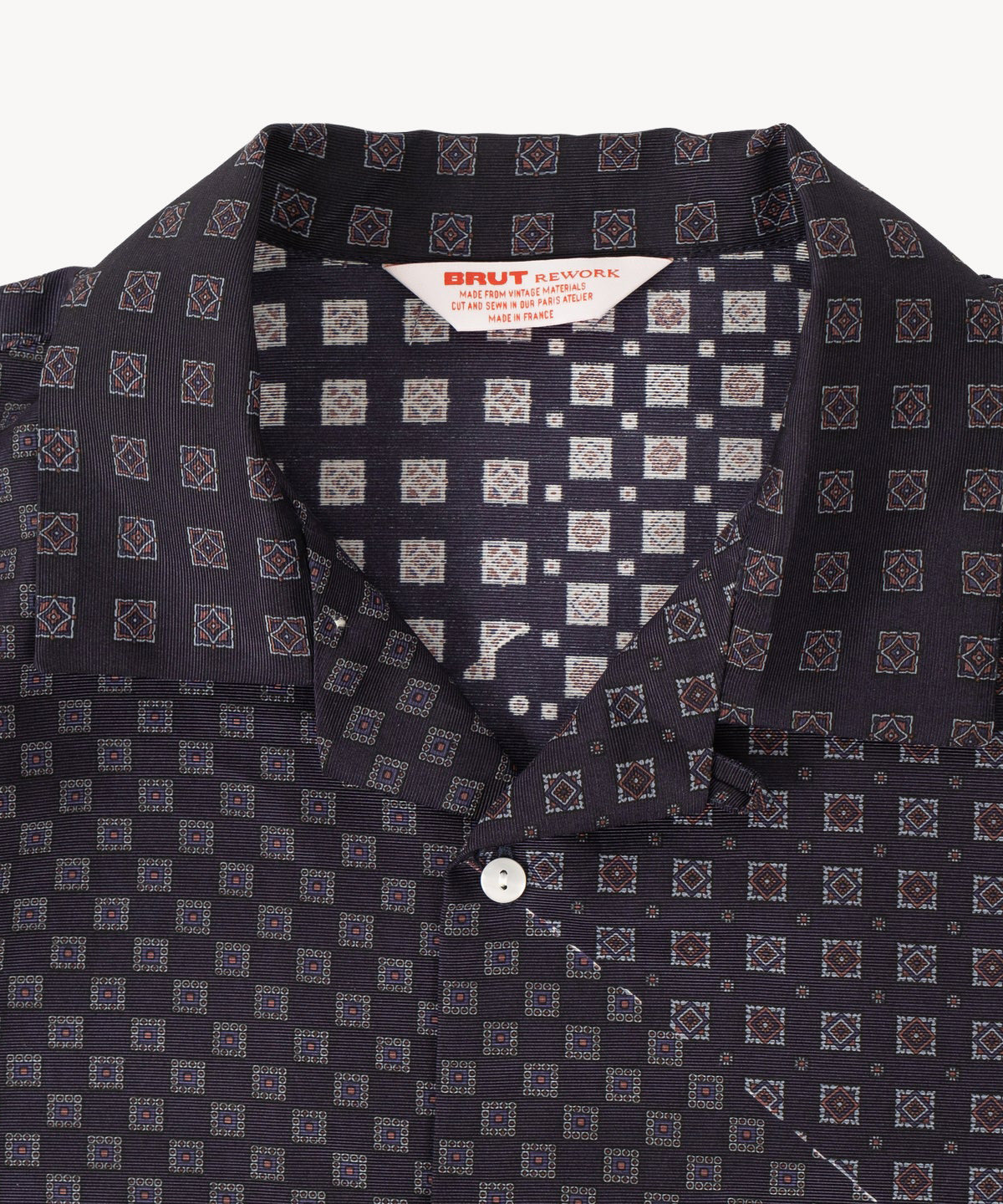 The TIE SHIRT is a mix of two rare shirts we have in our archive from the 1940's and 50's. The design consists of a short sleeves cropped shirt with a loop collar details. It is crafted from different deadstock fabrics which were intended for necktie manufacturing.