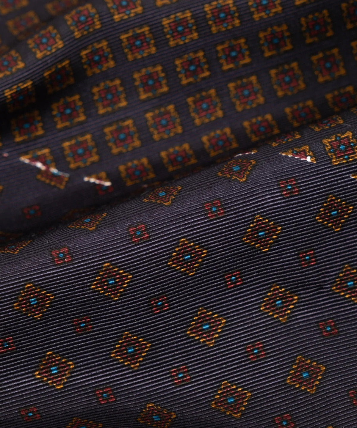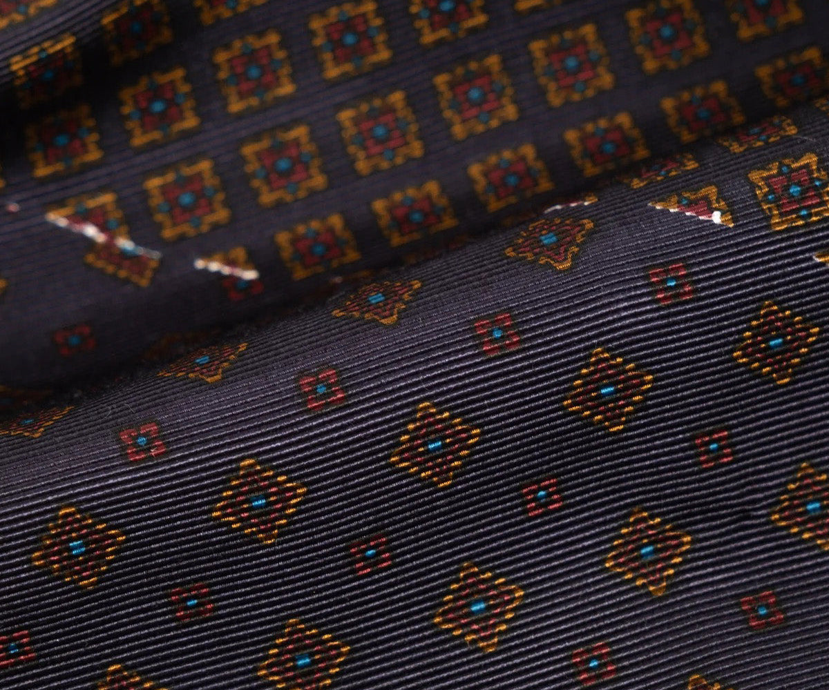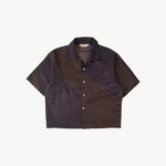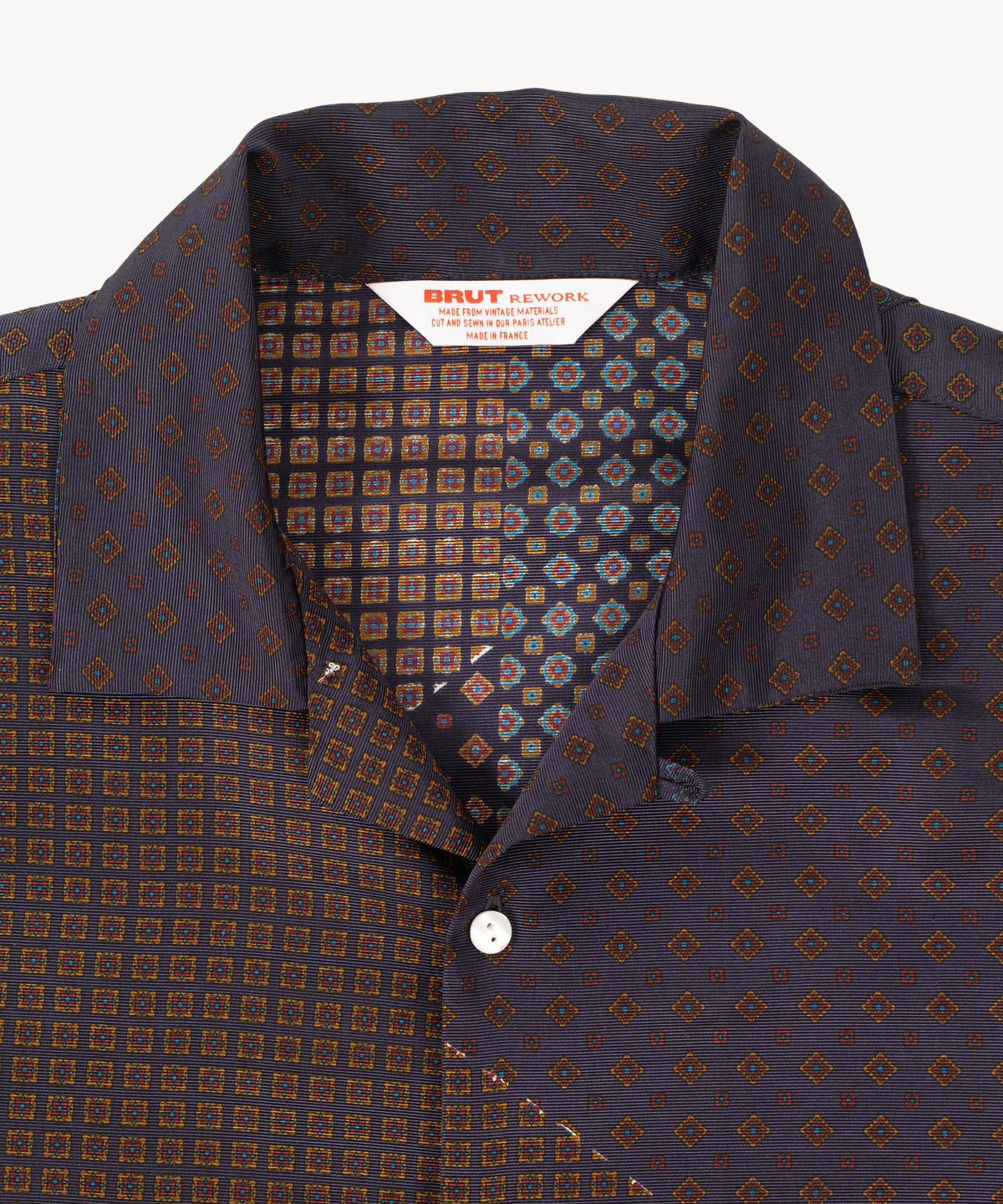 The TIE SHIRT is a mix of two rare shirts we have in our archive from the 1940's and 50's. The design consists of a short sleeves cropped shirt with a loop collar details. It is crafted from different deadstock fabrics which were intended for necktie manufacturing.