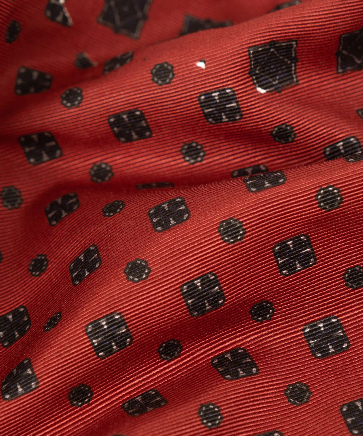 The TIE SHIRT is a mix of two rare shirts we have in our archive from the 1940's and 50's. The design consists of a short sleeves cropped shirt with a loop collar details. It is crafted from different deadstock fabrics which were intended for necktie manufacturing.