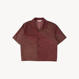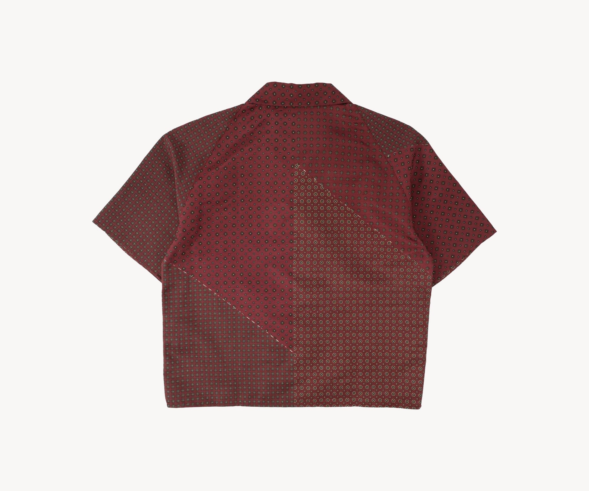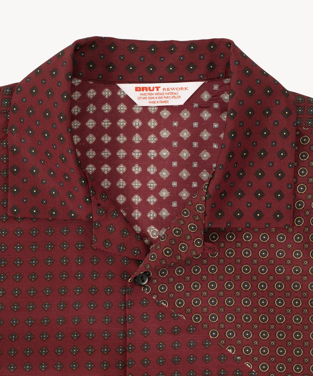 The TIE SHIRT is a mix of two rare shirts we have in our archive from the 1940's and 50's. The design consists of a short sleeves cropped shirt with a loop collar details. It is crafted from different deadstock fabrics which were intended for necktie manufacturing.