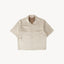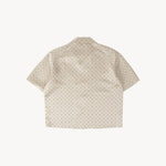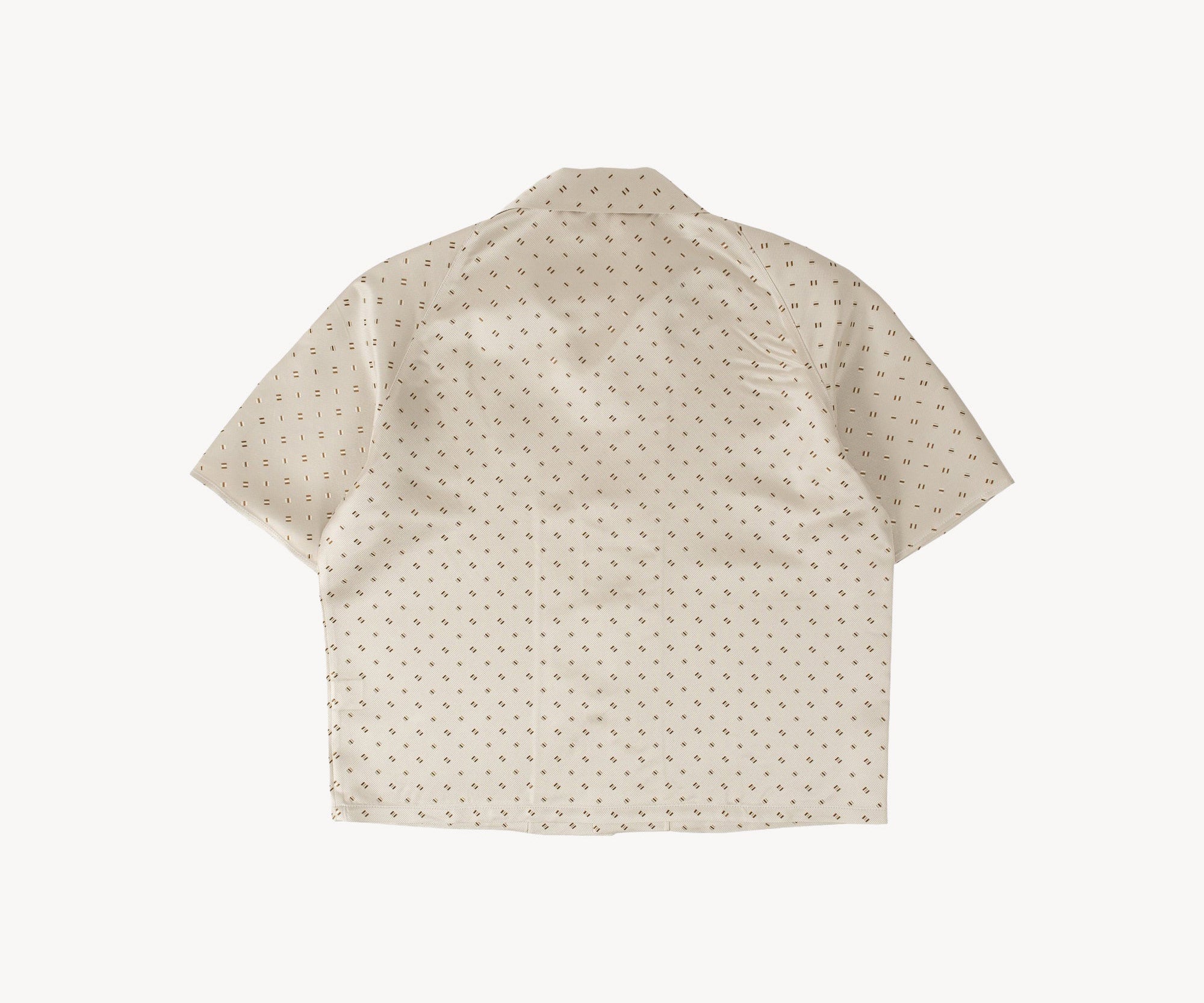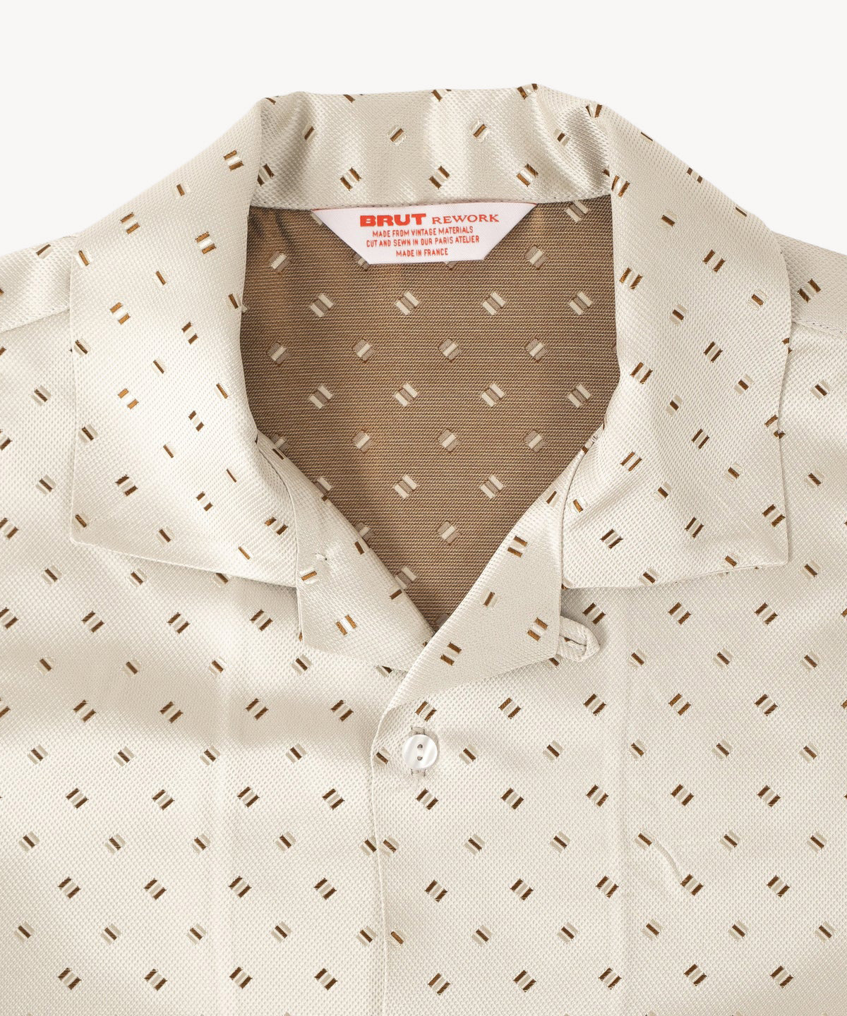 The TIE SHIRT is a mix of two rare shirts we have in our archive from the 1940's and 50's. The design consists of a short sleeves cropped shirt with a loop collar details. It is crafted from different deadstock fabrics which were intended for necktie manufacturing.
