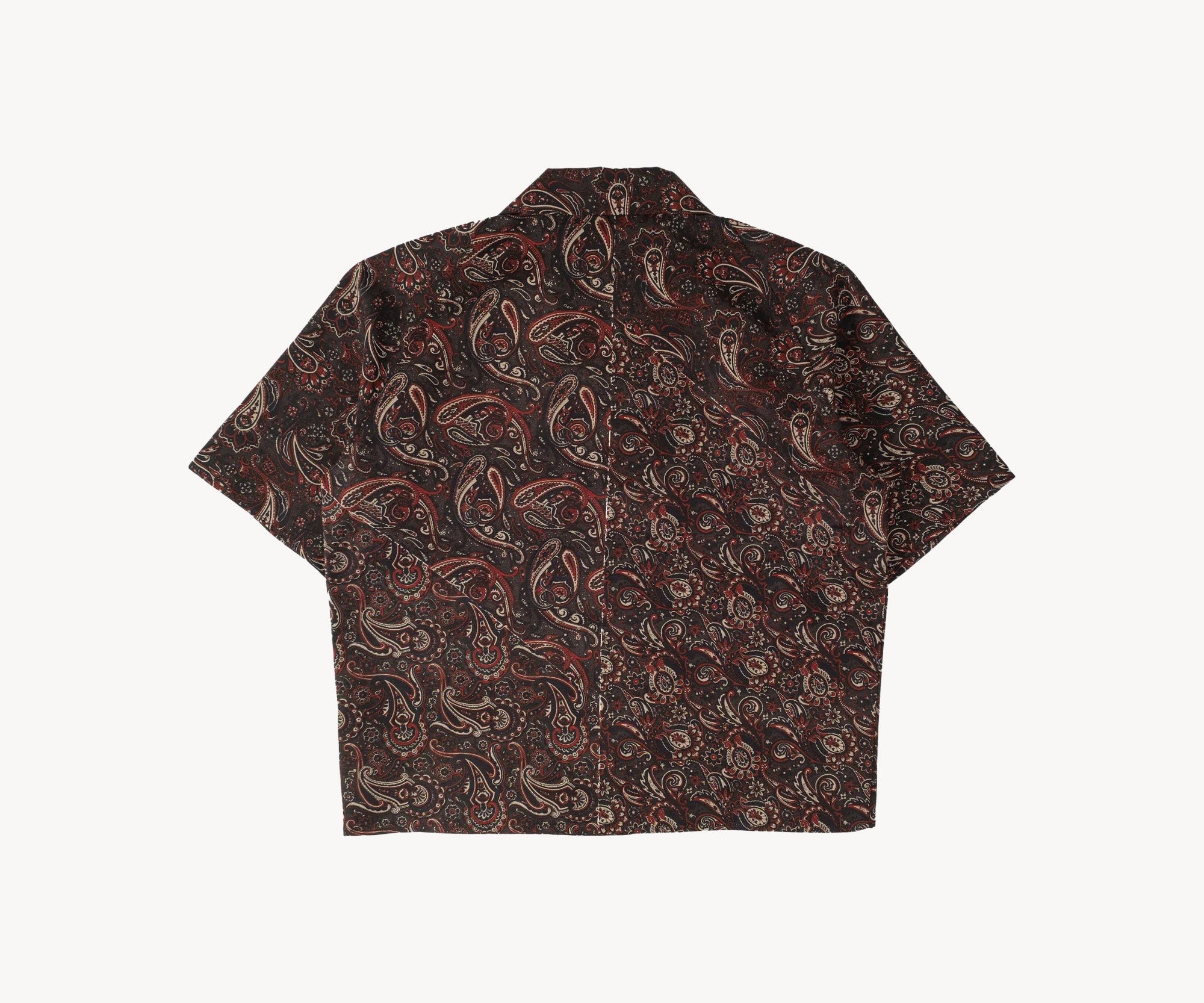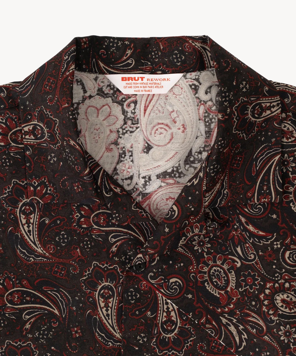 The TIE SHIRT is a mix of two rare shirts we have in our archive from the 1940's and 50's. The design consists of a short sleeves cropped shirt with a loop collar details. It is crafted from different deadstock fabrics which were intended for necktie manufacturing.