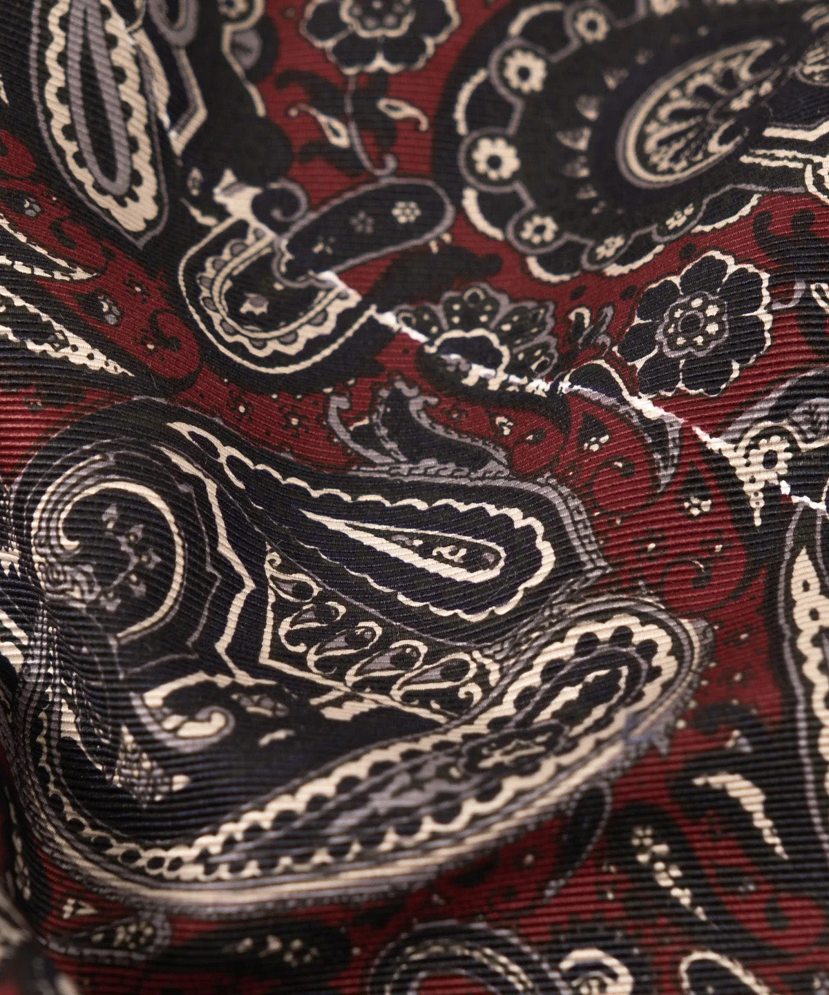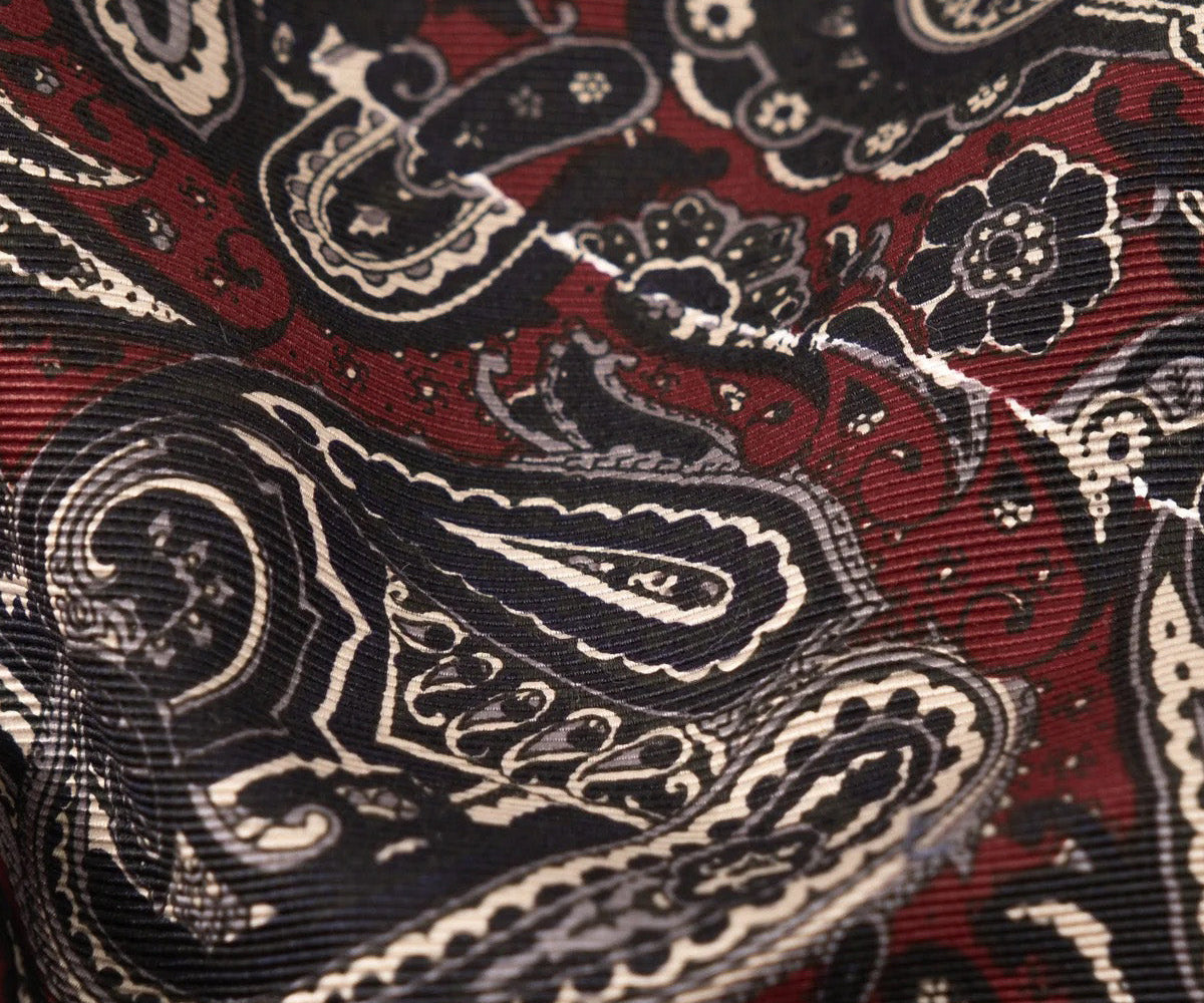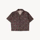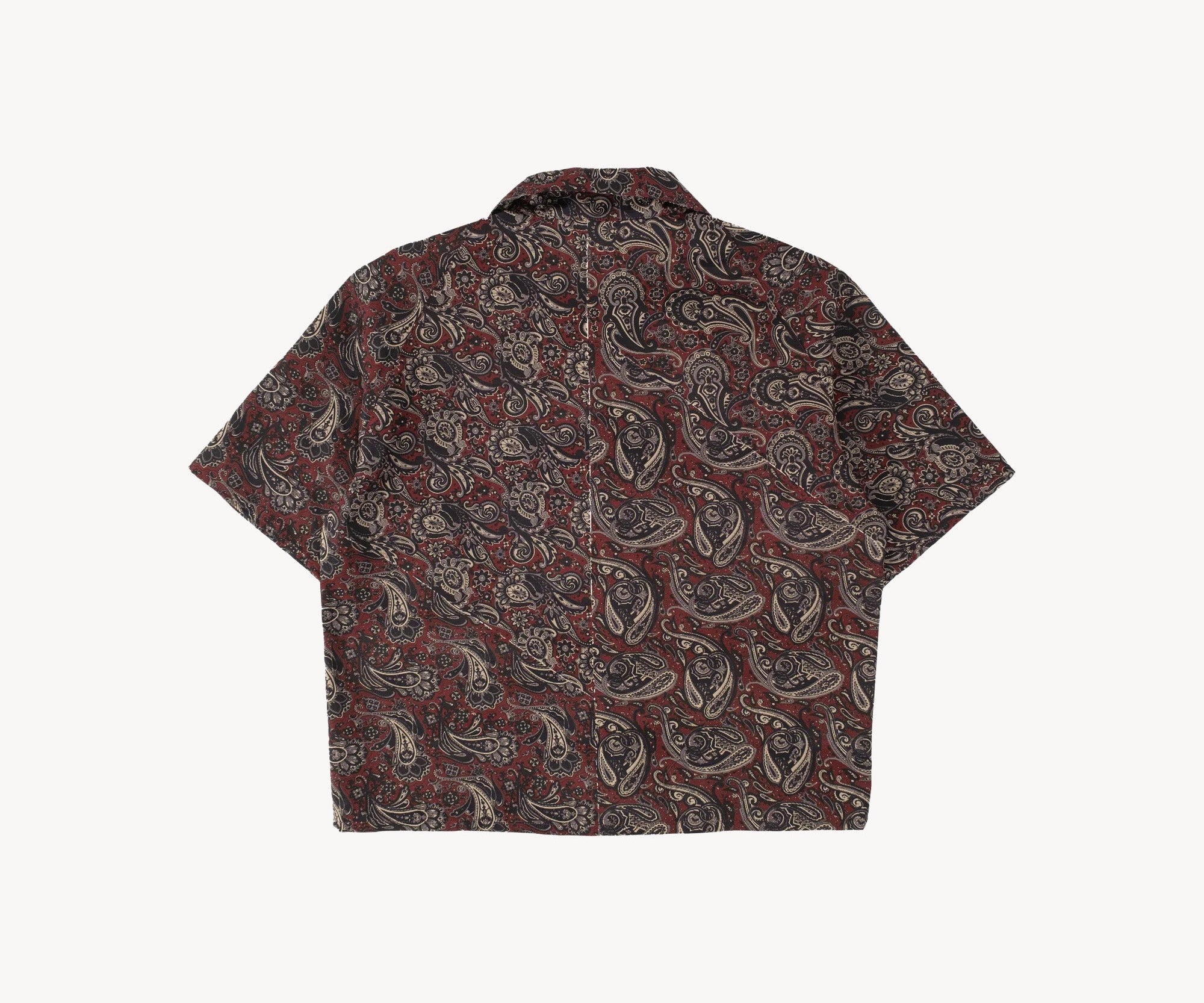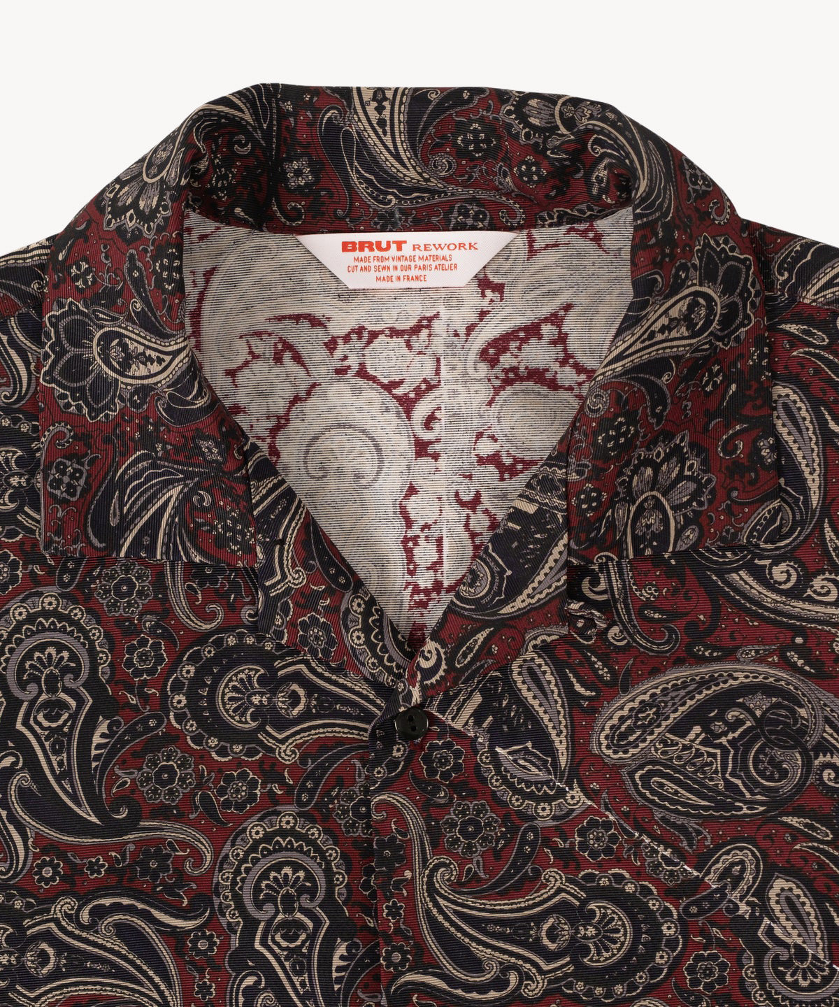 The TIE SHIRT is a mix of two rare shirts we have in our archive from the 1940's and 50's. The design consists of a short sleeves cropped shirt with a loop collar details. It is crafted from different deadstock fabrics which were intended for necktie manufacturing.