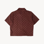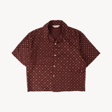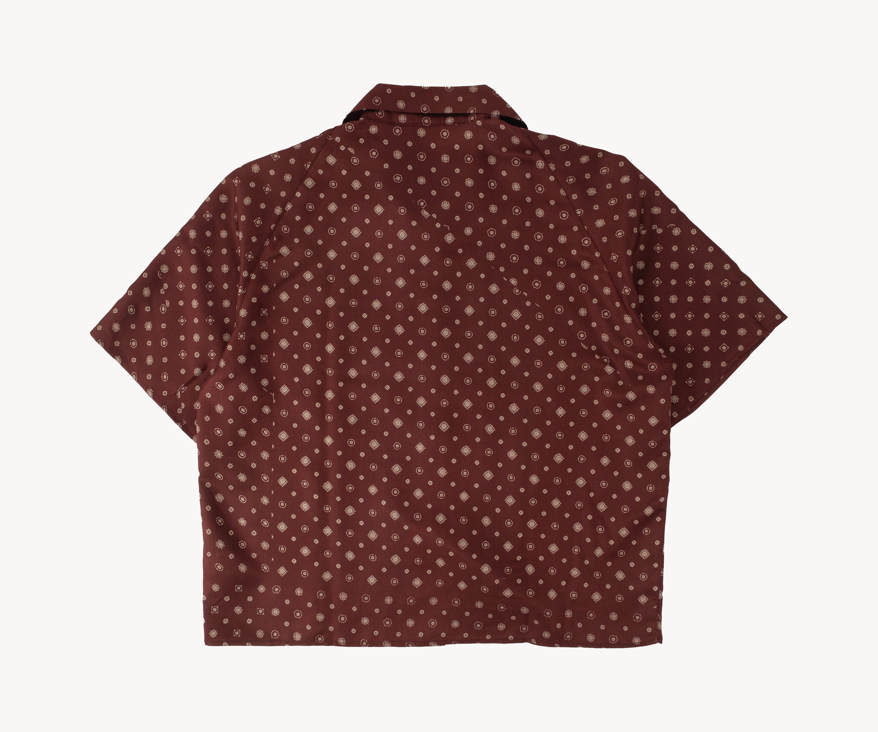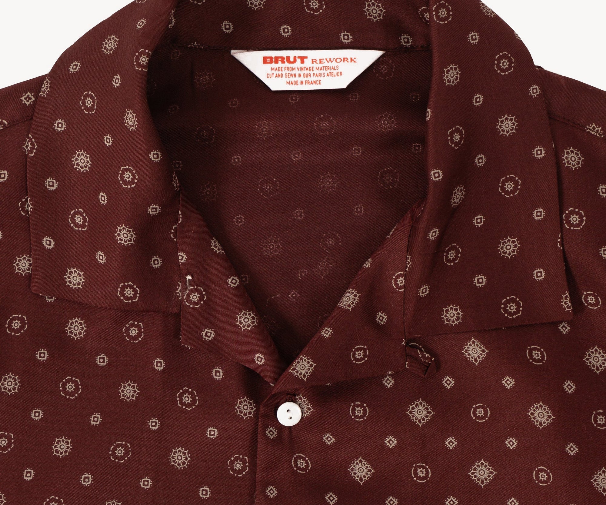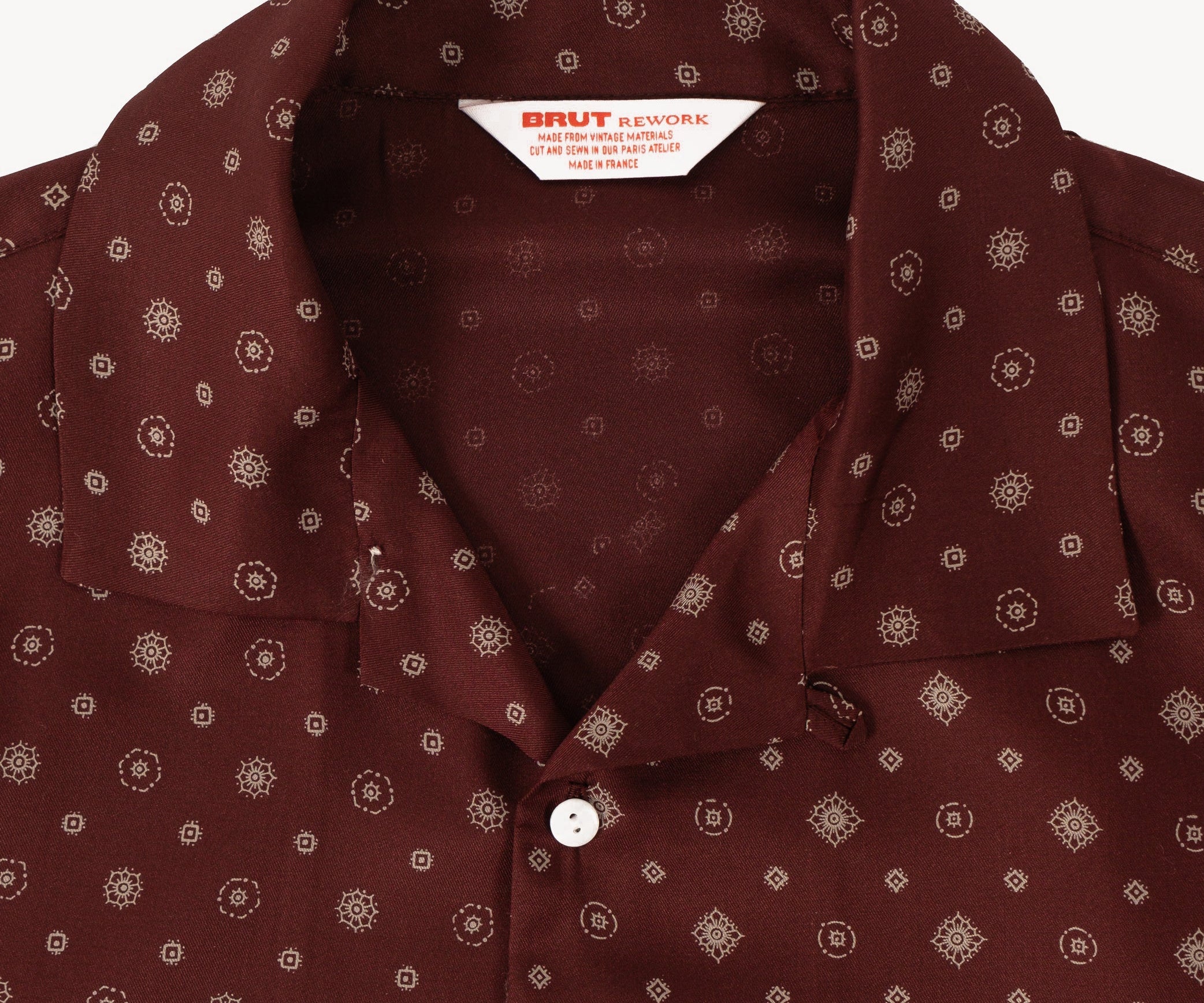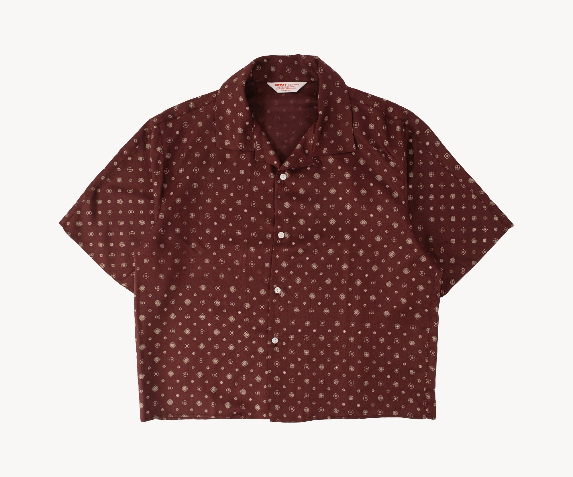 The TIE SHIRT is a mix of two rare shirts we have in our archive from the 1940's and 50's. The design consists of a short sleeves cropped shirt with a loop collar details. It is crafted from different deadstock fabrics which were intended for necktie manufacturing.