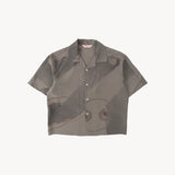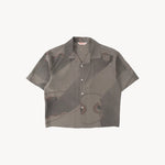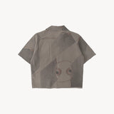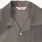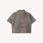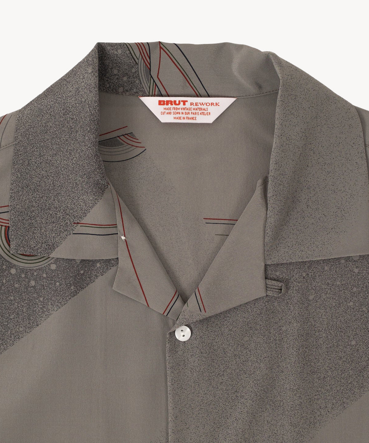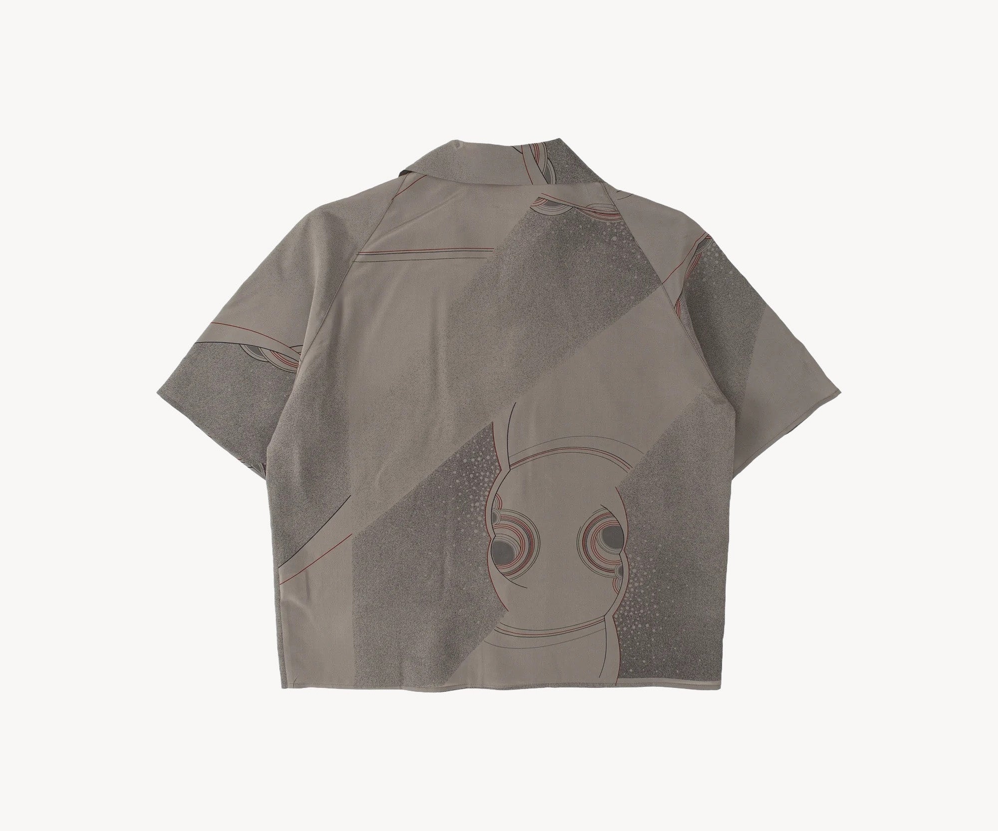 The TIE SHIRT is a mix of two rare shirts we have in our archive from the 1940's and 50's. The design consists of a short sleeves cropped shirt with a loop collar details. It is crafted from different deadstock fabrics which were intended for necktie manufacturing.