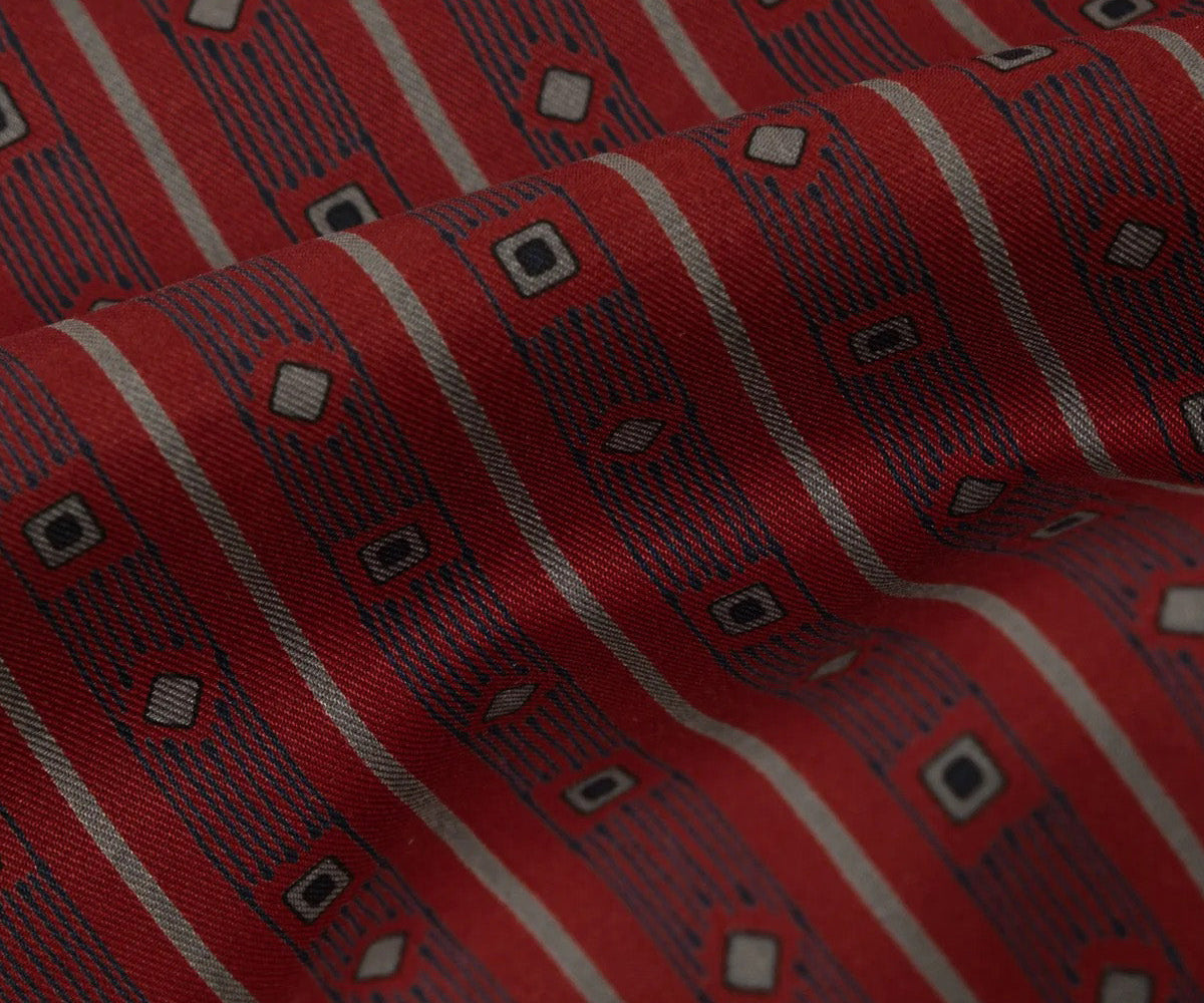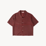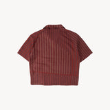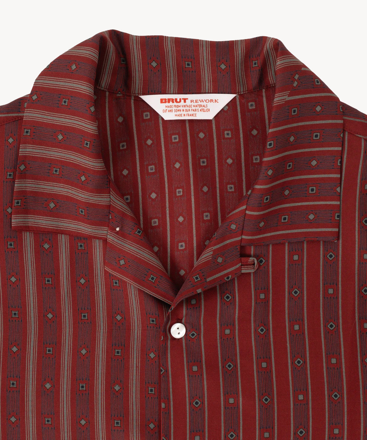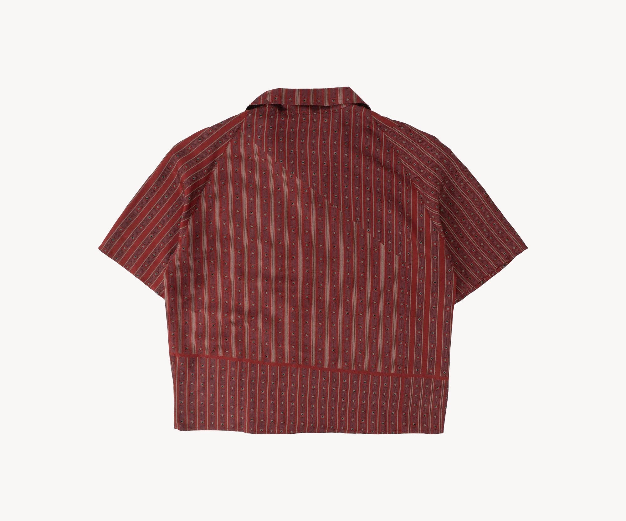 The TIE SHIRT is a mix of two rare shirts we have in our archive from the 1940's and 50's. The design consists of a short sleeves cropped shirt with a loop collar details. It is crafted from different deadstock fabrics which were intended for necktie manufacturing.