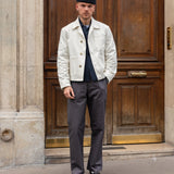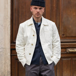 The TOOL JACKET is a modern reinterpretation of the 1950s work jacket, it is made out of an heavy cotton canvas, quality hardware and triple-stitch construction in order to endure time. It features the iconic hammer pocket as a nod to vintage carpenters and double knee pants.