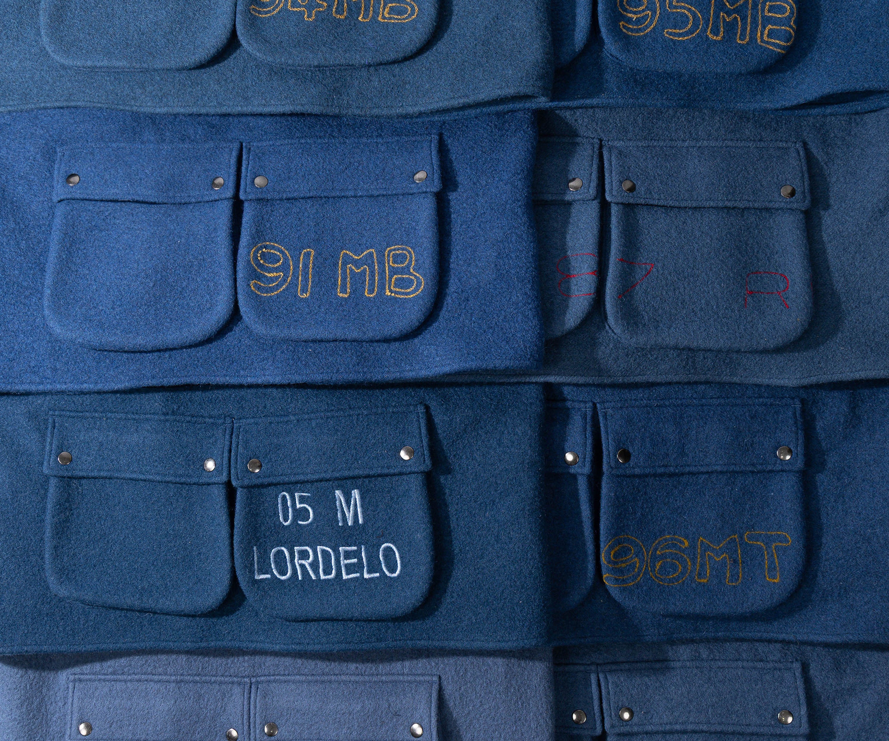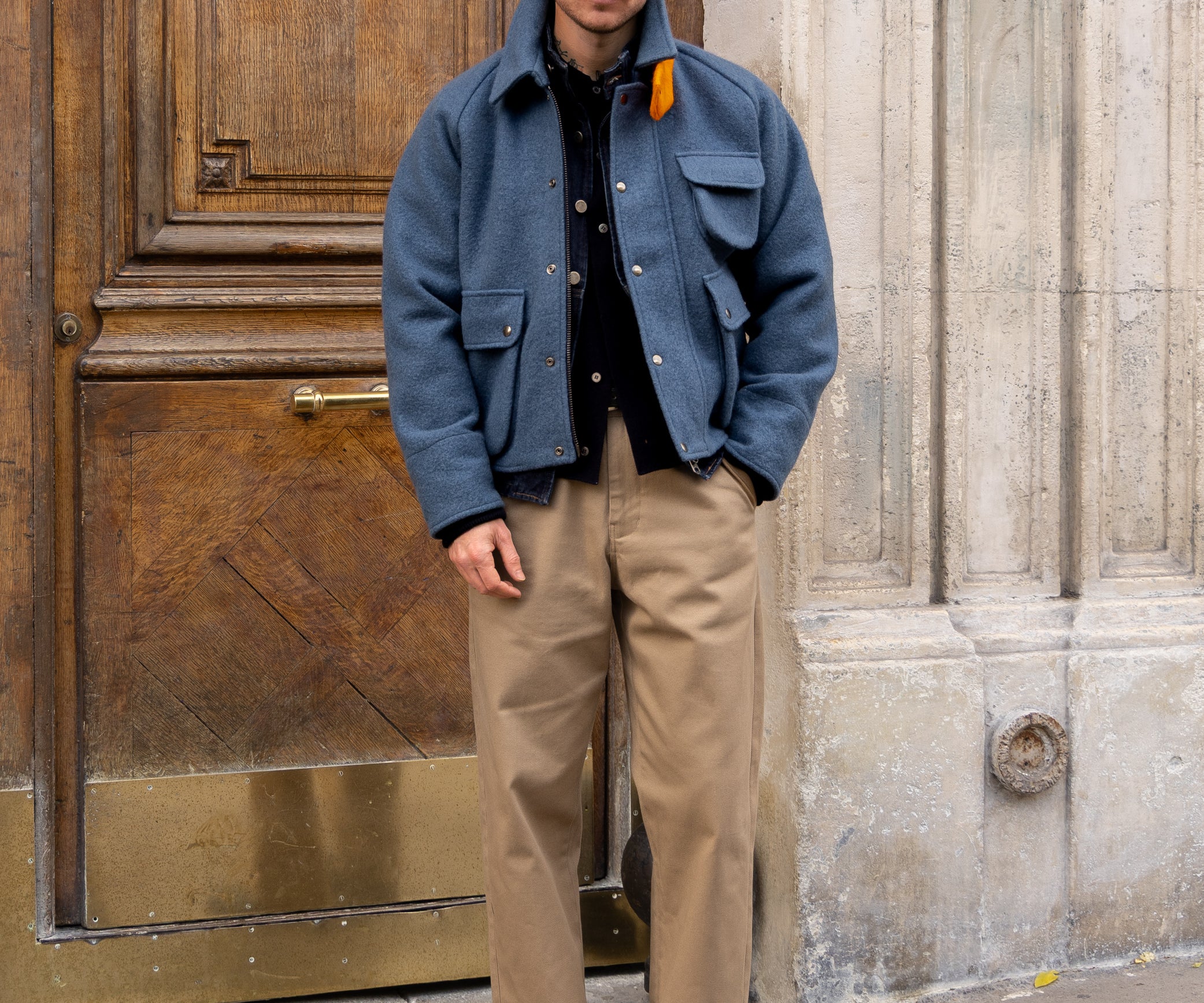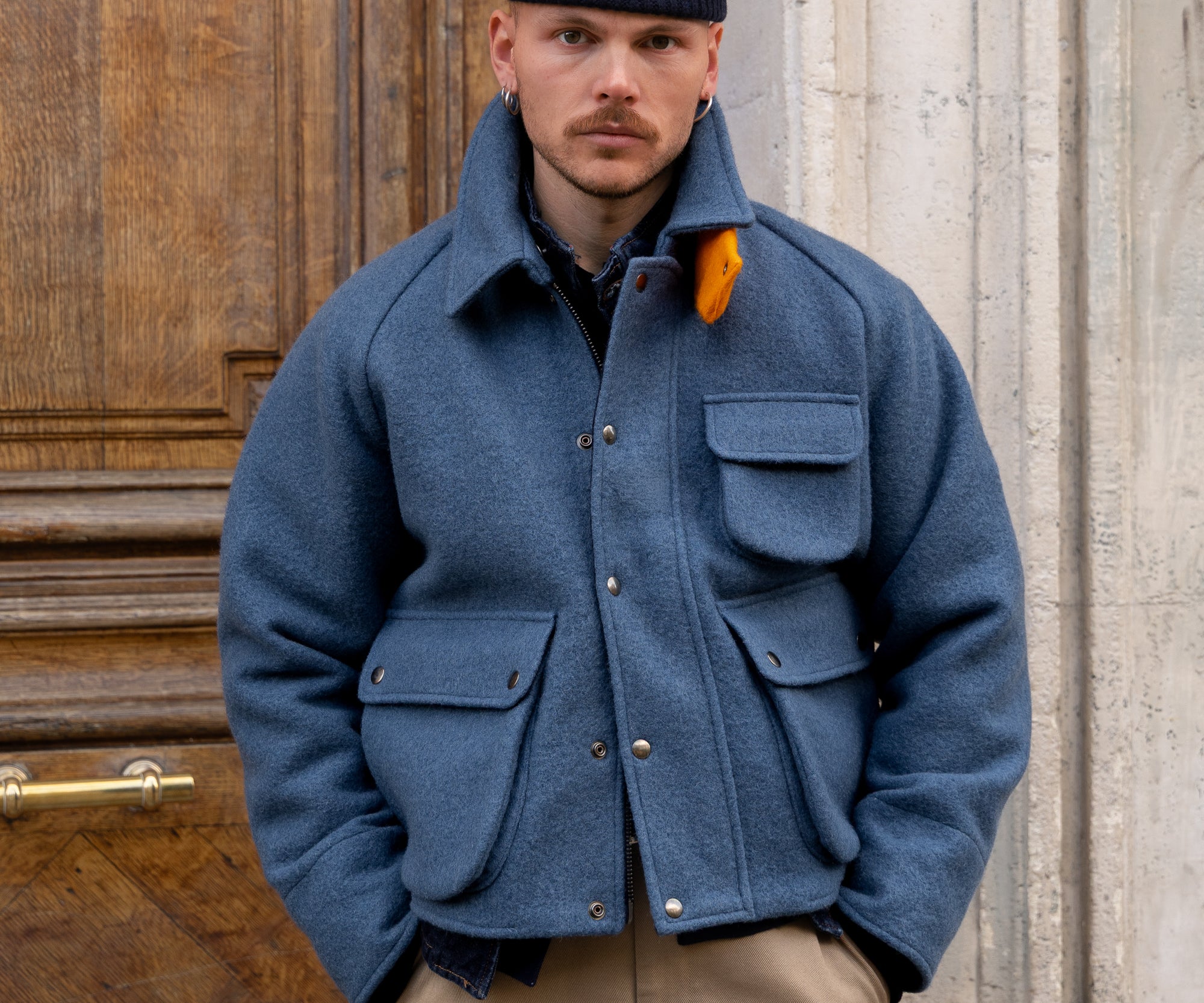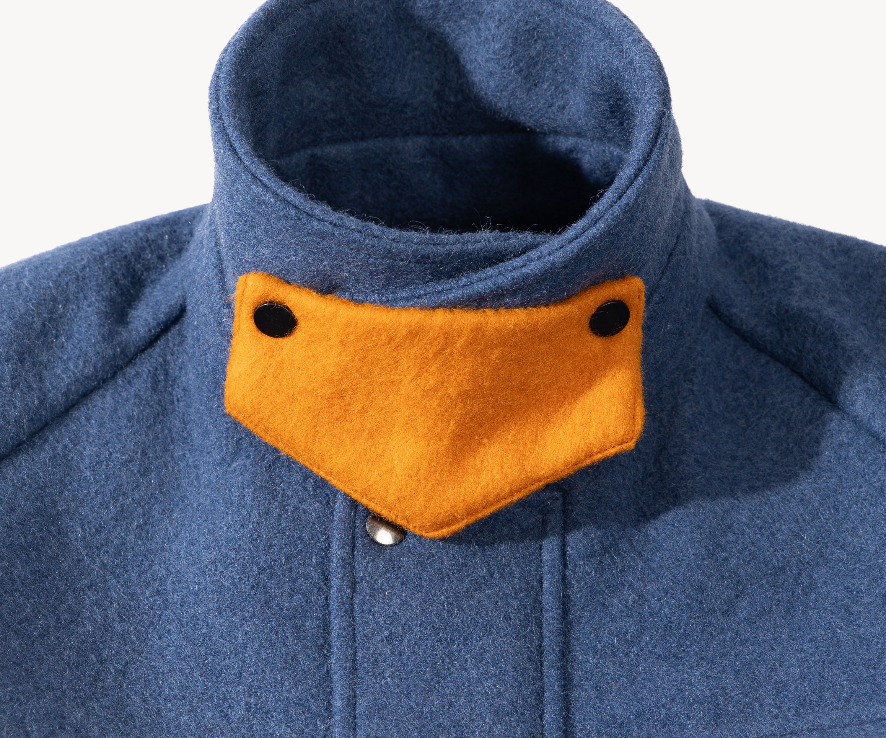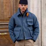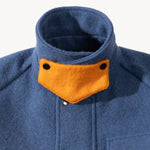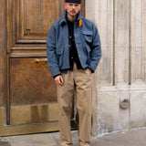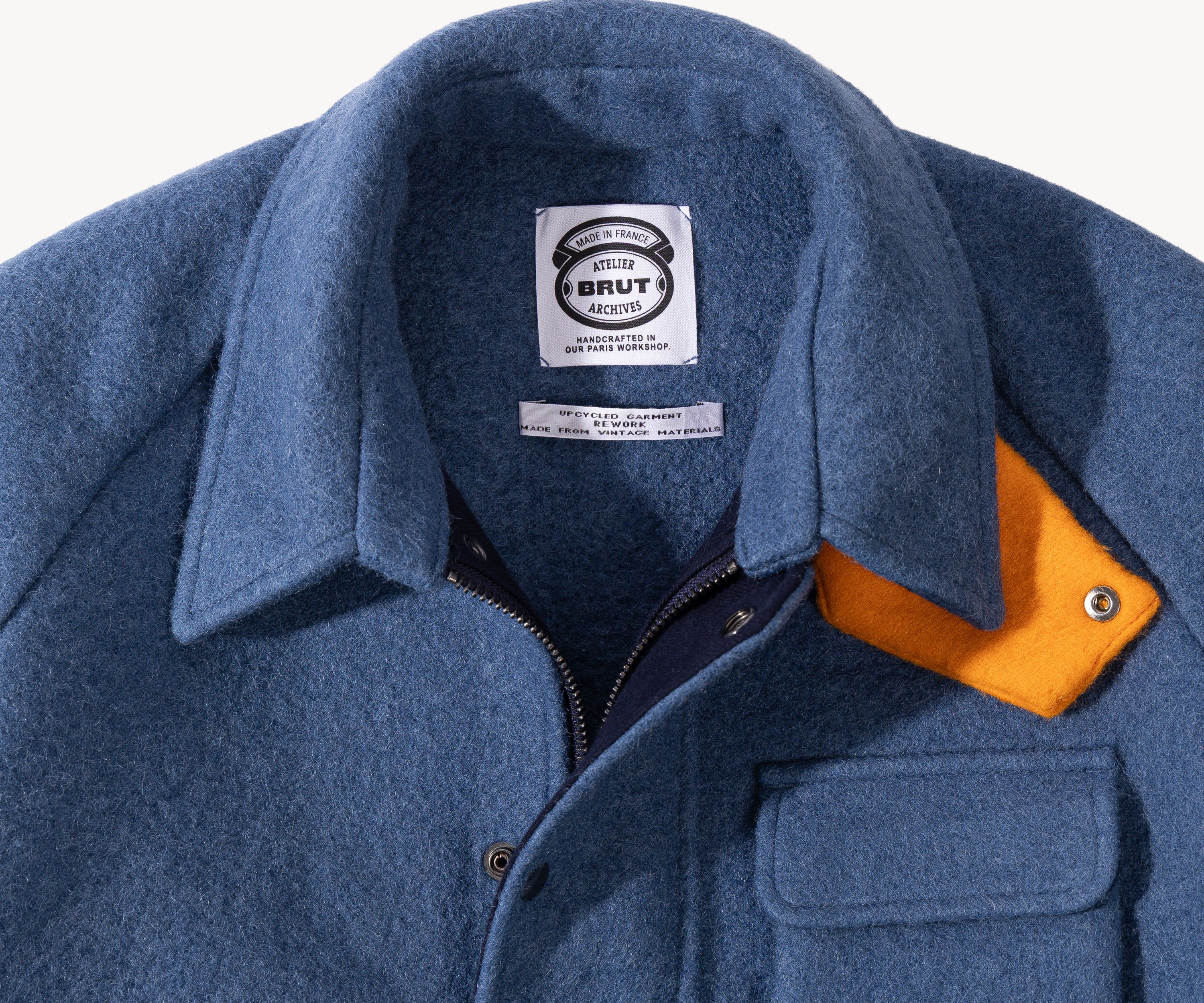 Crafted in our Parisian atelier from authentic vintage wool french navy blanket, carefully reassembled into a bold design. One-of-a-kind.