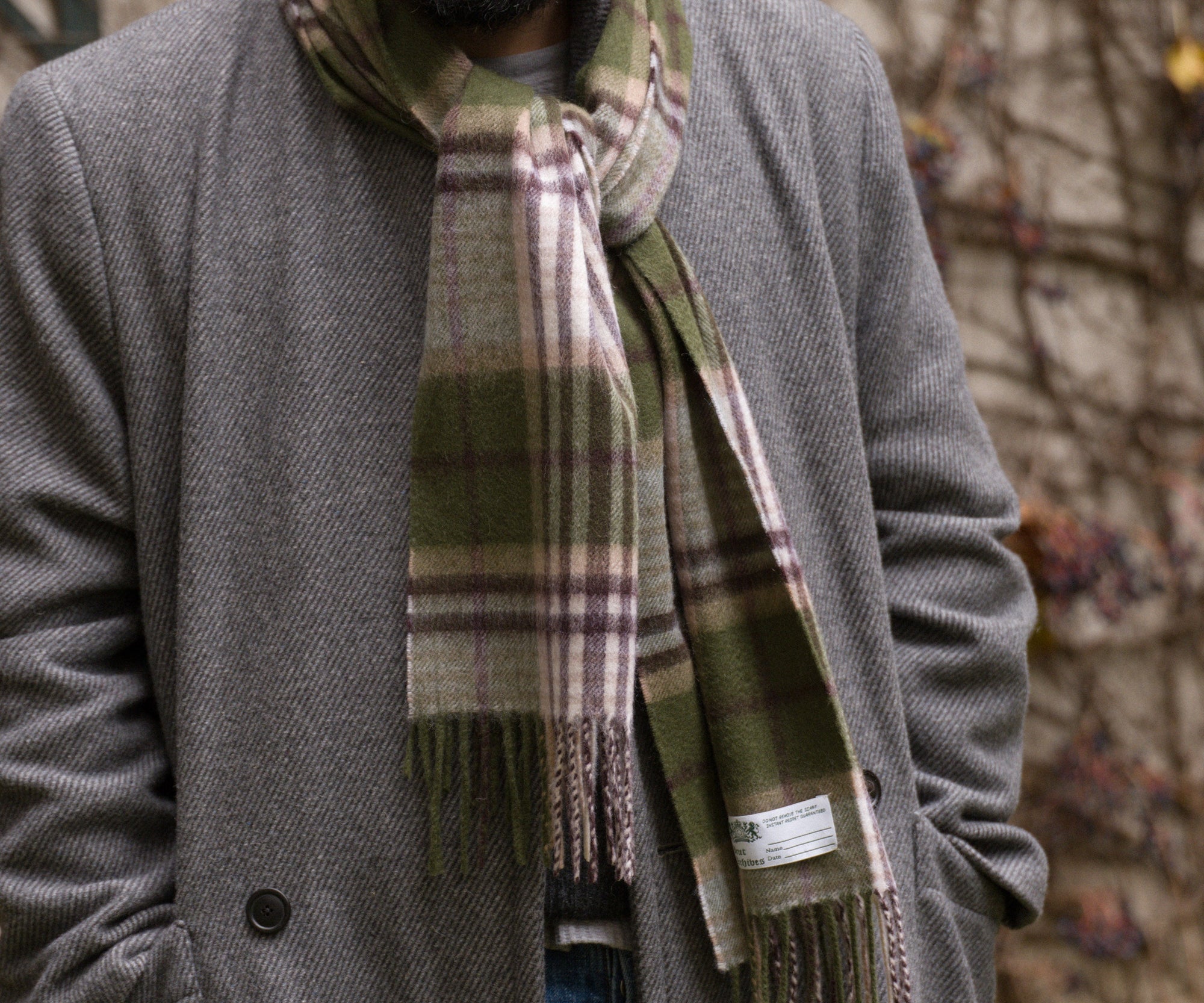 A wool scarf woven with an iconic check. Inspired by an archive style, the design features fringing at both ends.